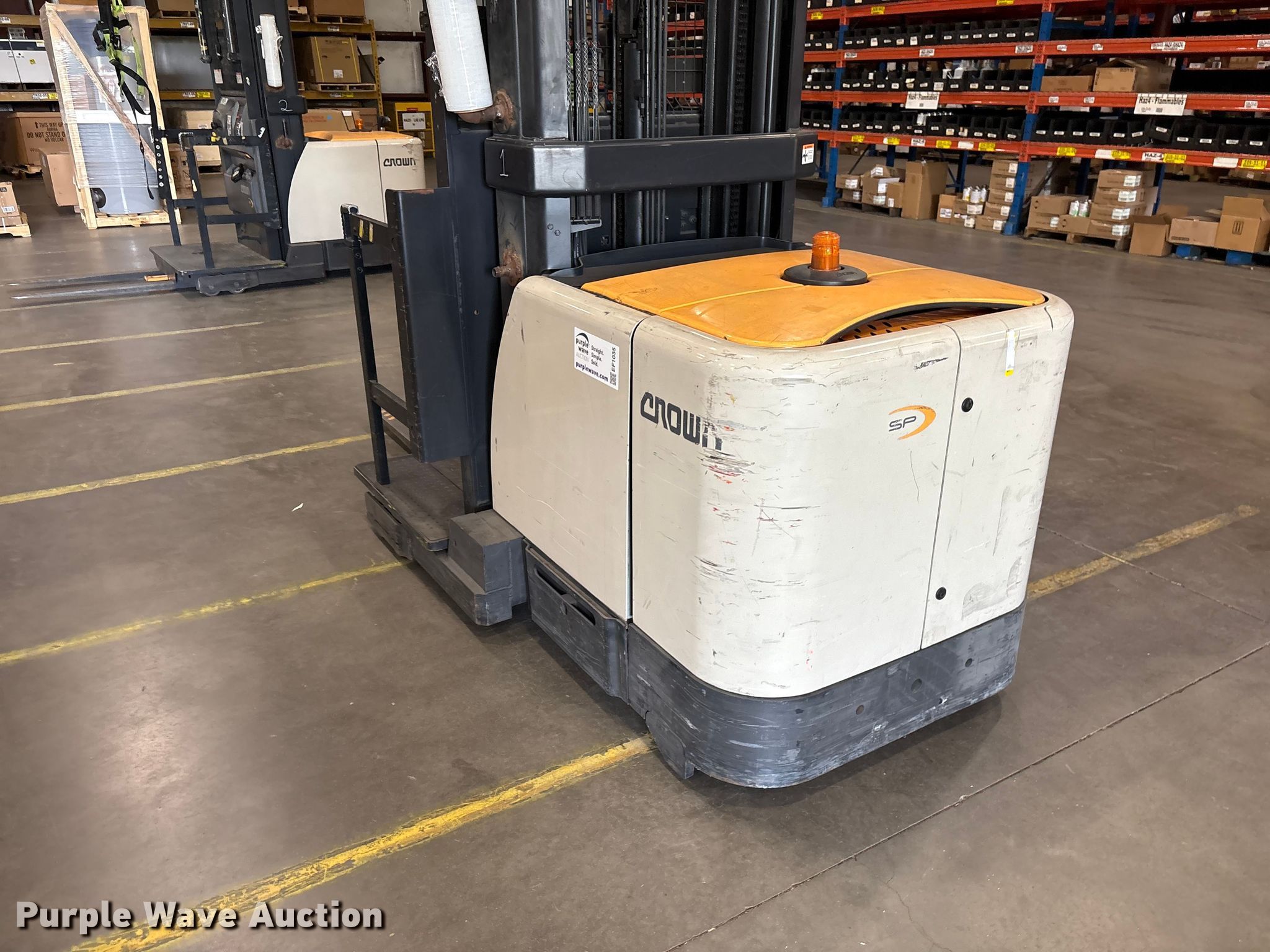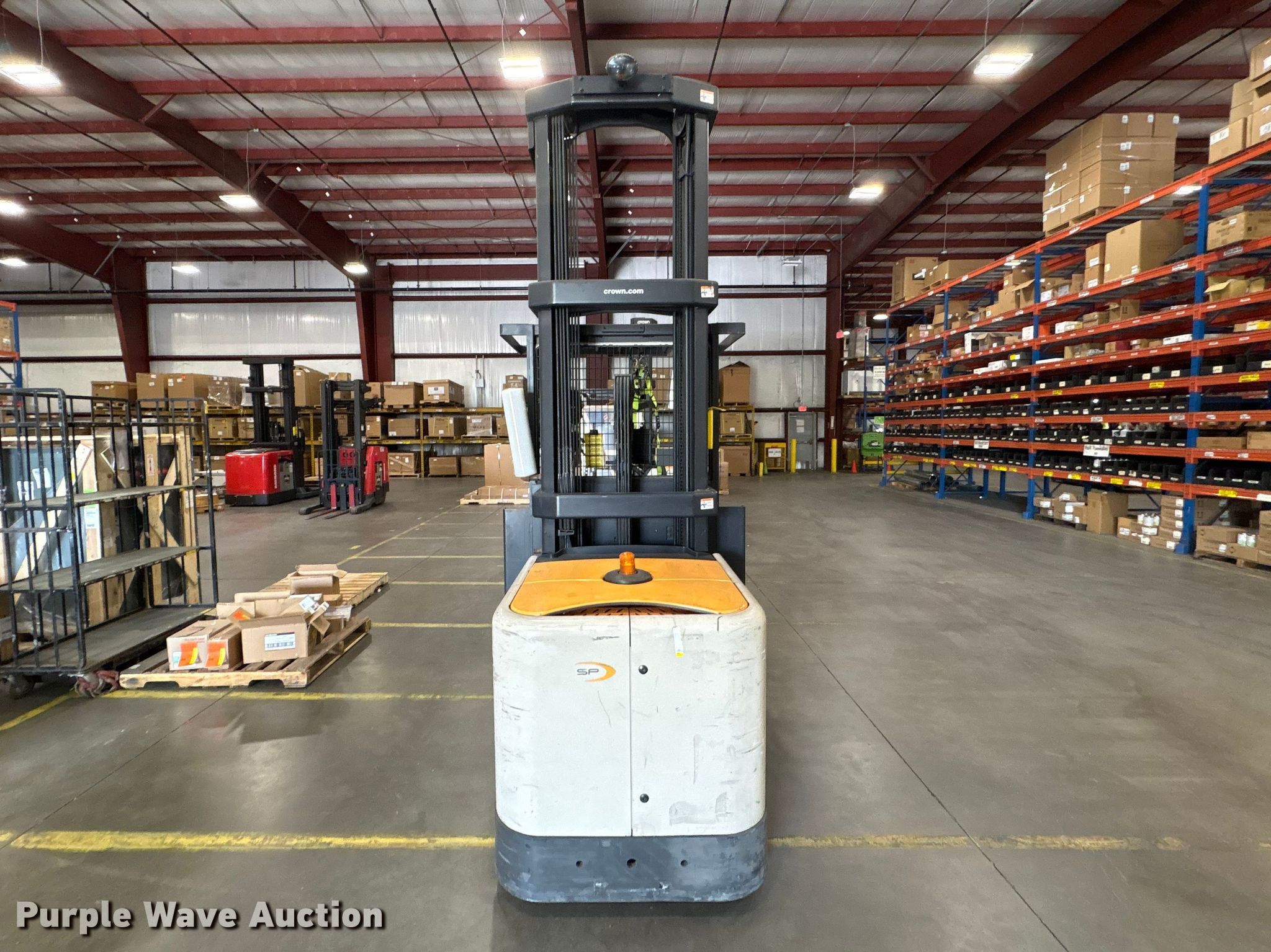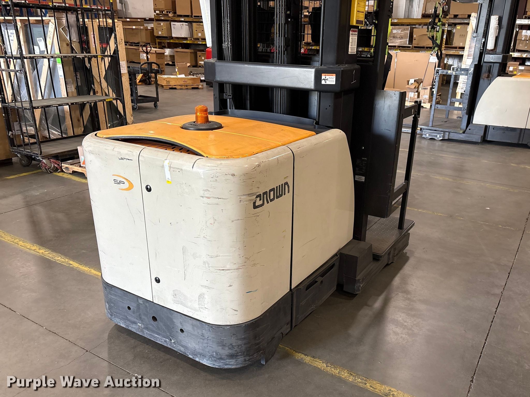 Purple Wave is selling a used Warehouse Forklift in South Carolina. This item is a 2017 Crown SP4050-30 order picker with the following: Hours: 3,906 on meter, Serial: 1A502045, Unit #: SPS2313