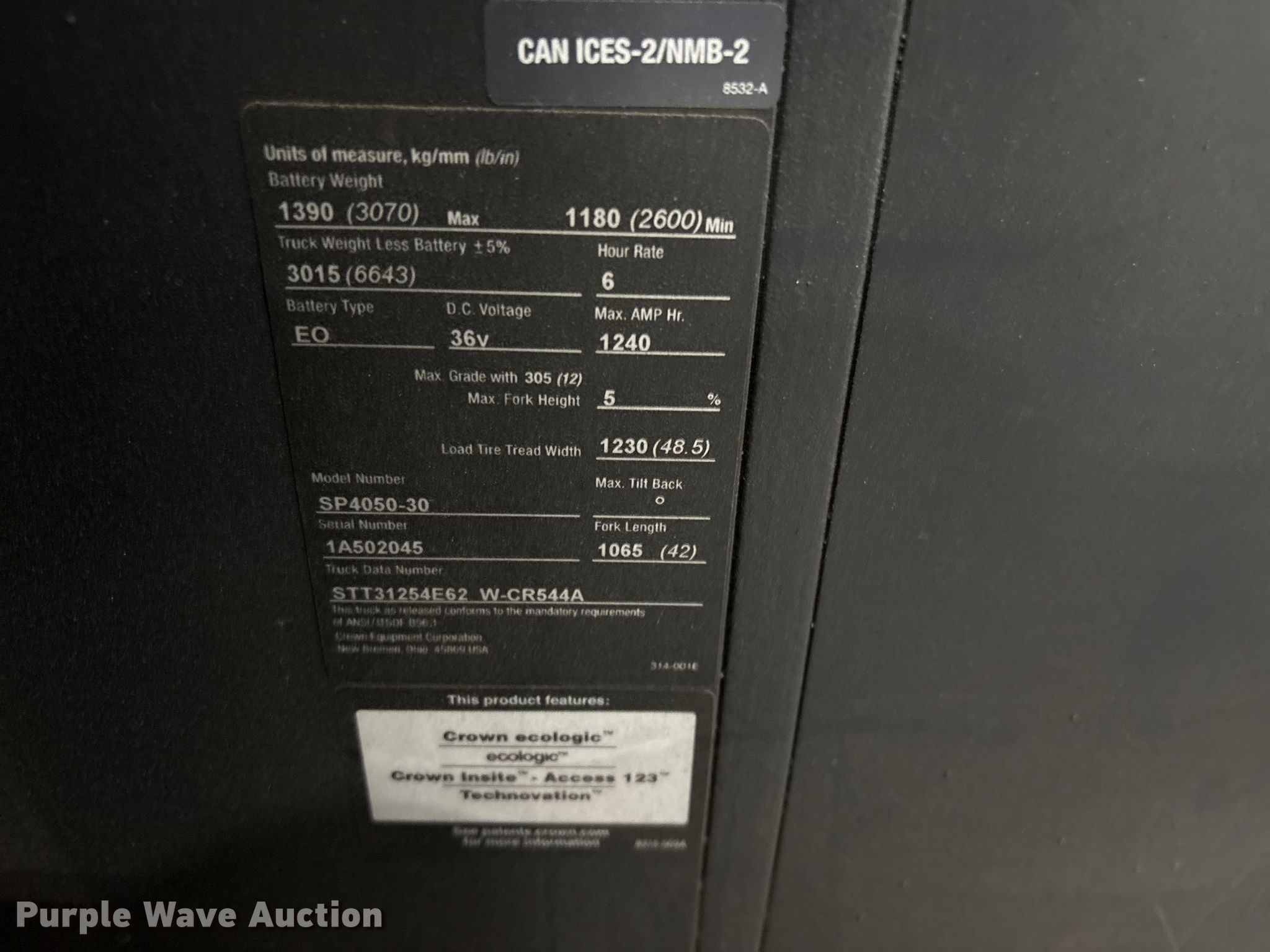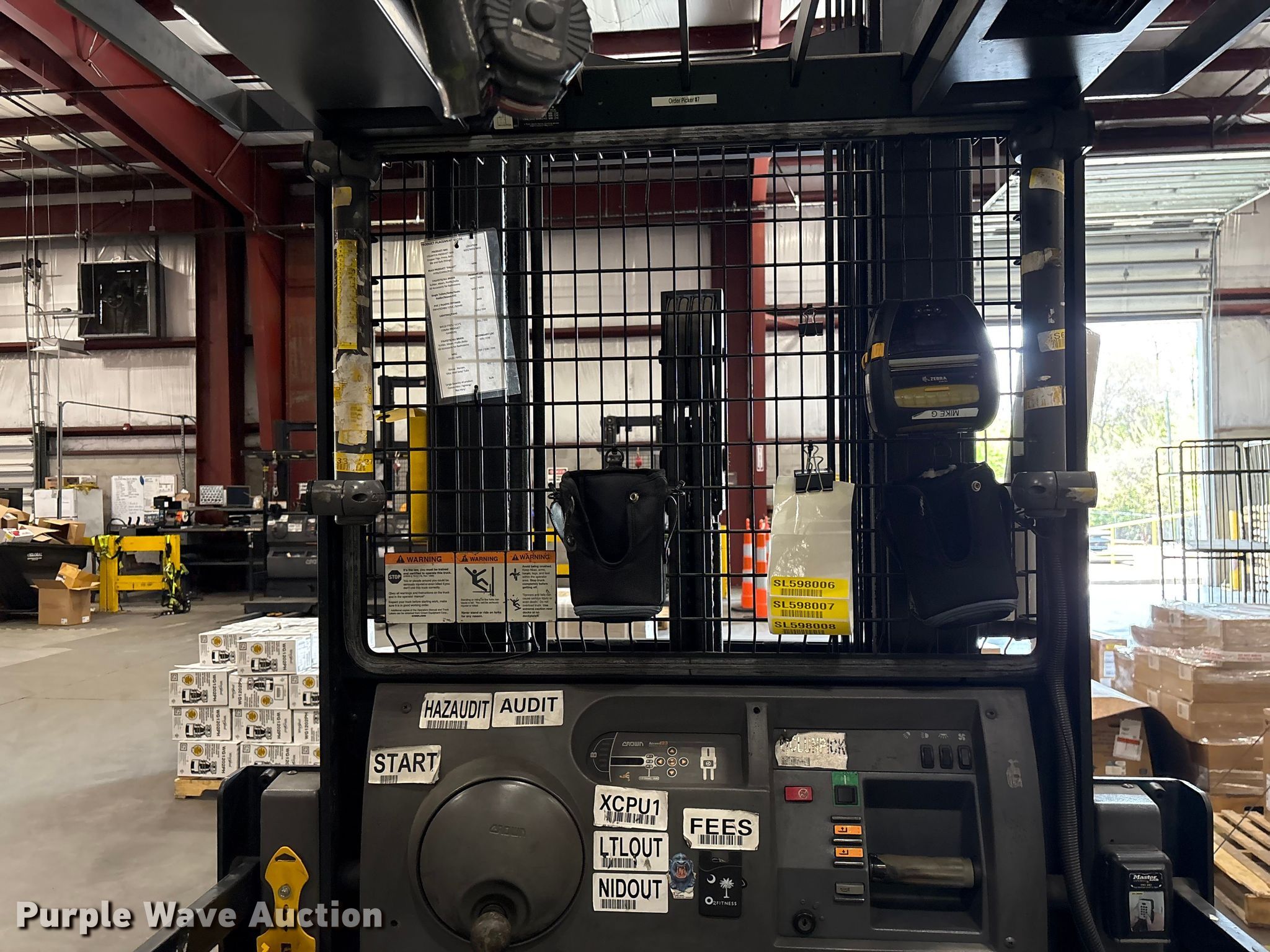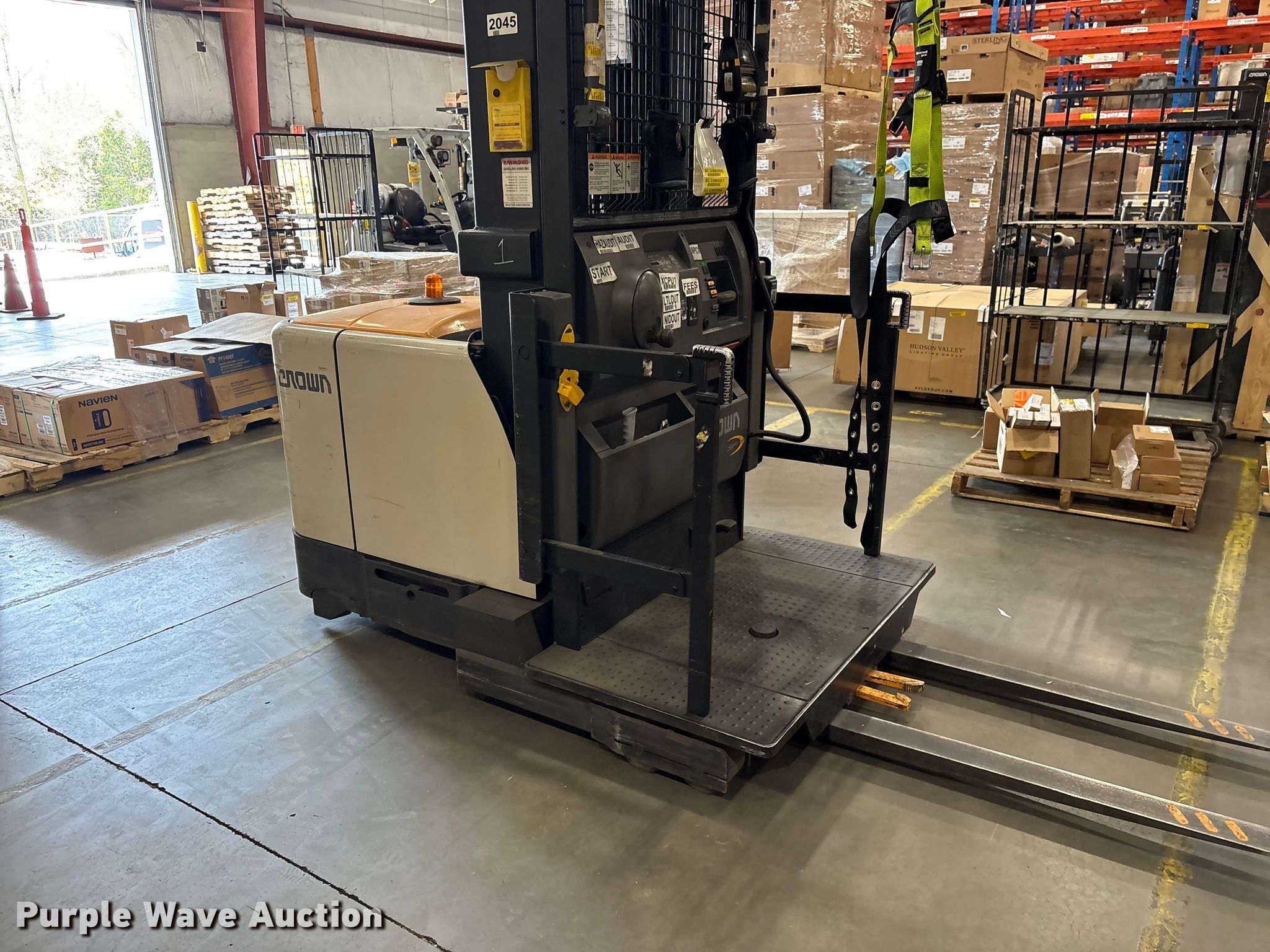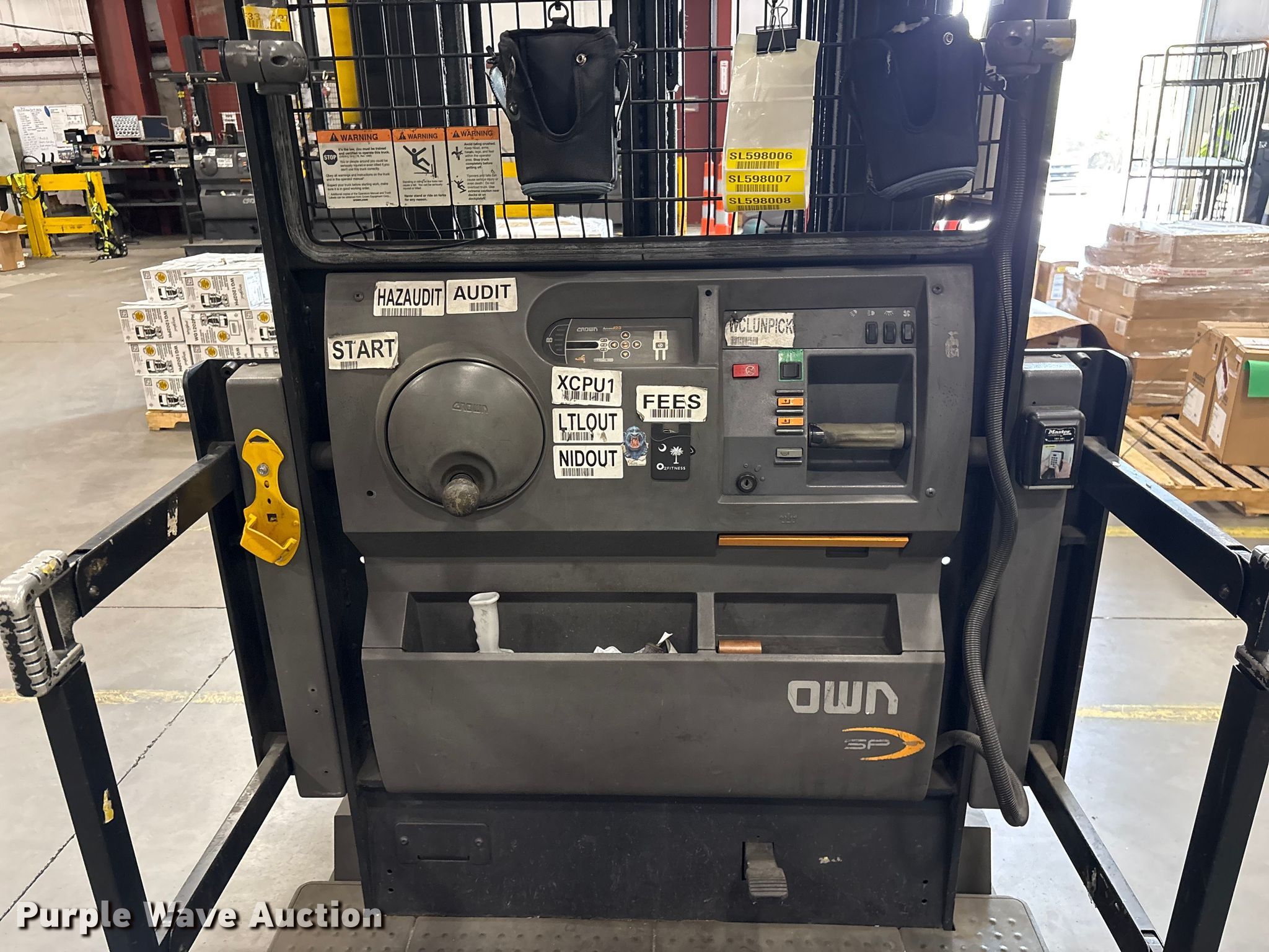 Purple Wave is selling a used Warehouse Forklift in South Carolina. This item is a 2017 Crown SP4050-30 order picker with the following: Hours: 3,906 on meter, Serial: 1A502045, Unit #: SPS2313
