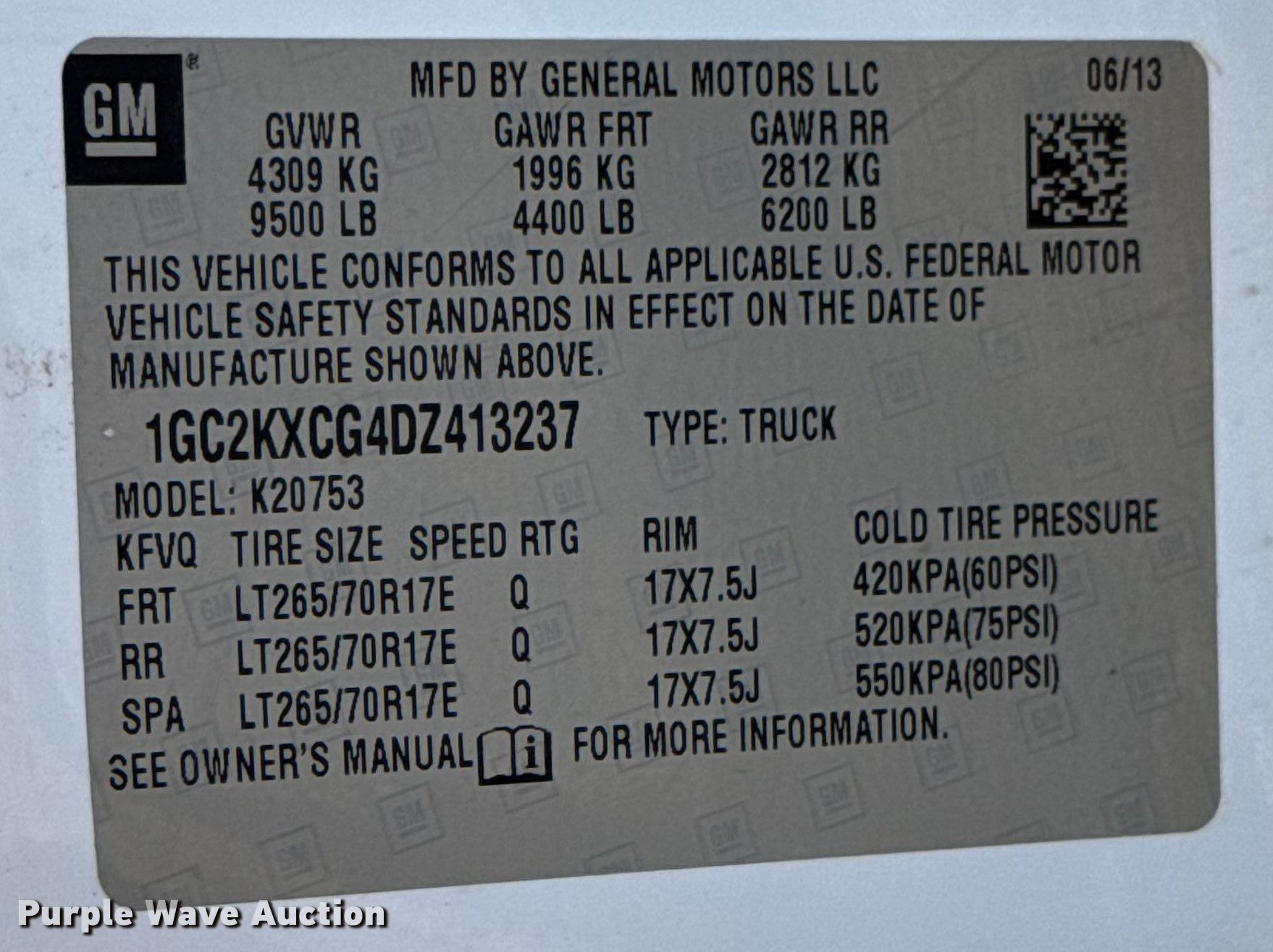 Purple Wave is selling a used 3/4 or 1 Ton Pickup or Van in Oklahoma. This item is a 2013 Chevrolet Silverado 2500HD Ext. Cab flatbed pickup truck with the following: Miles: 173,201 on odometer, VIN: 1GC2KXCG4DZ413237