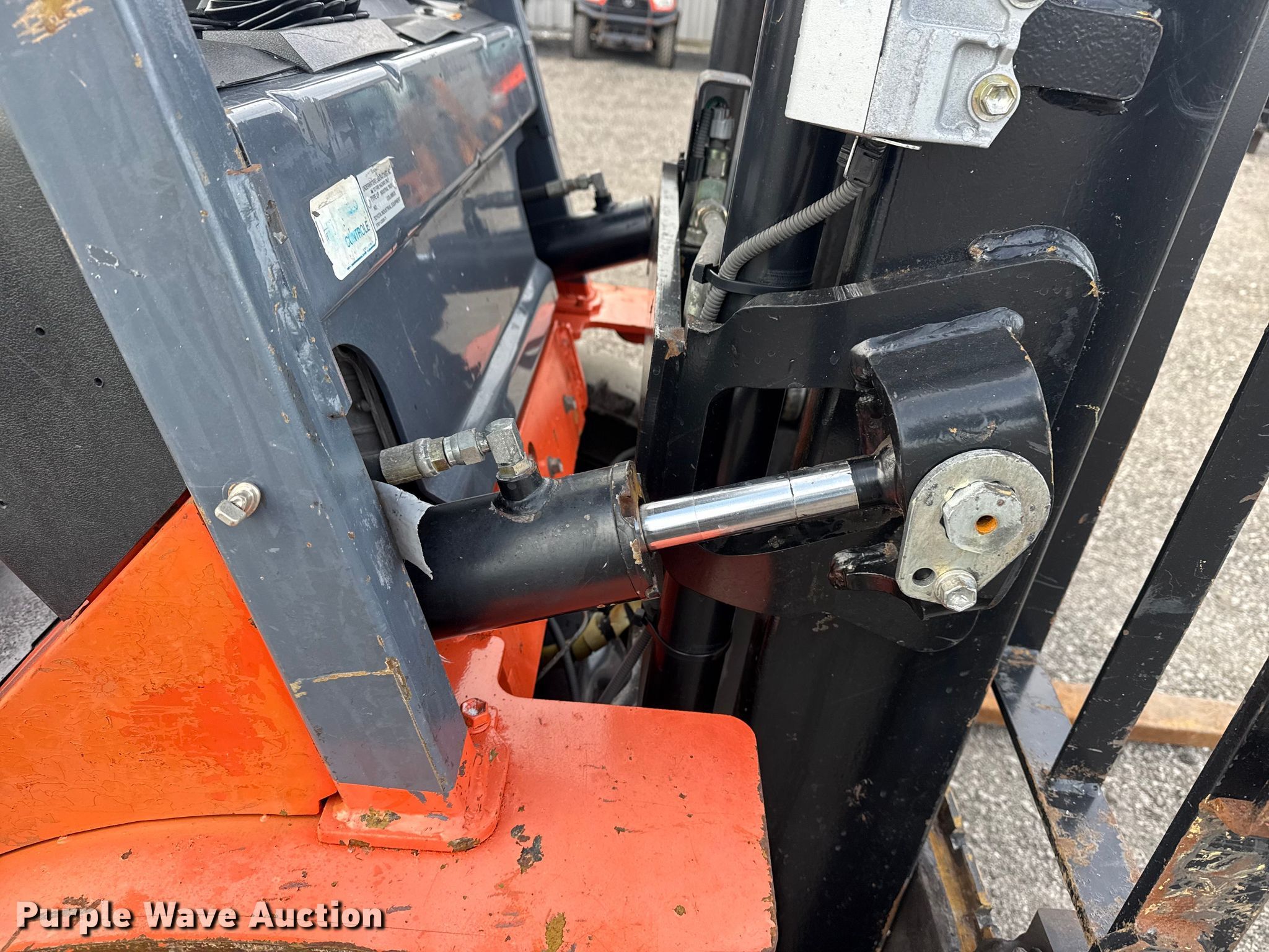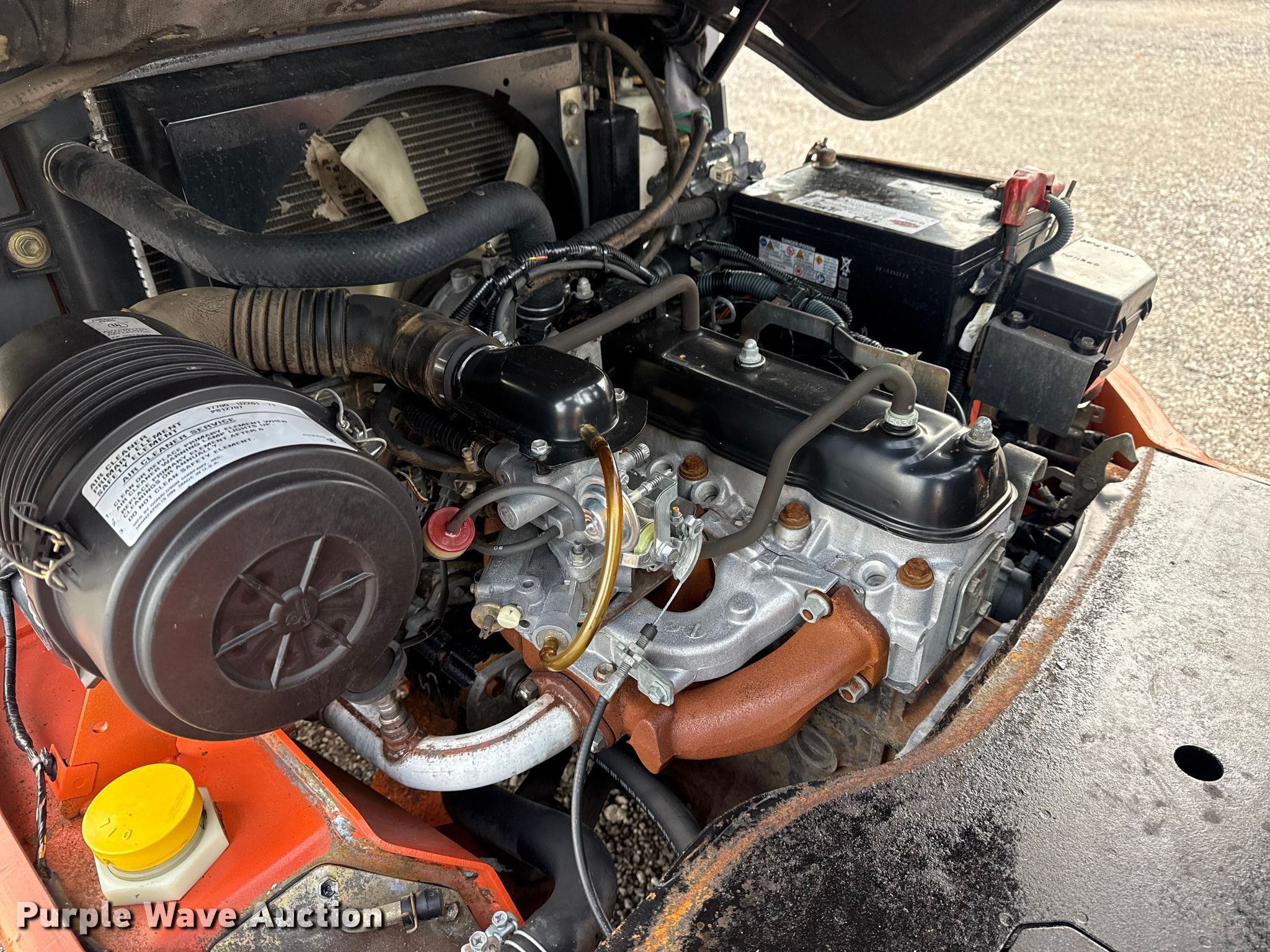 Toyota 7FGU25 forklift. Hours: 9,986 on meter, Serial: 71642. Engine Toyota, Displacement: 2.237L, Cylinders: 4, Fuel type: LPG LP bottle: Included. Transmission Powershift, 1F - 1R. Operators station Canopy. Features Maximum lift capacity: 5,000 lbs, Maximum lift height: 131", Collapsed mast height: 84", Mast stages: 1, Mast tilt, Fork length: 52". Tires Front: 7. 00-12, Rear: 6.00-9, Solid. Collinsville, OK 74021