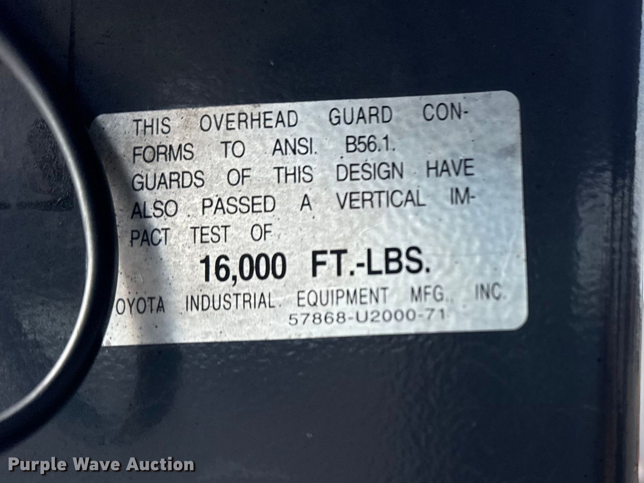 Purple Wave is selling a used Warehouse Forklift in Oklahoma. This item is a Toyota 7FGU25 forklift with the following: Hours: 9,986 on meter, Serial: 71642