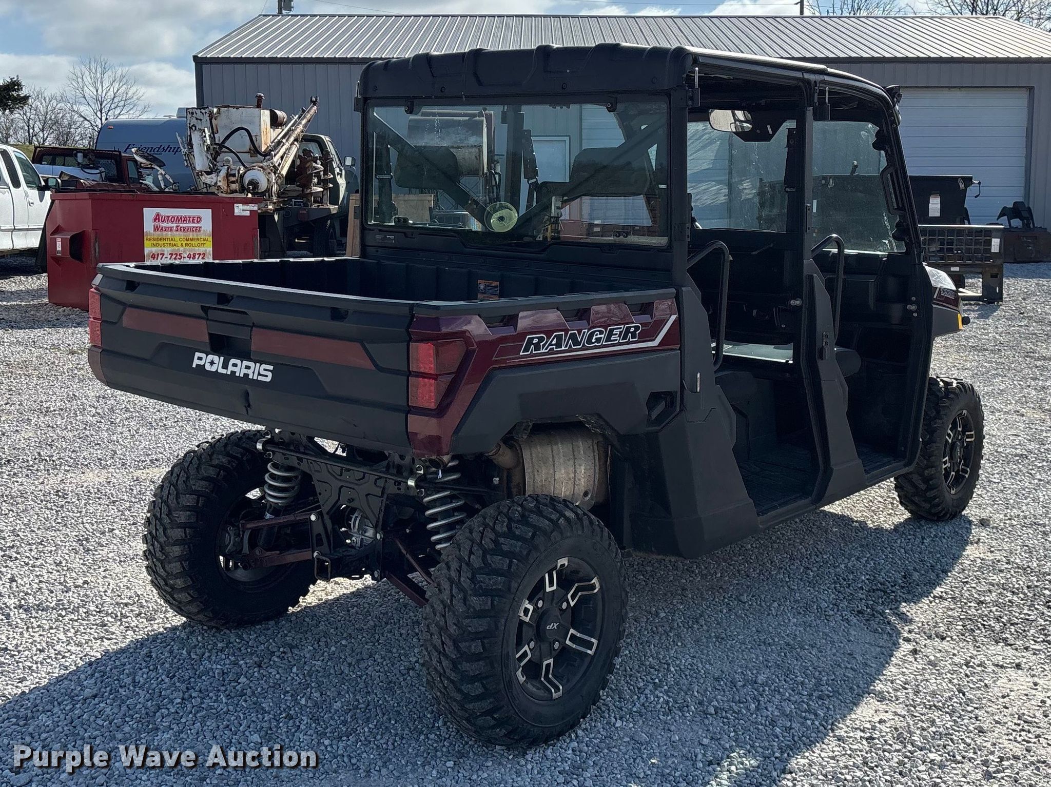 2021 Polaris XP1000 utility vehicle. Miles: 8,330 on odometer, Hours: 988 on meter, VIN: 4XARSE995M8472175. Engine Cylinders: 2, Fuel type: Gas, Electric start. Transmission Automatic. Chassis Four wheel drive/ All wheel drive. Operators station OROPS, Canopy. Features Grille guard, Receiver hitch, Dump bed 42" L x 59" W, Dump bed type: Manual. Tires Front: 27x9.00-14NHS, Rear: AT27x11R14. Notes Soft doors included. Transfer of ownership documentation will be a bill of sale. Sparta, MO 65753