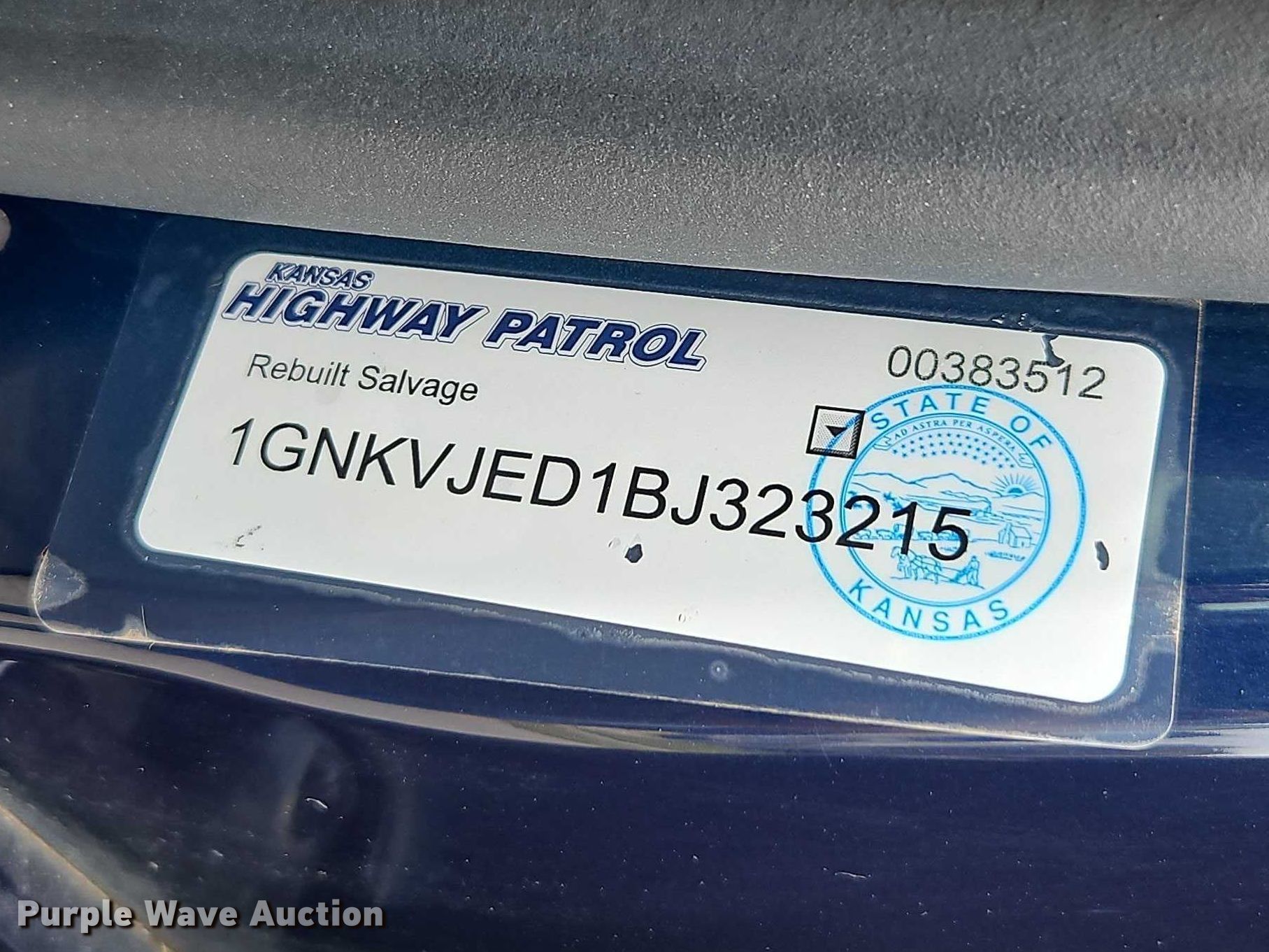 2011 Chevrolet Traverse SUV. Miles: 149,731 on odometer, VIN: 1GNKVJED1BJ323215. Engine Displacement: 3.6L, Cylinders: 6, Fuel type: Gas. Transmission Automatic, All wheel drive. Interior AC, Heat, Seat: Heated, Power driver, Power passenger, Power windows, Power locks, Cruise control, Backup camera, Powered sunroof. Tires Size: 255/65R18. Notes Hood damage. Kansas rebuilt salvage title. Title distribution may be delayed up to 14 days from verification of funds. Doug Mehner. Shawnee, KS 66226