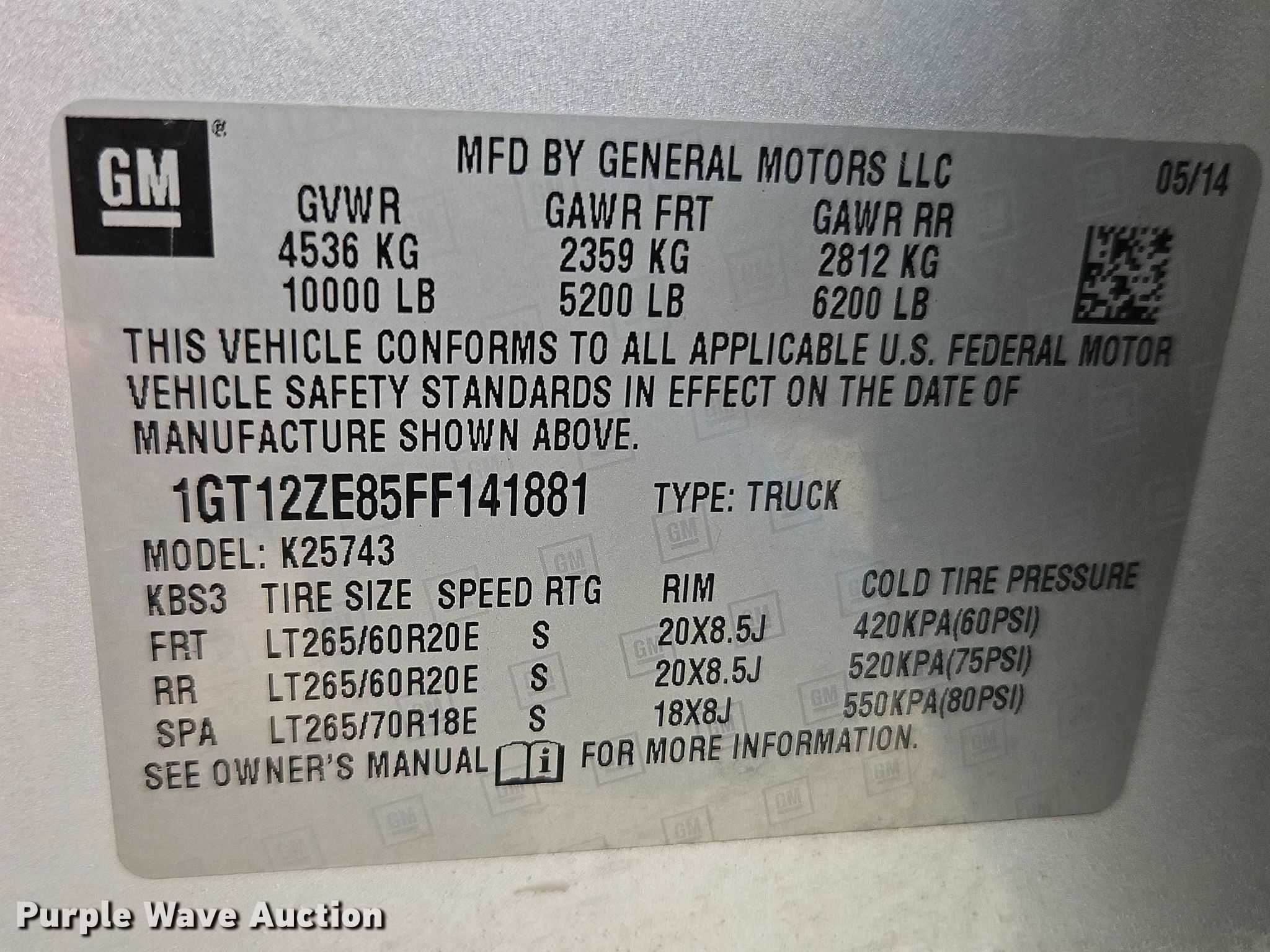 Purple Wave is selling a used 3/4 or 1 Ton Pickup or Van in Kansas. This item is a 2015 GMC Sierra 2500HD Crew Cab pickup truck with the following: Miles: Unknown, VIN: 1GT12ZE85FF141881