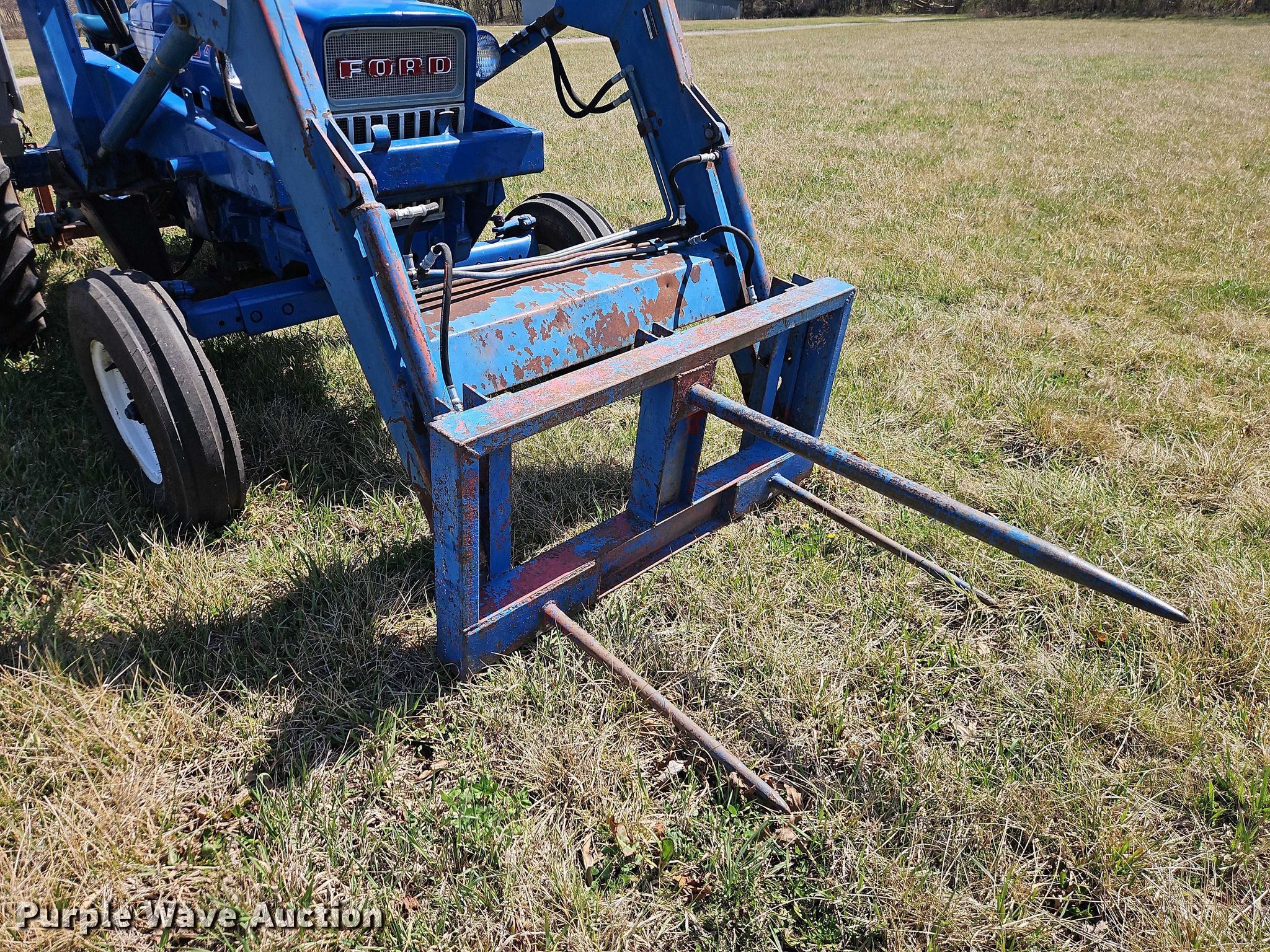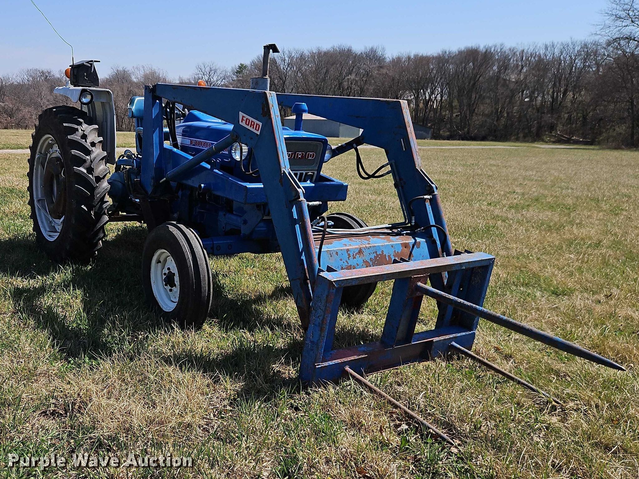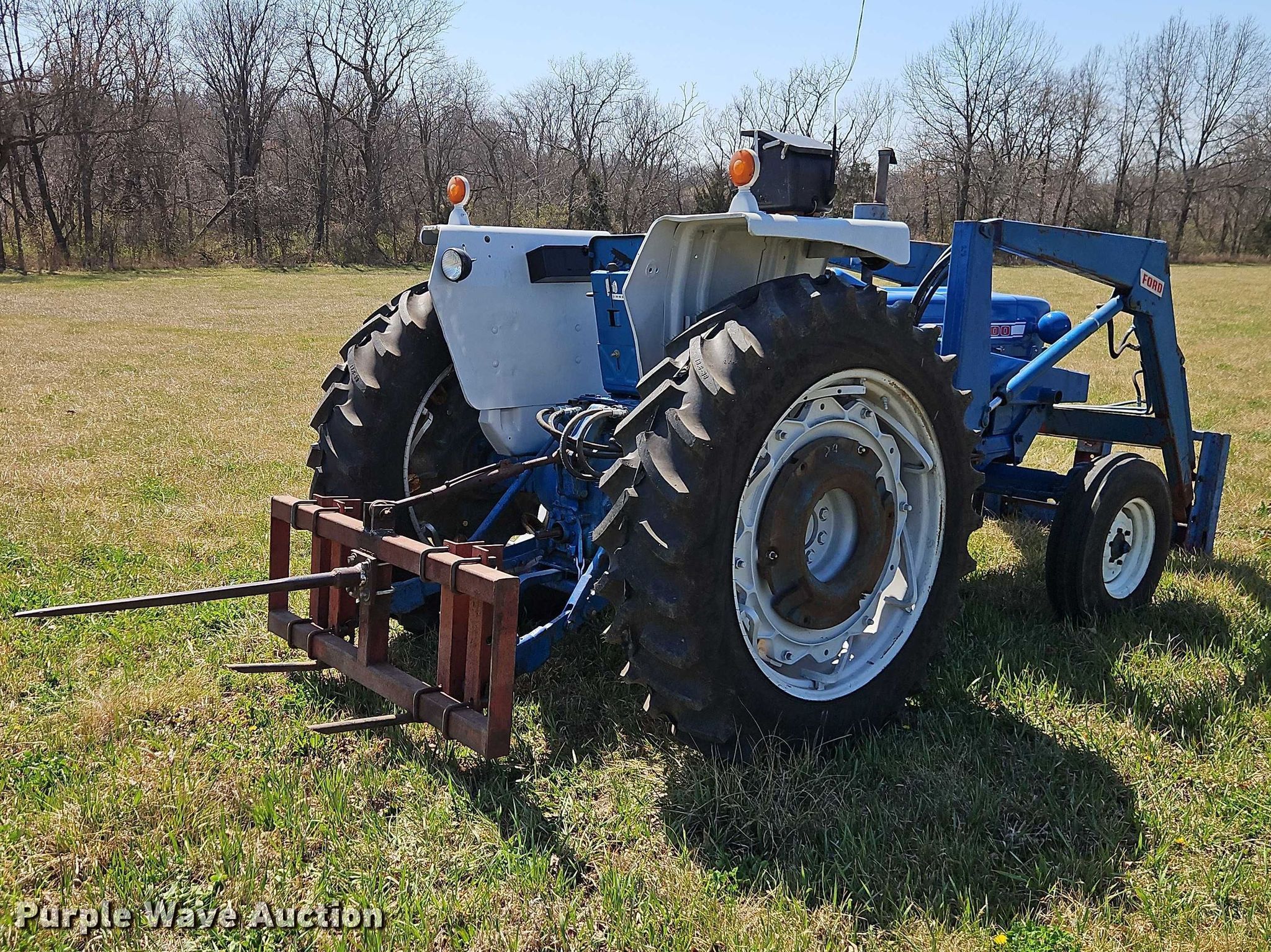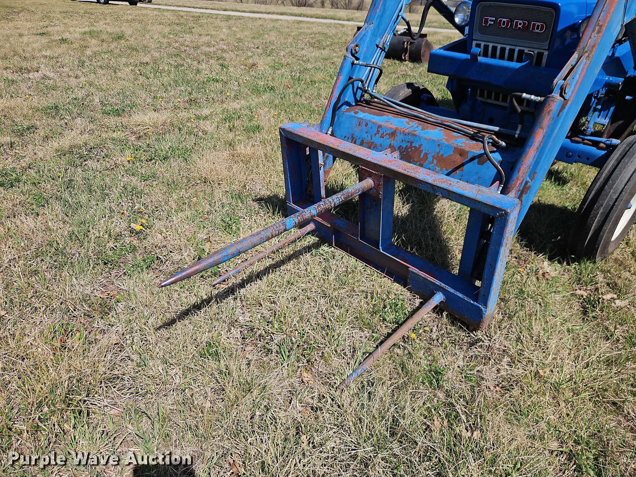 Ford 4000 tractor. Hours: 15 on meter, Serial: C344800. Engine Cylinders: 3, Fuel type: Diesel. Transmission Manual, 8F - 2R, Differential lock. Features PTO: 540, Three point Top link, Hydraulic remote sets Rear: 4, Loader Schwartz Manufacturing, Bale spear, Bucket Width: 72".. Tires Front: 7.50-16, Rear: 13.6-38, Wheel weights: 2. Pleasant Hill, MO 64080