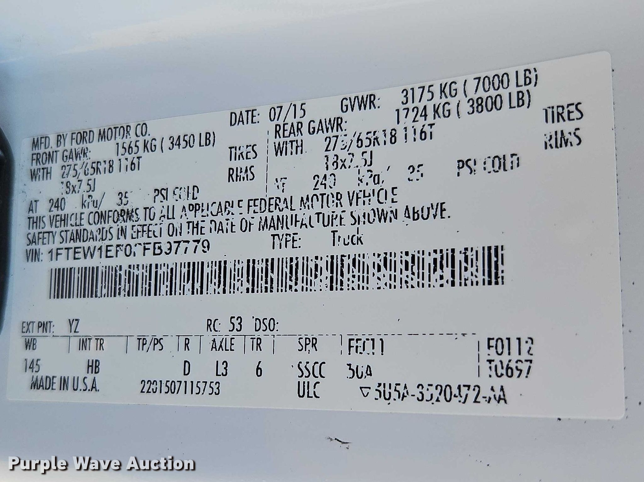 Purple Wave is selling a used 1/2 Ton Pickup or Van in Kansas. This item is a 2015 Ford F150 Crew Cab pickup truck with the following: Miles: 275,100 on odometer, VIN: 1FTEW1EF0FFB97779, Unit #: 64