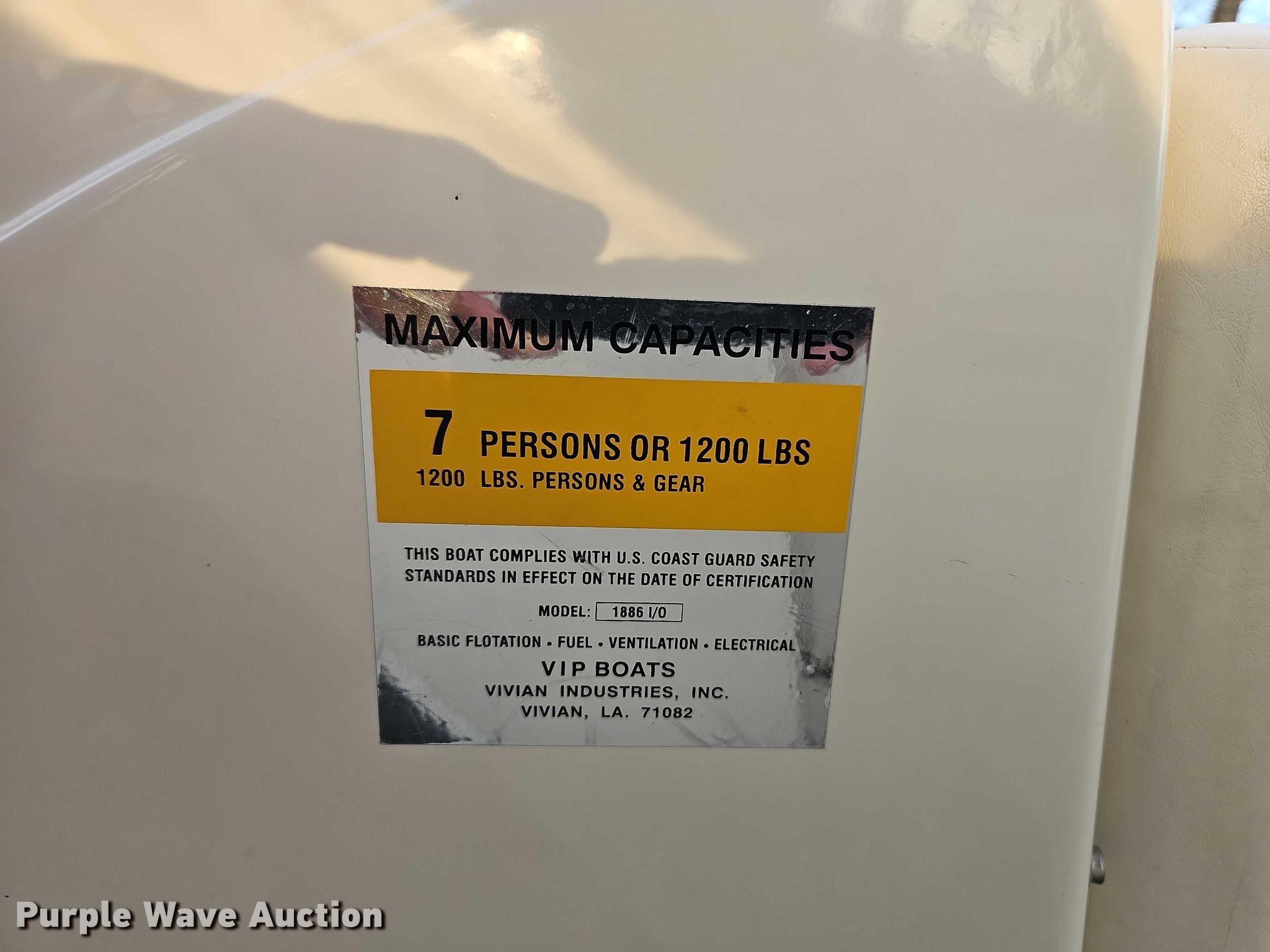 Purple Wave is selling a used Boat in Missouri. This item is a 1999 VIP Vision boat with the following: Length: 18', Hull ID: VVIUS707K899