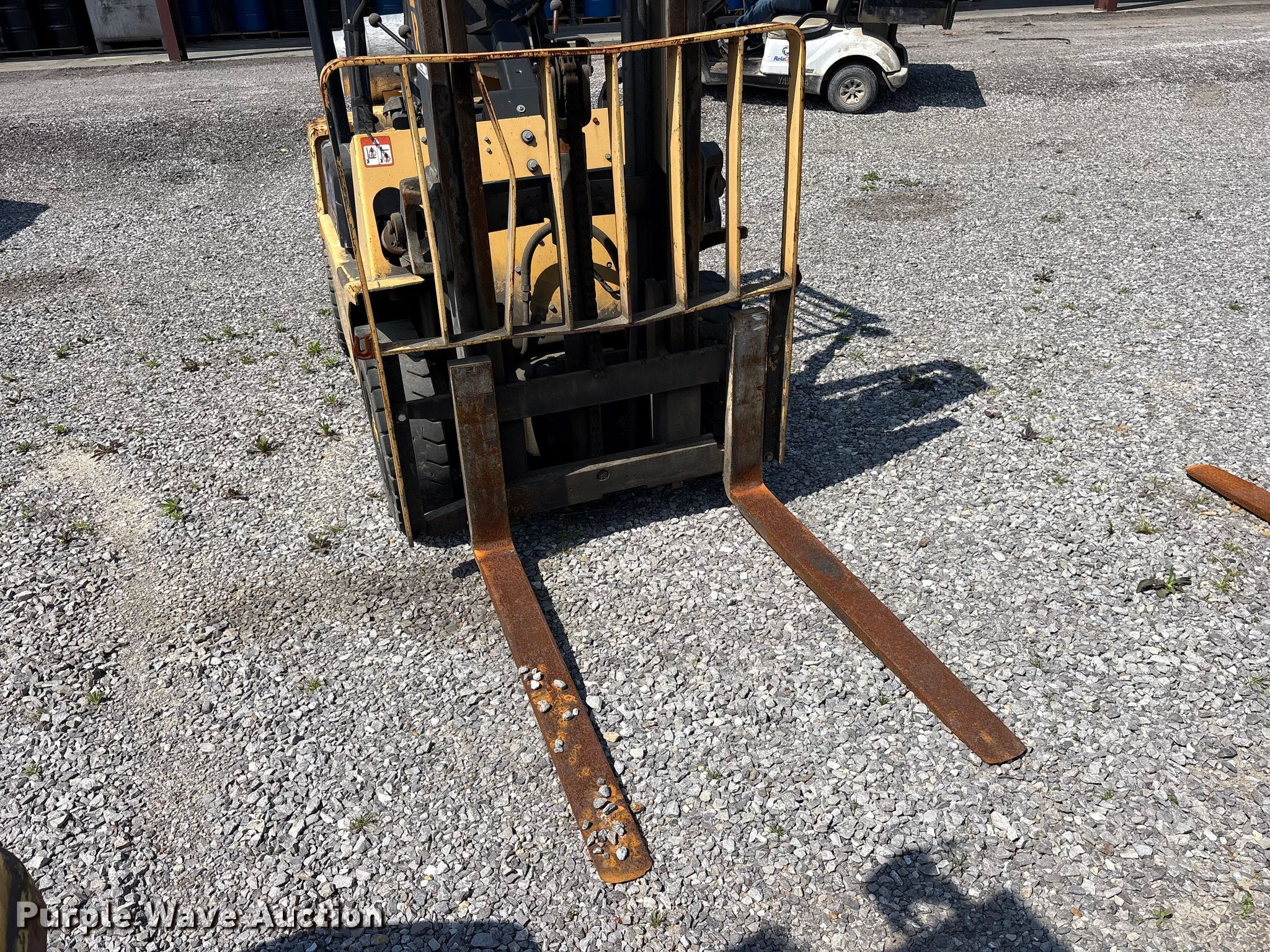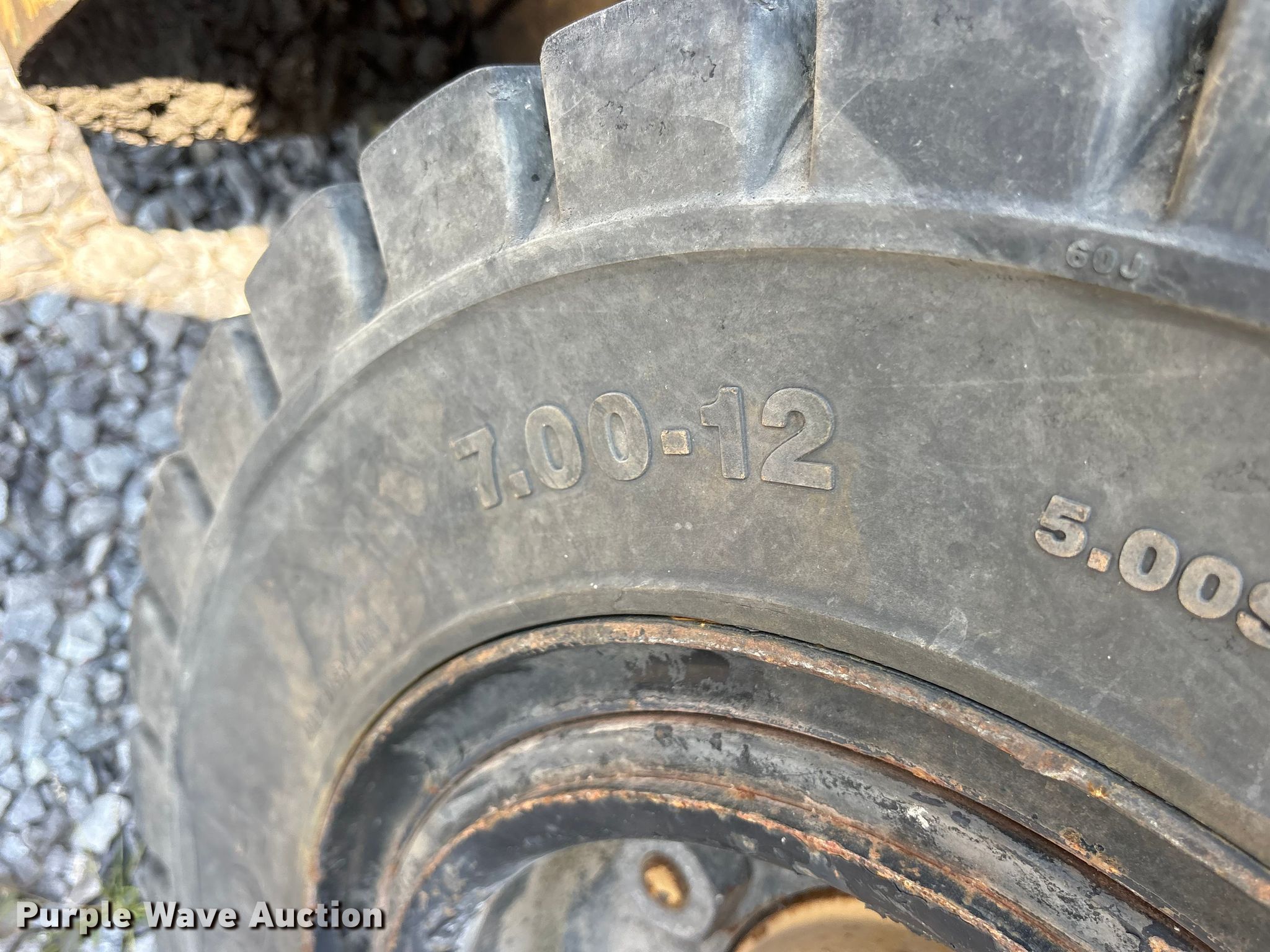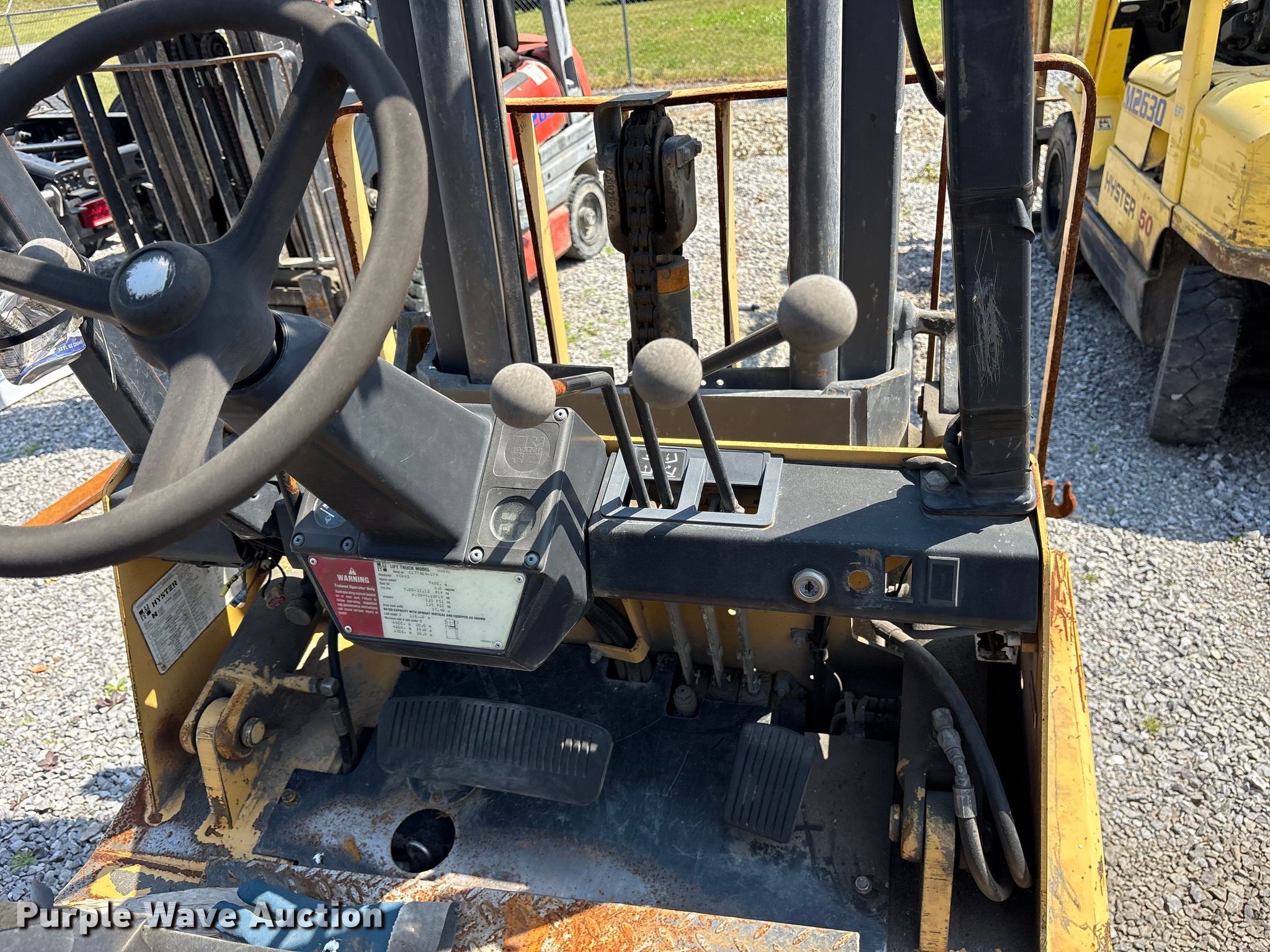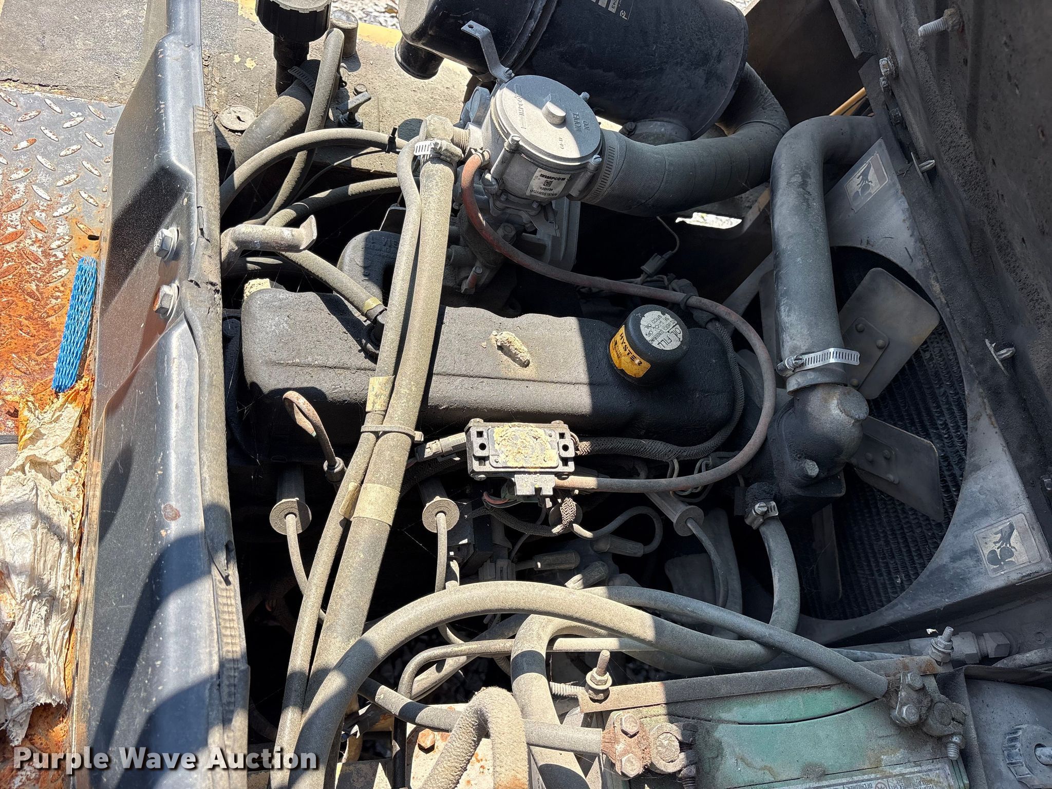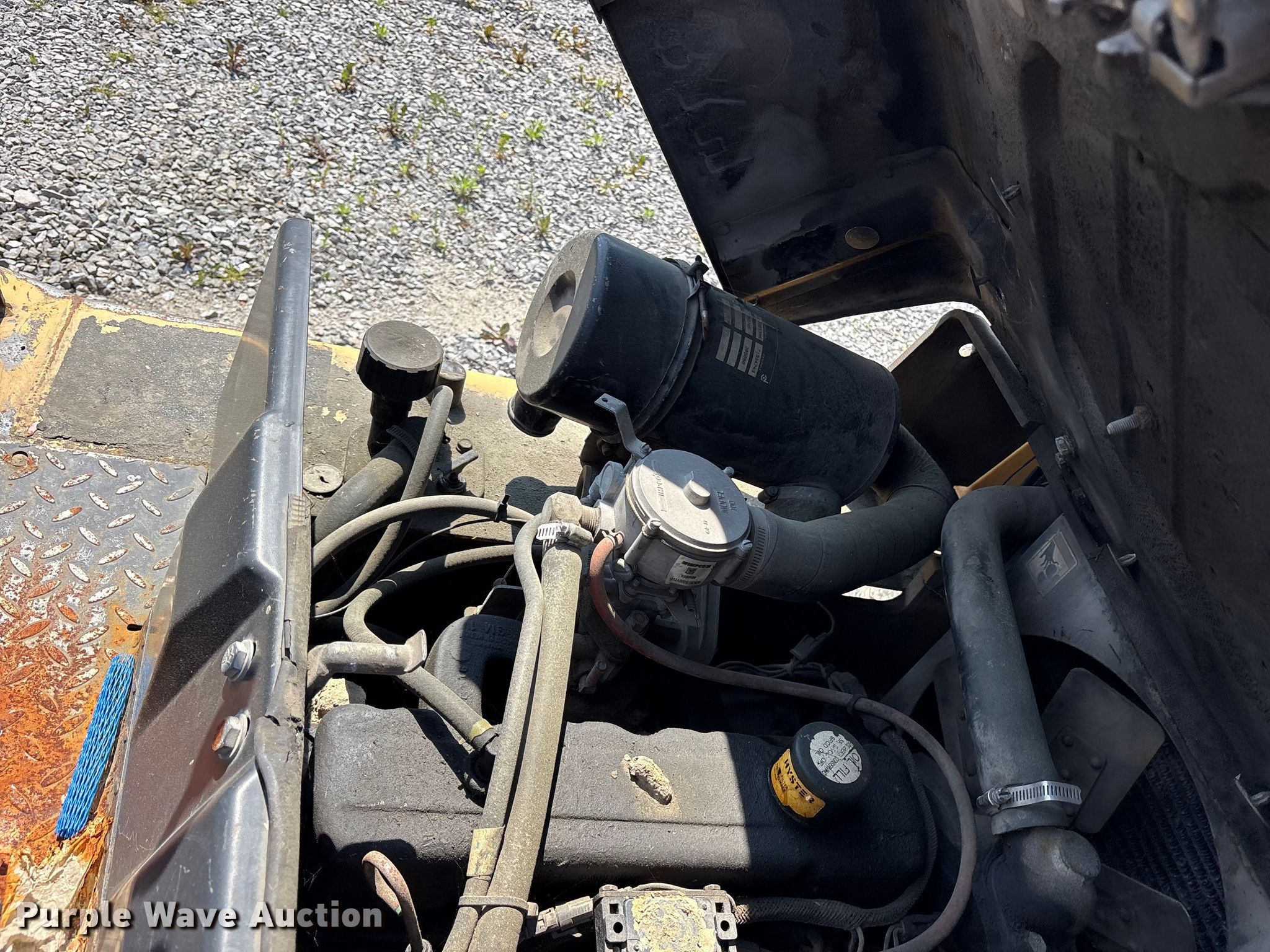 1991 Hyster H40XL forklift. Hours: 7,871 on meter, Serial: C177B08437M, Unit #: M2634. Engine Cylinders: 4, Fuel type: LPG. Transmission Hydrostatic. Operators station Canopy. Features Maximum lift capacity: 7,450 lbs, Maximum lift height: 130", Collapsed mast height: 83", Mast stages: 2, Mast tilt, Fork length: 44". Tires Front: 7.00-12, Rear: 6.00R9. Notes Dead battery, Non-operational unit. Sun Coast Resources. Jasper, AL 35501