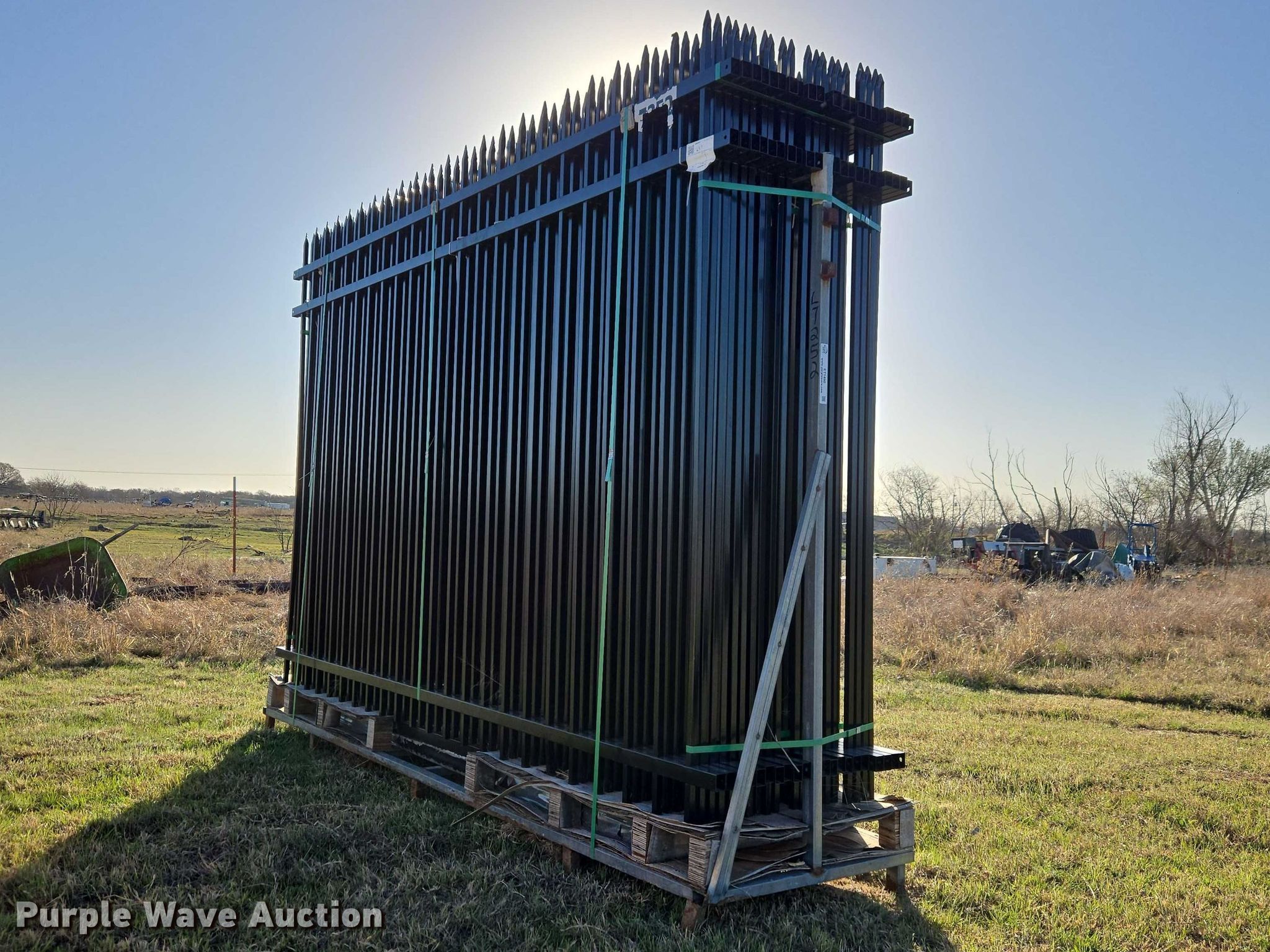 Purple Wave is selling a used Fencing Materials in Oklahoma. This item is a Steel decorative fencing with the following: (20) fence panels, Dimensions: 10' L x 6'6" H