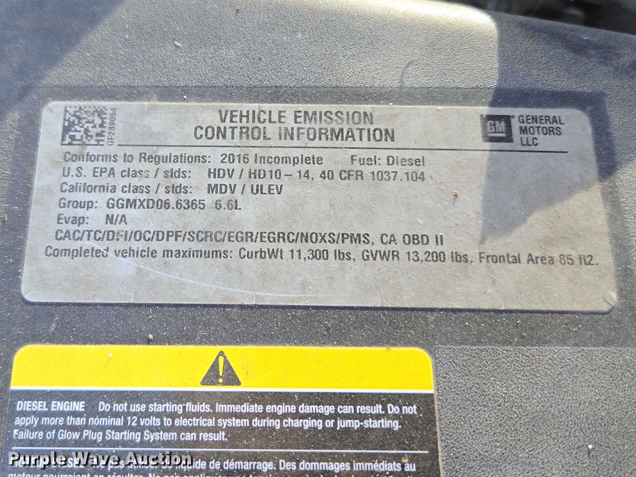 2016 Chevrolet Silverado 3500HD Crew Cab flatbed pickup truck. Miles: 305,073 on odometer, VIN: 1GB4KYC88GF289054. Engine Displacement: 6.6L, Cylinders: 8, Fuel type: Diesel. Transmission Automatic, Four wheel drive. Interior AC, Heat, Seat: Power driver, Power windows, Power locks, Cruise control, Brake controller. Features Bed Utility bed, Length: 9' 8", Width: 7' 2", Hitch: Gooseneck. Tires Front: LT235/80R17, Rear: LT245/75R17. Notes Dash warning indicator: Check engine, Traction control, Hail damage. Oklahoma title. Title distribution may be delayed up to 14 days from verification of funds. CD Brown Construction. Sulphur, OK 73086