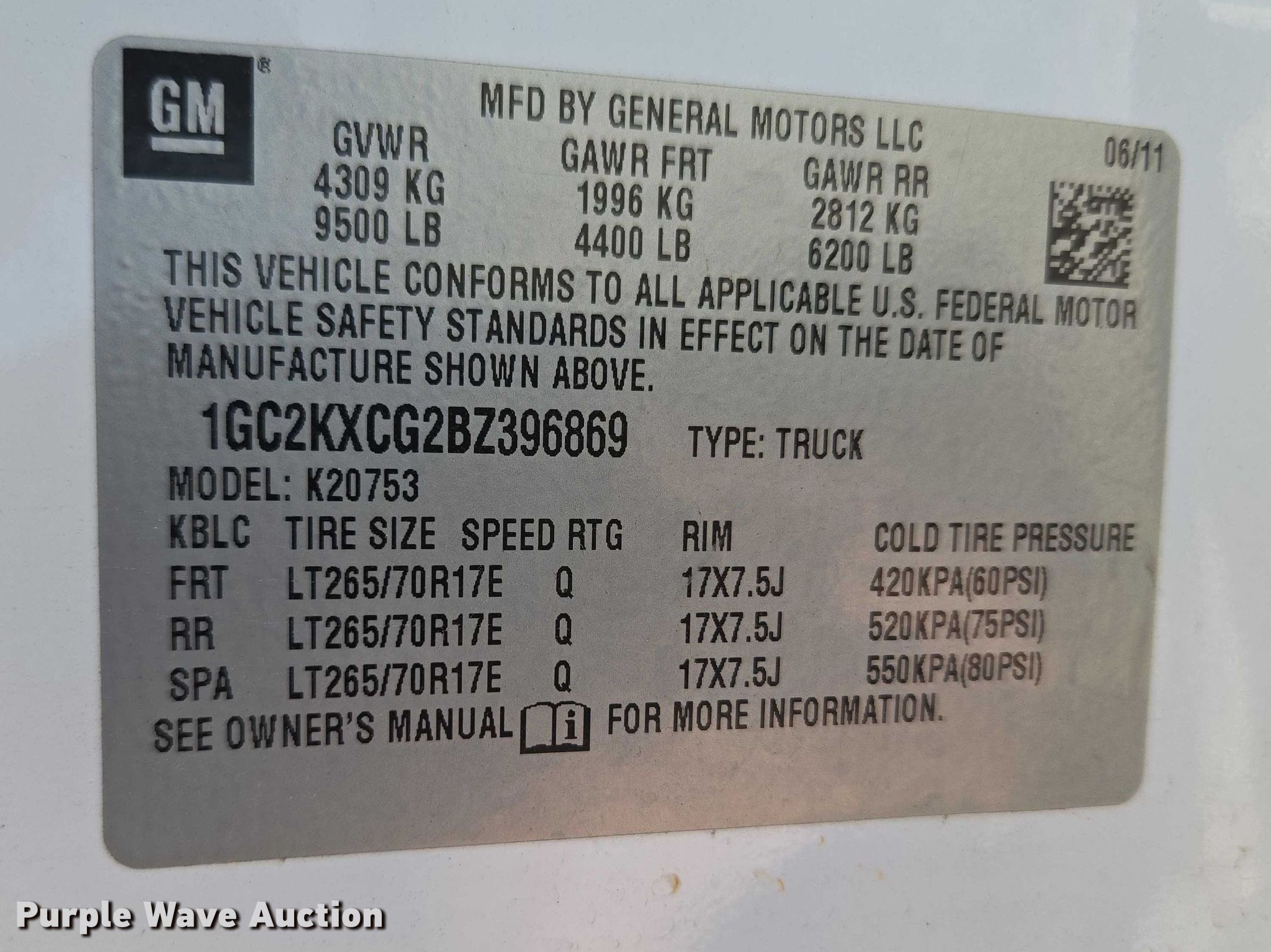 - VIN: 1GC2KXCG2BZ396869