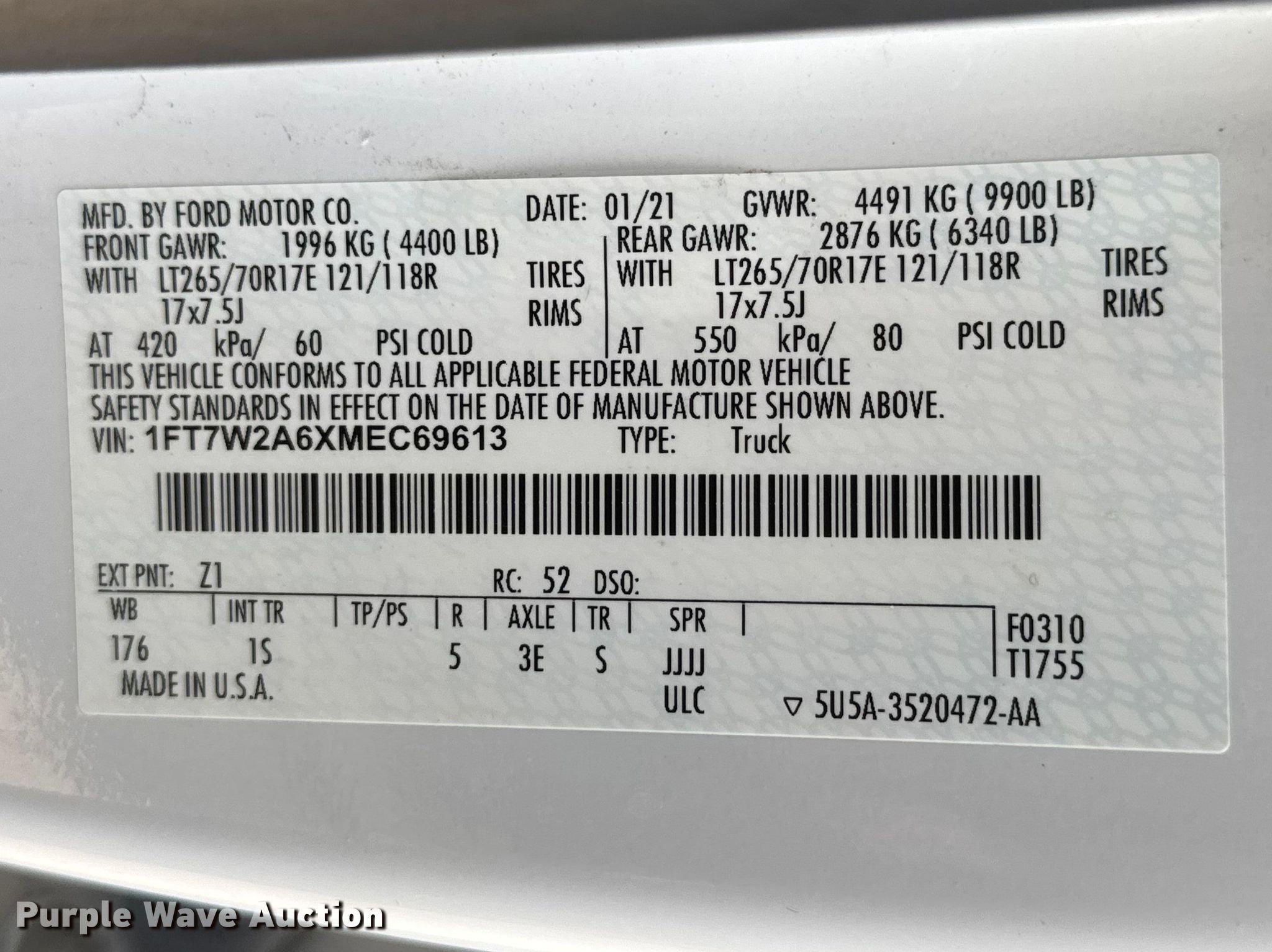 - VIN: 1FT7W2A6XMEC69613