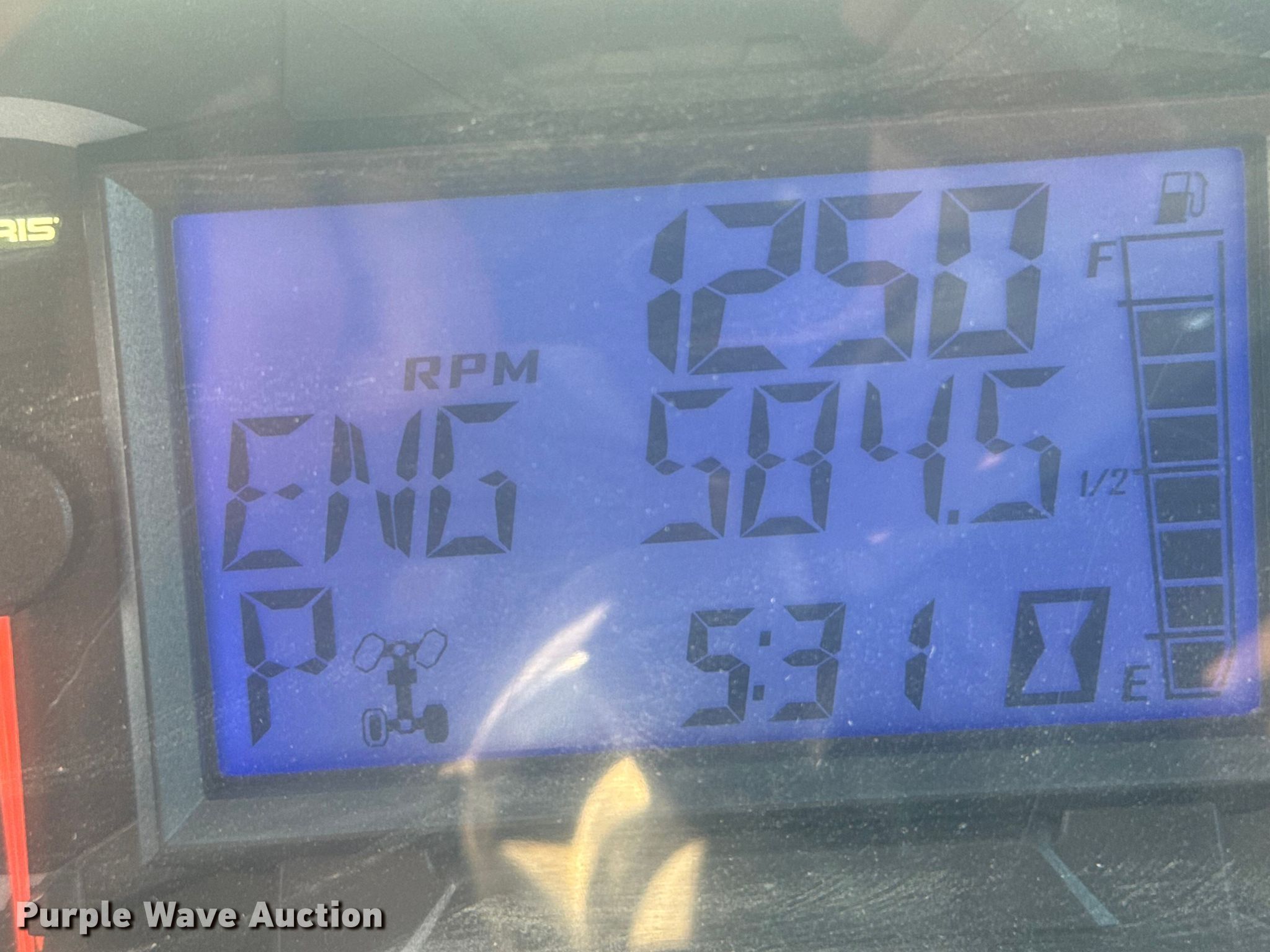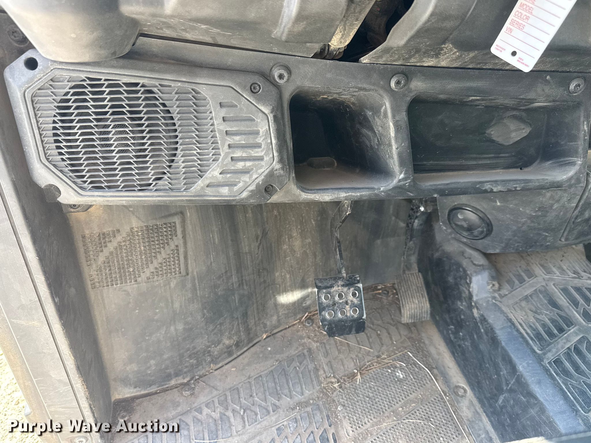2019 Polaris Ranger XP 1000 utility vehicle. Miles: 4,703 on odometer, Hours: 585 on meter, VIN: 4XARSU997K8902330. Engine Displacement: 999 cc, Cylinders: 2, Fuel type: Gas. Transmission Automatic. Chassis Four wheel drive/ All wheel drive. Operators station Enclosed cab, AC, Heat. Features Differential lock, Front and rear view camera, Power windows, Grille guard, Receiver hitch, Dump bed 42" L x 59" W, Dump bed type: Manual. Tires Size: 30x10.00R15. Notes Windshield cracked. Kansas non-highway not intnd for road use title. Title distribution may be delayed up to 14 days from verification of funds. Stands Farms, LLC. El Dorado, KS 67042