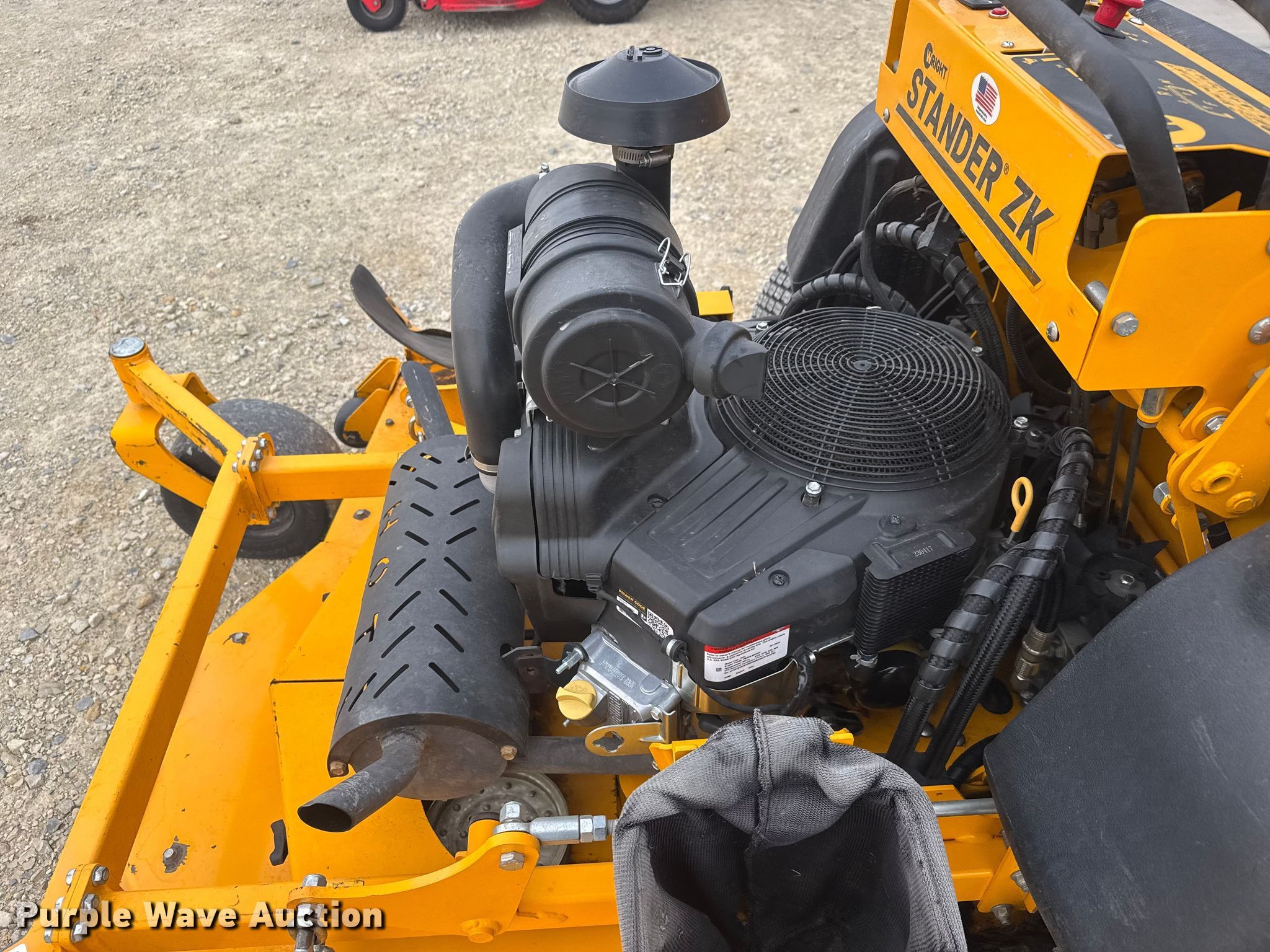 2019 Wright Stander ZK ZTR lawn mower. Hours: 1,040 on meter, Cutting width: 72", Serial: WSZK72S61E8E-49S. Engine Briggs and Stratton Vanguard, Displacement: 933cc, Cylinders: 2, Fuel type: Gas, HP: 37. Transmission Hydrostatic. Features Stand on. Tires Front: 13x6.50-6/4.50, Rear: 23x10.00-12. Notes (2) 24x12.00-12 additional tires included. Sedgwick, KS 67135