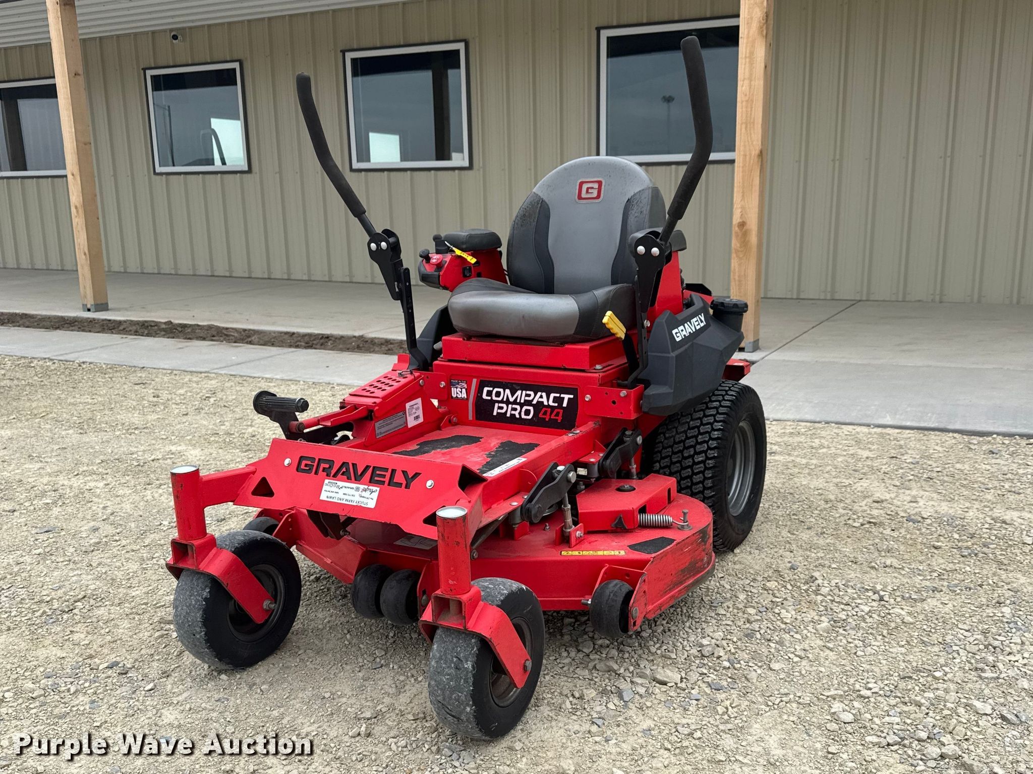Purple Wave is selling a used Lawn Mower in Kansas. This item is a 2019 Gravely Compact Pro 44 ZTR lawn mower with the following: Hours: 753 on meter, Cutting width: 44", Serial: 030421
