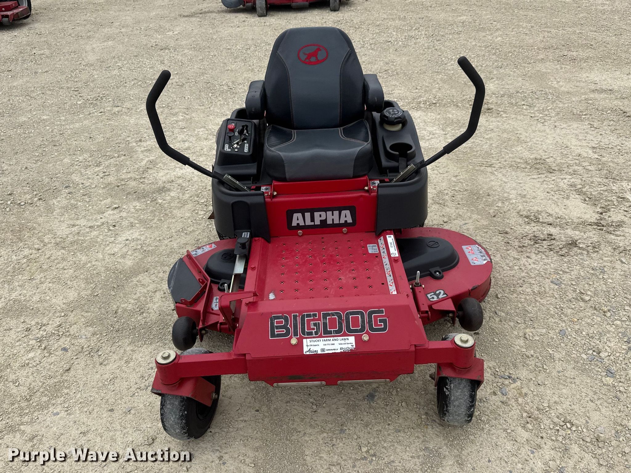Purple Wave is selling a used Lawn Mower in Kansas. This item is a Big Dog Alpha ZTR lawn mower with the following: Hours: 766 on meter, Cutting width: 52", Serial: 20015121