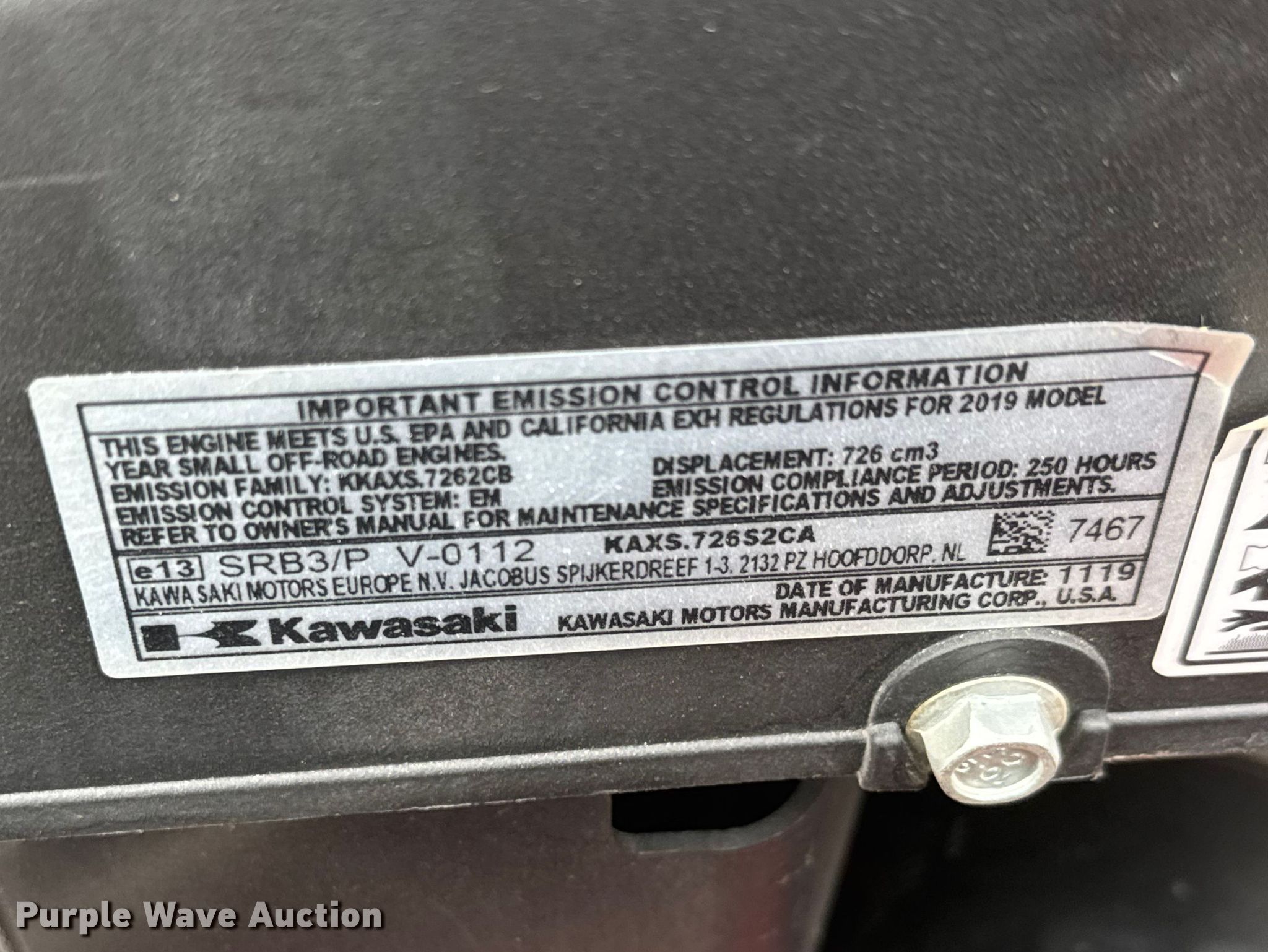 Big Dog Alpha ZTR lawn mower. Hours: 766 on meter, Cutting width: 52", Serial: 20015121. Engine Kawasaki FR691V, Displacement: 726cc, Cylinders: 2, Fuel type: Gas, HP: 23. Transmission Hydrostatic. Tires Front: 11x4.00-5, Rear: 18x8.50-8. Sedgwick, KS 67135