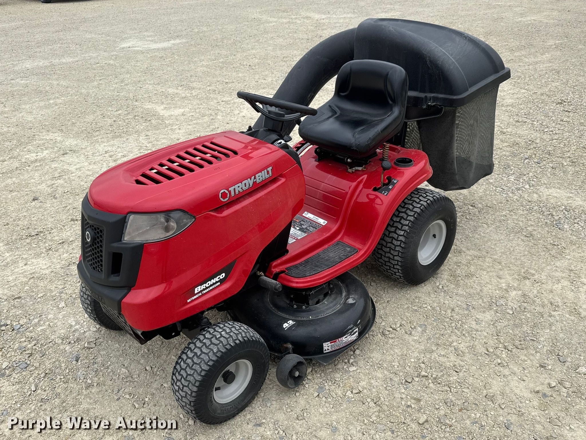 Purple Wave is selling a used Lawn Mower in Kansas. This item is a 2013 Troy-Bilt Bronco lawn mower with the following: Cutting width: 42", Serial: 1E173B30054