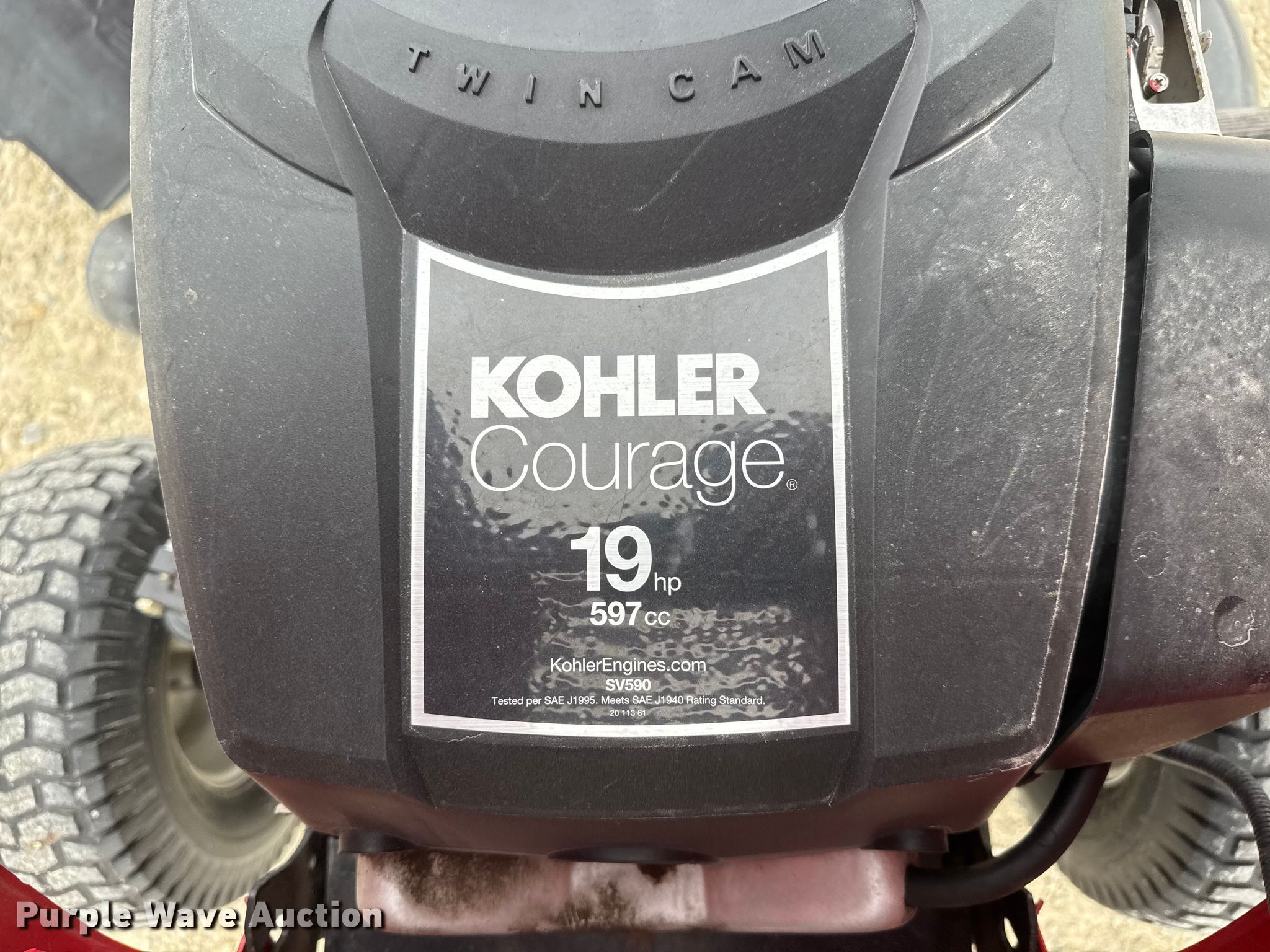 2013 Troy-Bilt Bronco lawn mower. Cutting width: 42", Serial: 1E173B30054. Engine Kohler Courage, Displacement: 597cc, Cylinders: 2, Fuel type: Gas, HP: 19. Features Grass bagger. Tires Front: 15x6.00-6, Rear: 20x8.00-8. Sedgwick, KS 67135