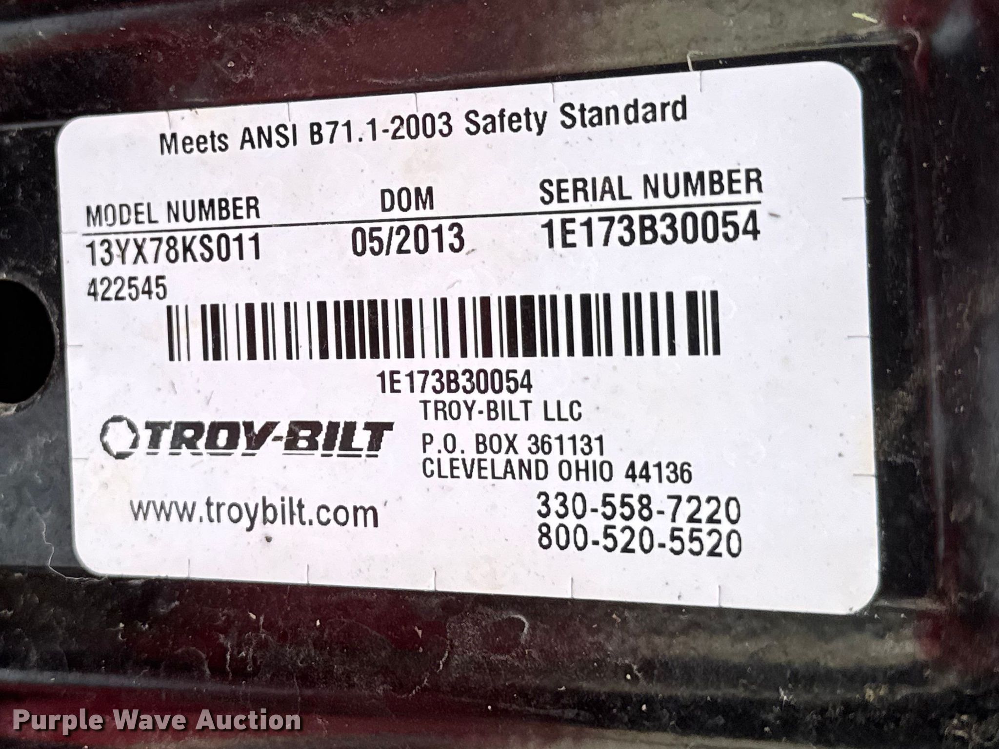 This 2013 Troy-Bilt Bronco lawn mower will sell to the highest bidder regardless of price.