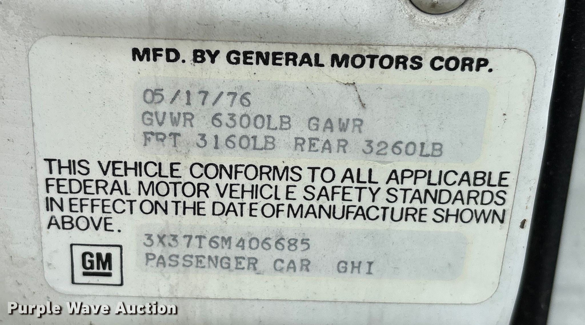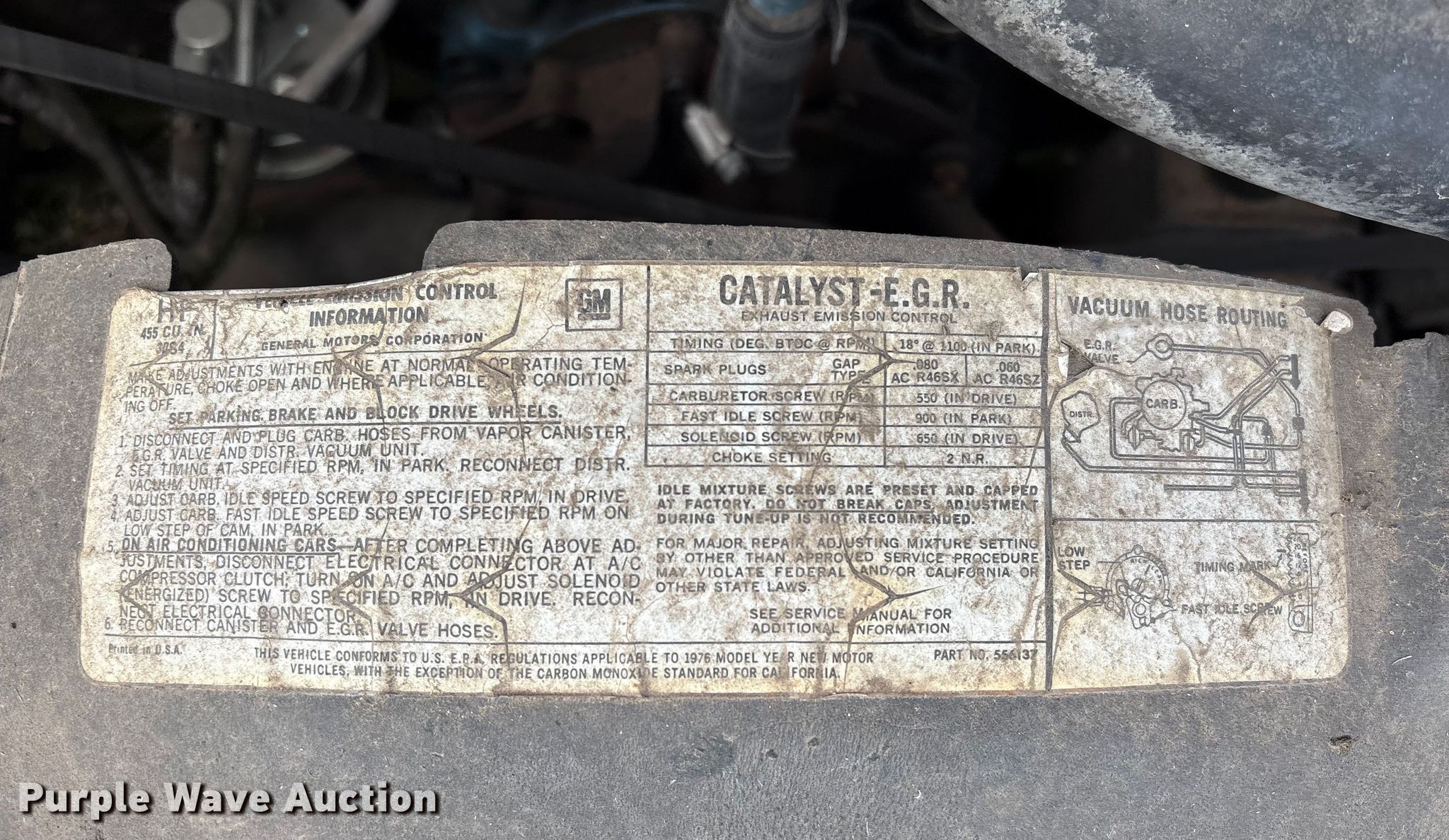 1976 Oldsmobile Ninety Eight Regency. Miles: 67,898 on odometer, VIN: 3X37T6M406685. Engine Displacement: 455 C.I.D., Cylinders: 8, Fuel type: Gas. Transmission Automatic. Interior AC, Heat, Power windows, Power locks, Cruise control, Powered sunroof. Tires Size: 225/75R15. Notes Jump start required during on-site data collection. Montana title. Seller is a Texas licensed motor vehicle dealer. The buyer may be required to pay sales tax and/or registration fees to the dealer prior to taking possession. Buyers may be required to provide identification to the licensed dealer to comply with state laws. Title will be assigned and distributed by the dealer. Please contact the seller for distribution questions. Chiefs Pursuit Surplus. Hempstead, TX 77445