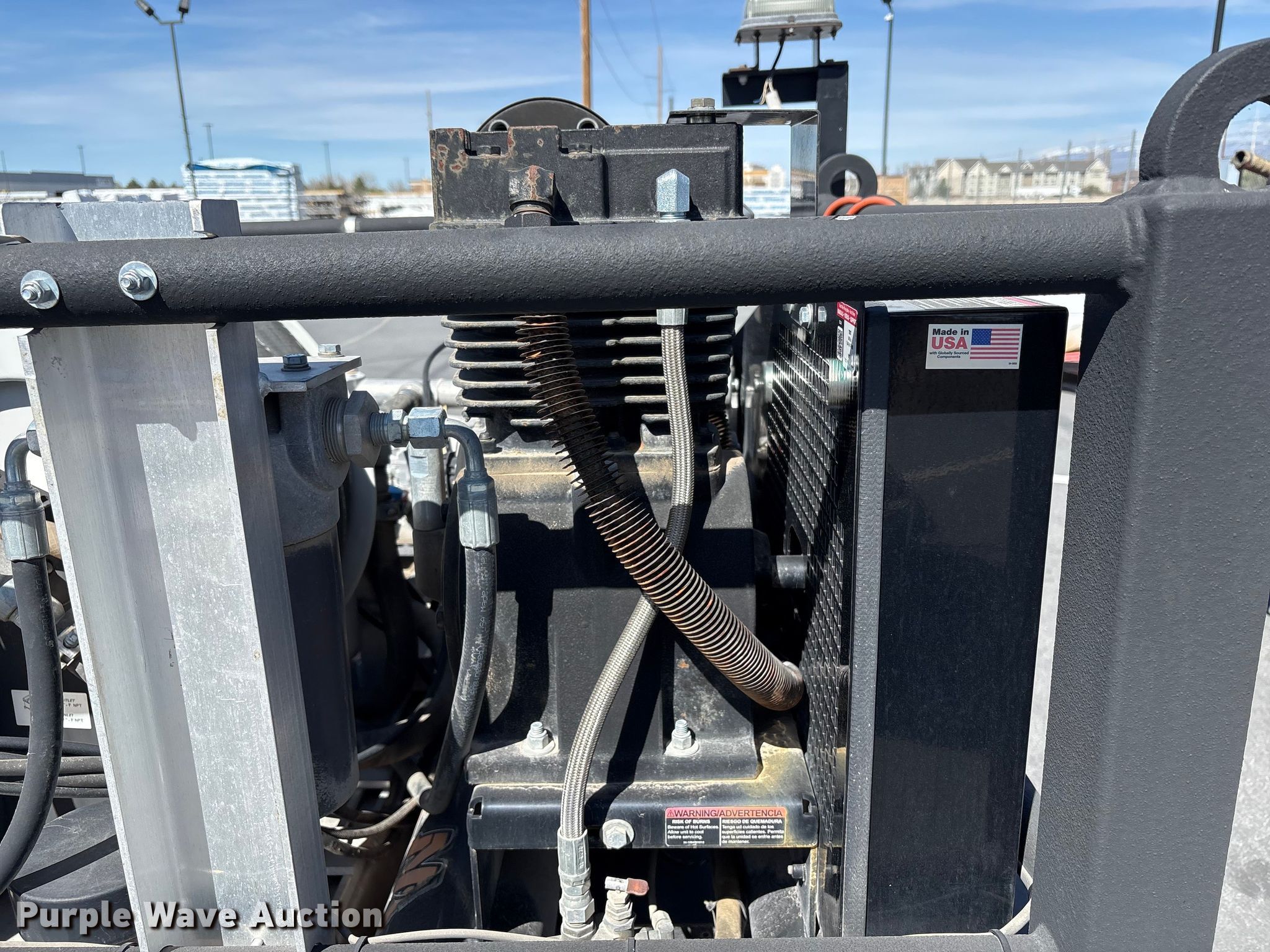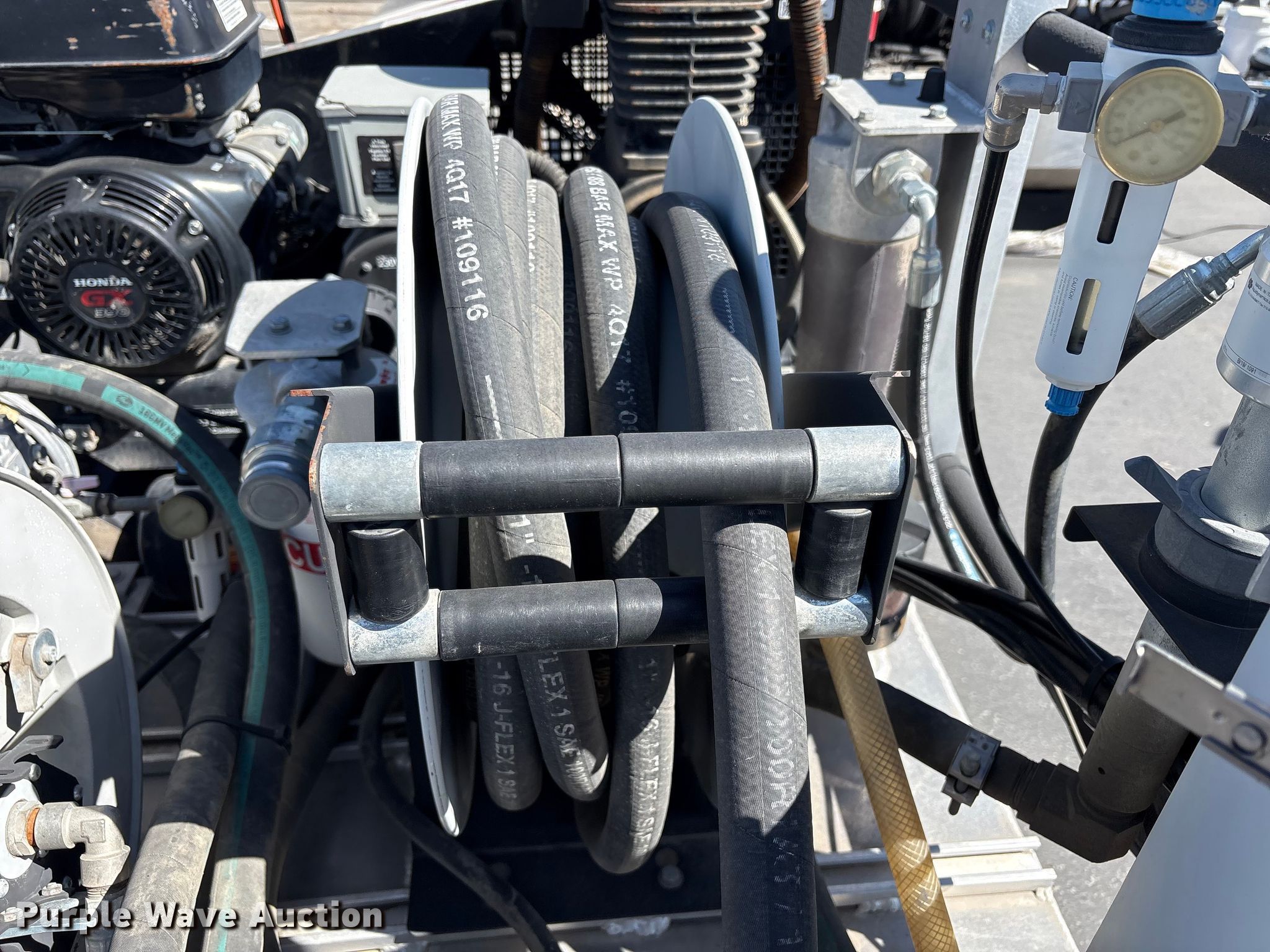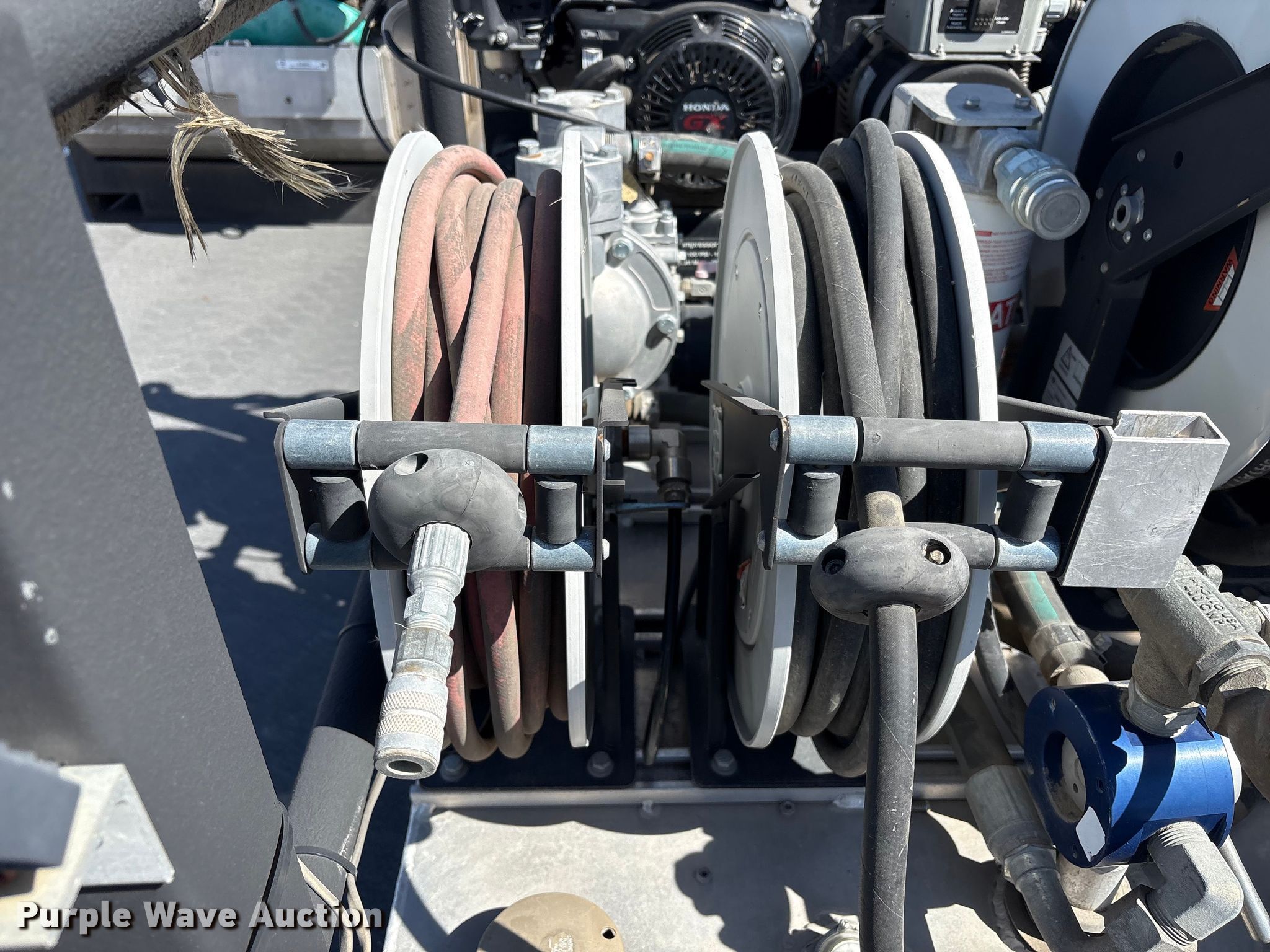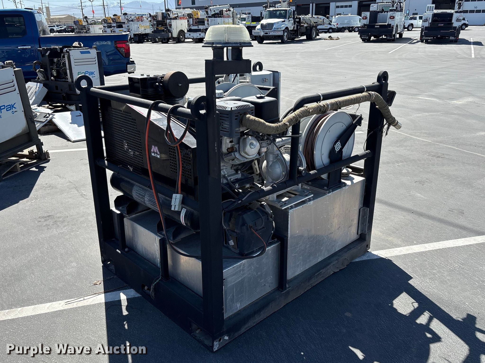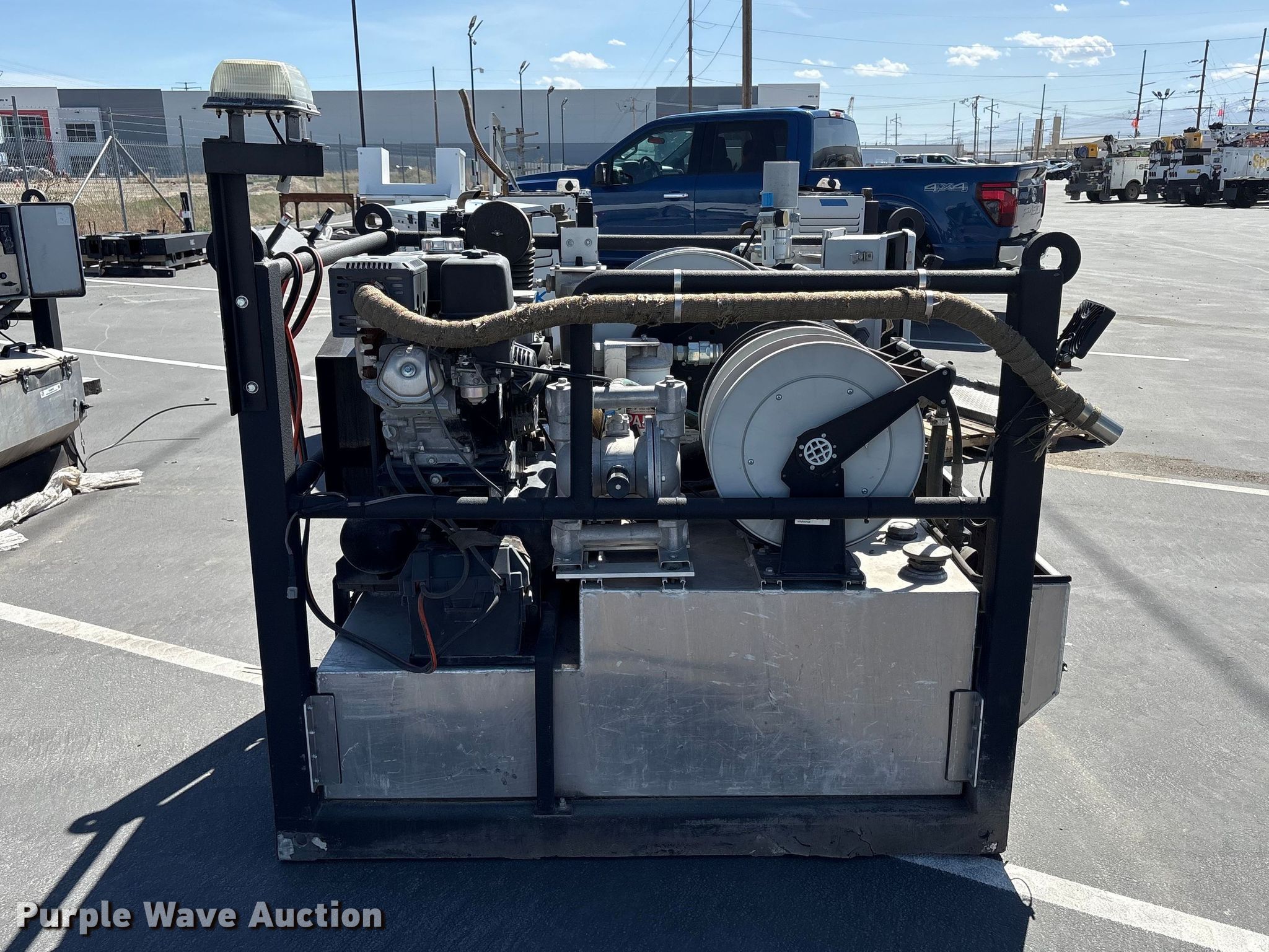 Fuel and lube skid. Dimensions. Overall Length: 5', Width: 4', Height: 5' 2". Engine Honda GX. Features Air compressor/generator, GPM: 16.3, Max watts: 4,000. Notes Dead battery. Heritage Industries. Salt Lake City, UT 84104