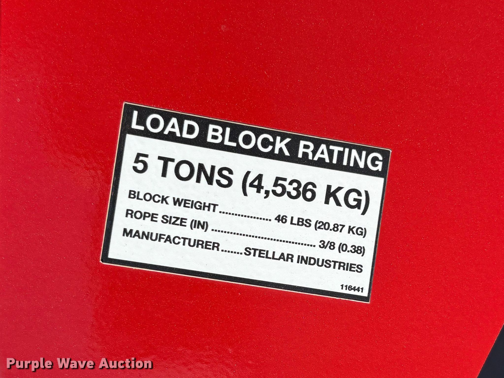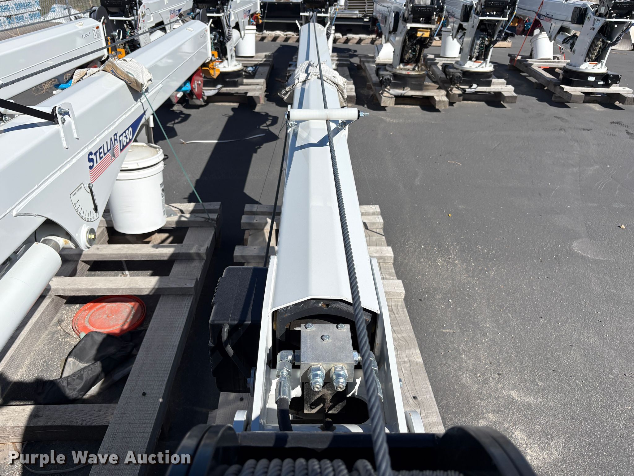 2024 Stellar 7630 crane. Serial: DIK24D1663. Features Boom Telescopic, Maximum boom length: 30' Sections: 3, Maximum lift capacity: 7,500 lbs, Maximum lift height: 31', Boom controls Ground, Crane block Sheaves: 1, Capacity: 5 tons, Lift chart. Notes Unused. Heritage Industries. Salt Lake City, UT 84104