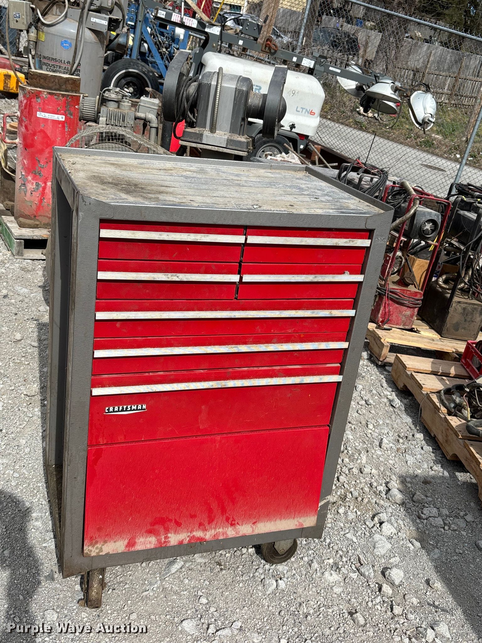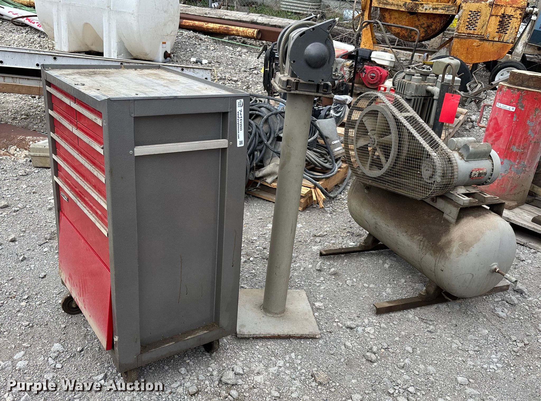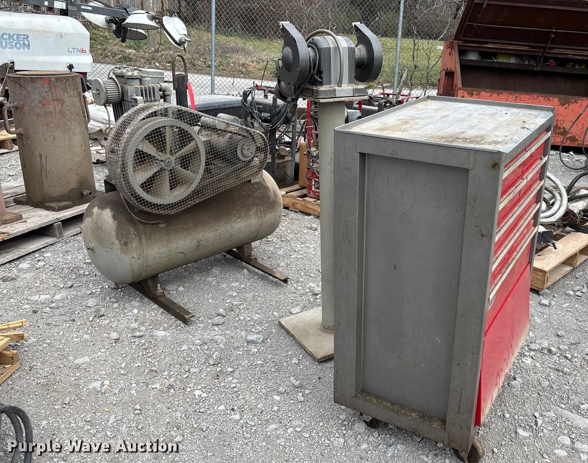Purple Wave is selling a used Tools in Kansas. This item is a Tools with the following: Air compressor, Non-operational unit, Craftsman toolbox, Craftsman bench grinder, Mobile pallet jack, Capacity: 5,500 lbs