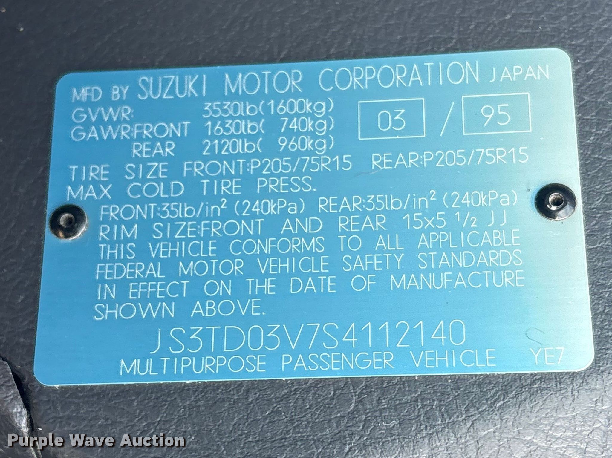 - VIN: JS3TD03V7S4112140