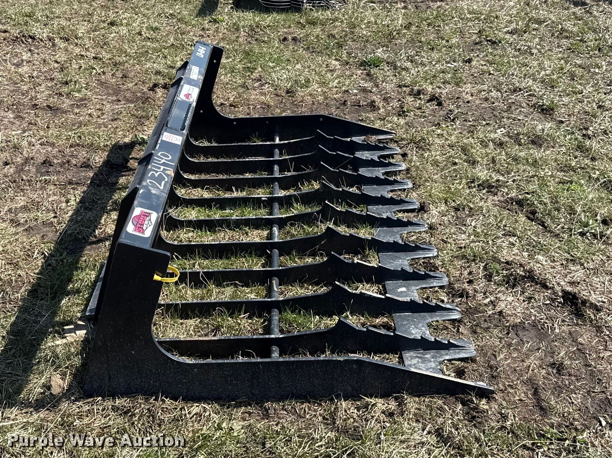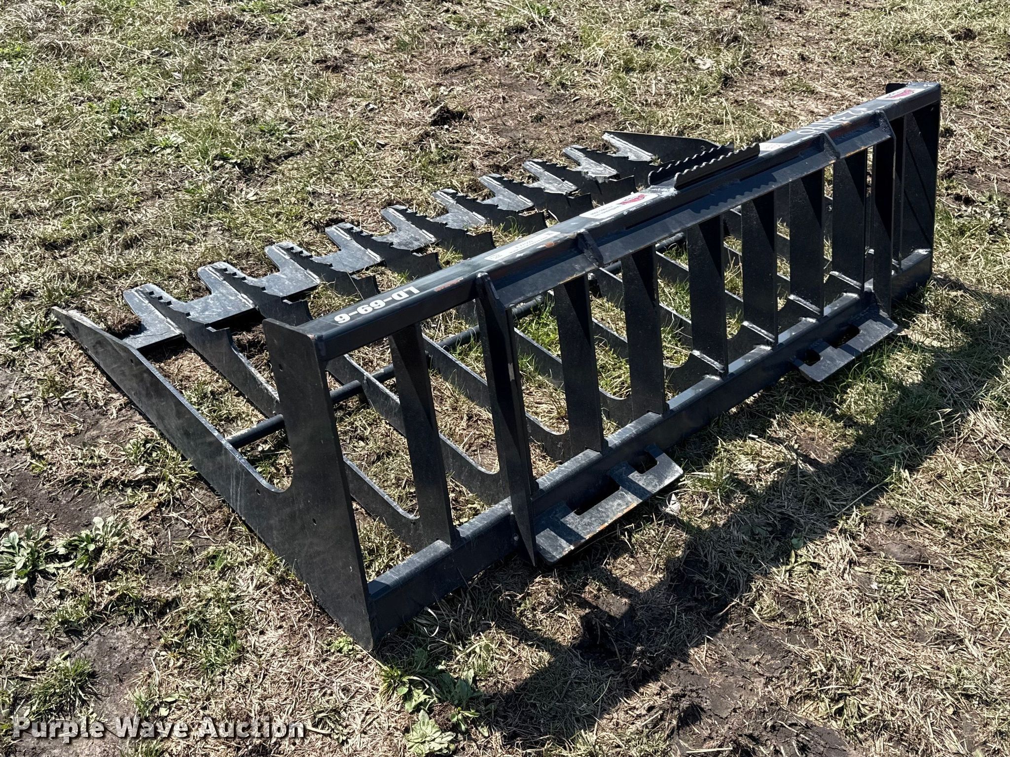 Stout LD-69-6 skid steer rock bucket for sale in Yates Center, Kansas. Item EV7559 will sell on April 22nd, 2026.
