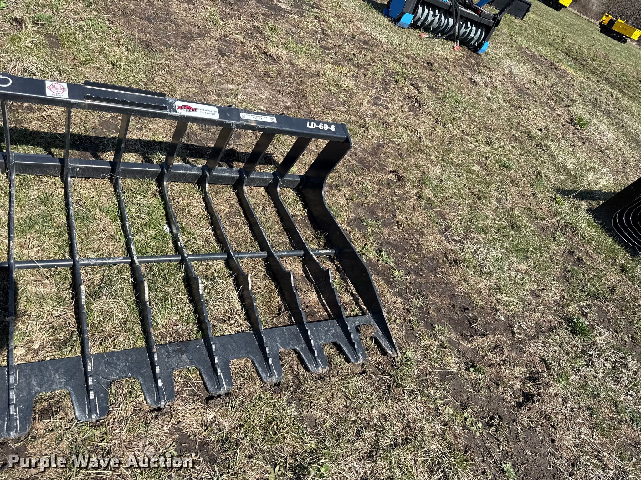 Stout LD-69-6 skid steer rock bucket. Width: 69", Unused. YC Equipment and Truck Sales LLC. Yates Center, KS 66783