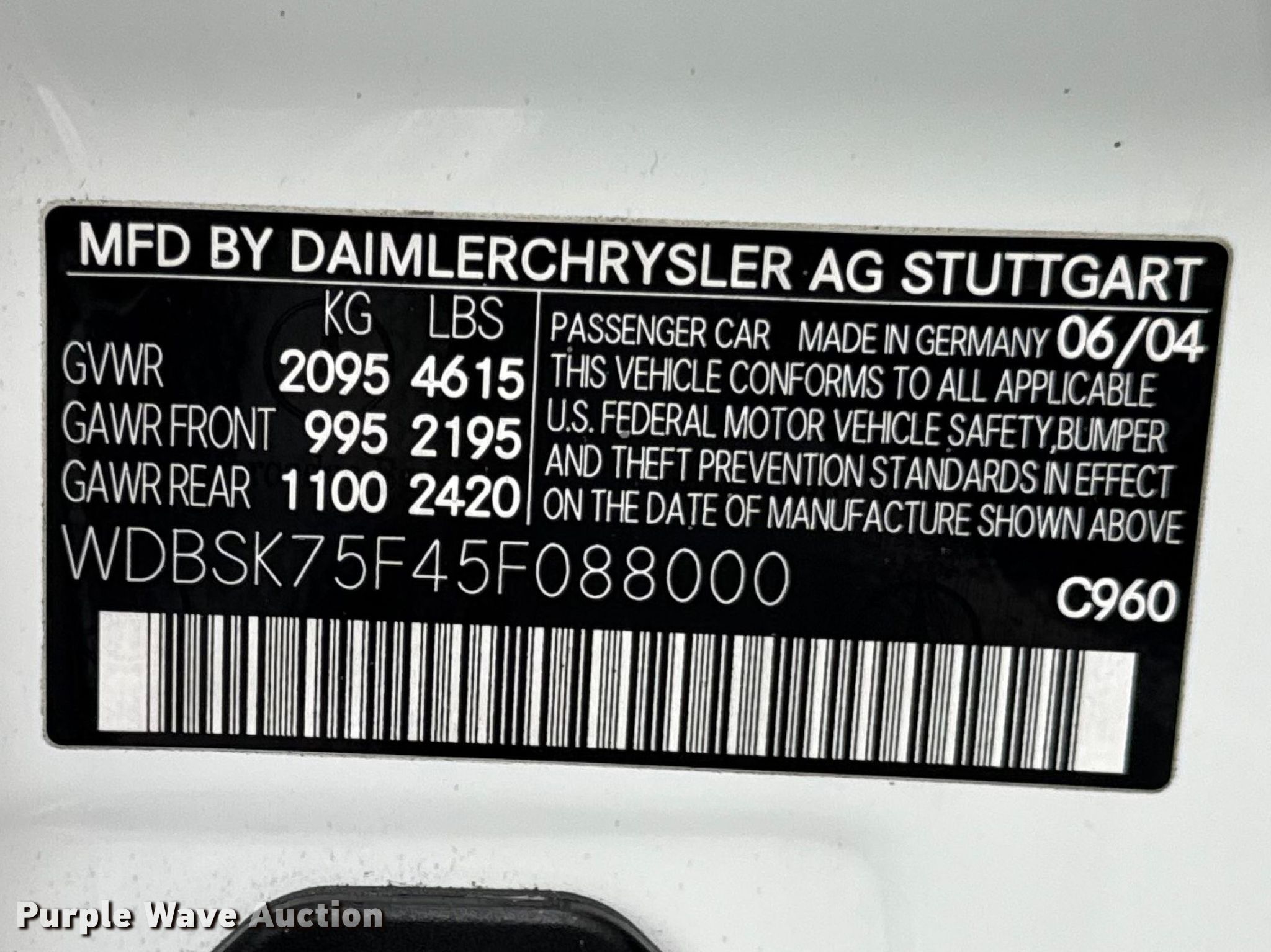 - VIN: WDBSK75F45F088000