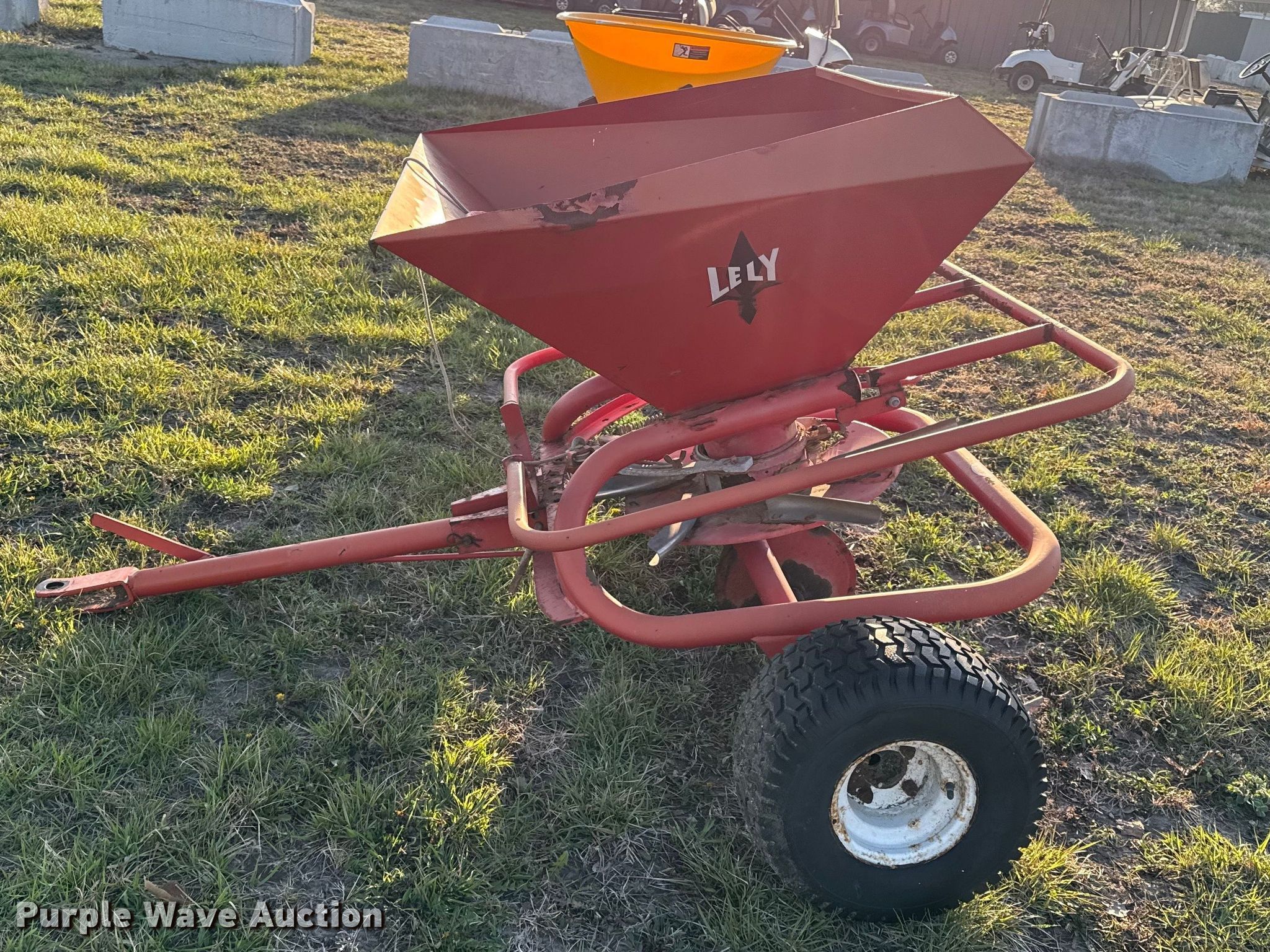 1995 Lely spreader. Serial: 10112-0866. Dimensions Overall Length: 3', Width: 51". Tires Size: 18x6.50-8. Irrigation & Turf. Gas, KS 66749