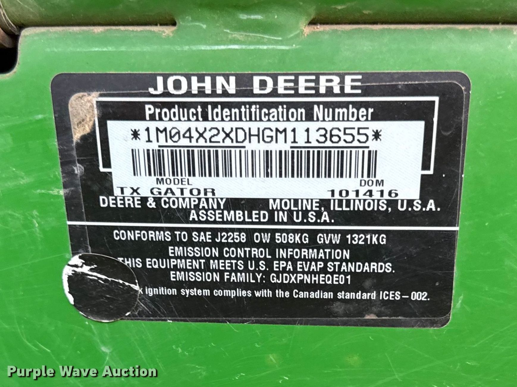 Purple Wave is selling a used Utility Vehicle in Kansas. This item is a 2016 John Deere Gator TX 4x2 utility vehicle with the following: Hours: 2,927 on meter, Serial: 1M04X2XDHGM113655
