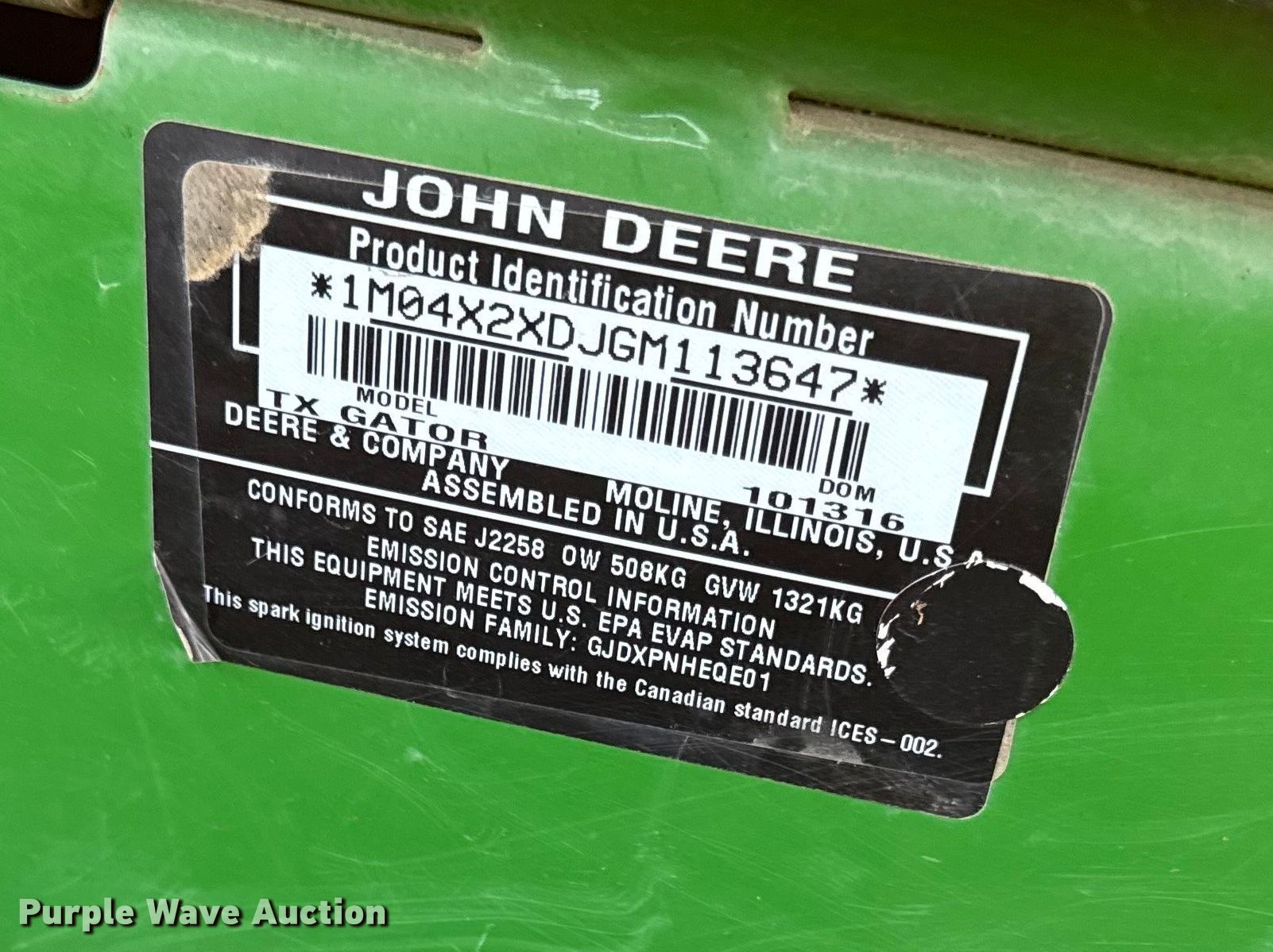 Purple Wave is selling a used Utility Vehicle in Kansas. This item is a 2016 John Deere Gator TX 4x2 utility vehicle with the following: Hours: 3,720 on meter, Serial: 1M04X2XDJGM113647