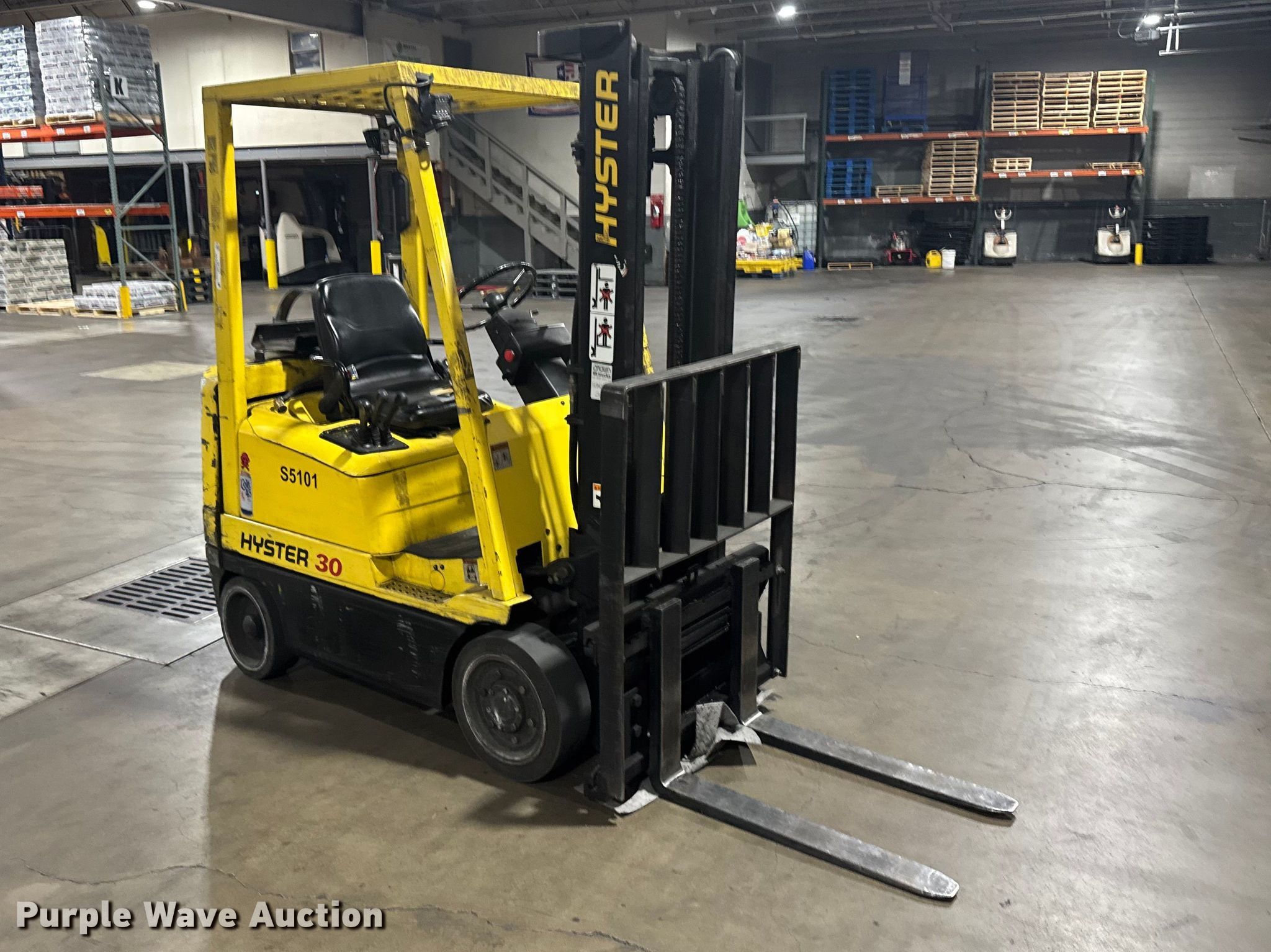 Purple Wave is selling a used Warehouse Forklift in Kansas. This item is a Hyster 30 forklift with the following: Hours: Unknown, Serial: C010H06258X