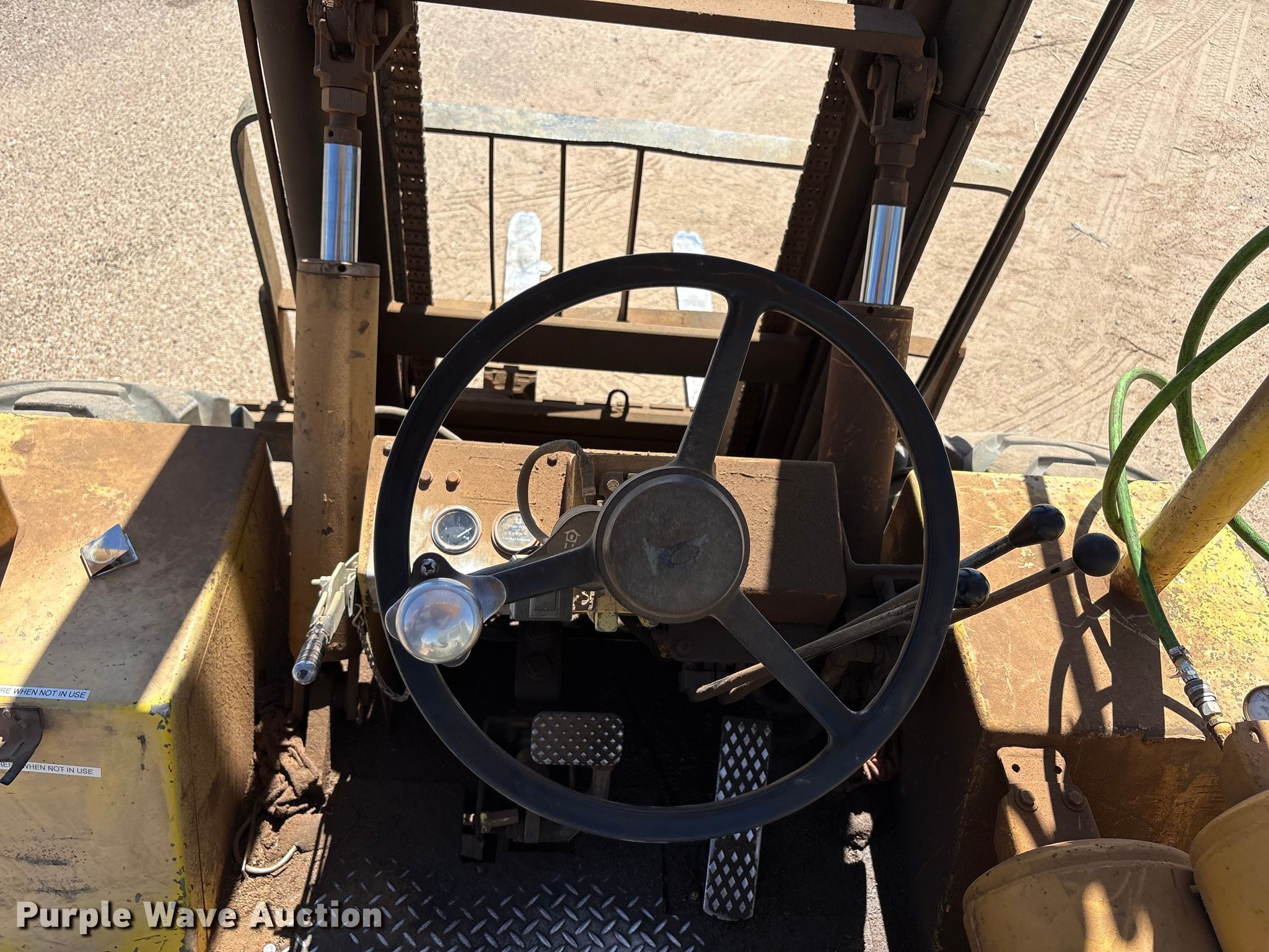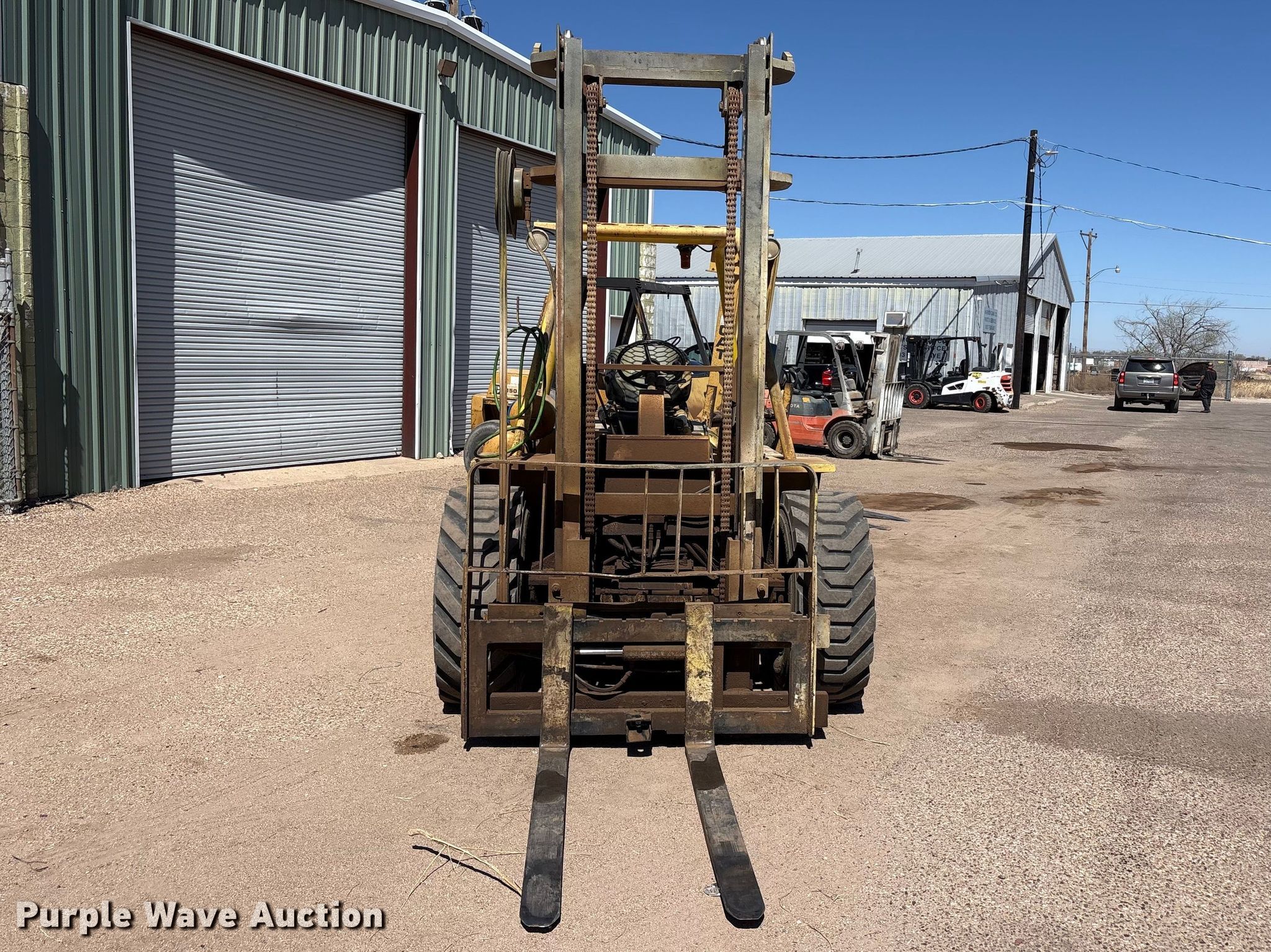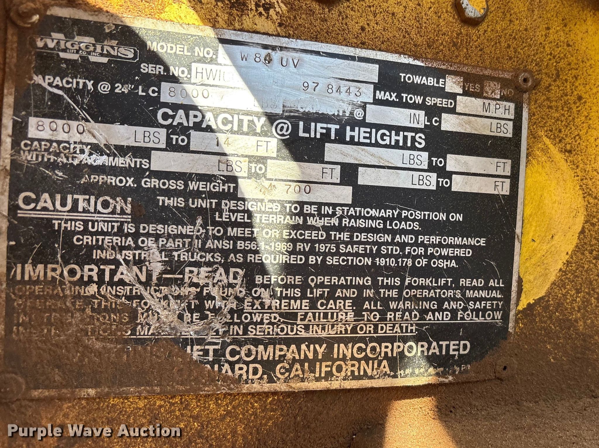 Purple Wave is selling a used Strt. Mast Rough Terr. Forklift in Texas. This item is a 1997 Wiggins W84 VU forklift with the following: Hours: 3,650 on meter, Serial: 97 8443