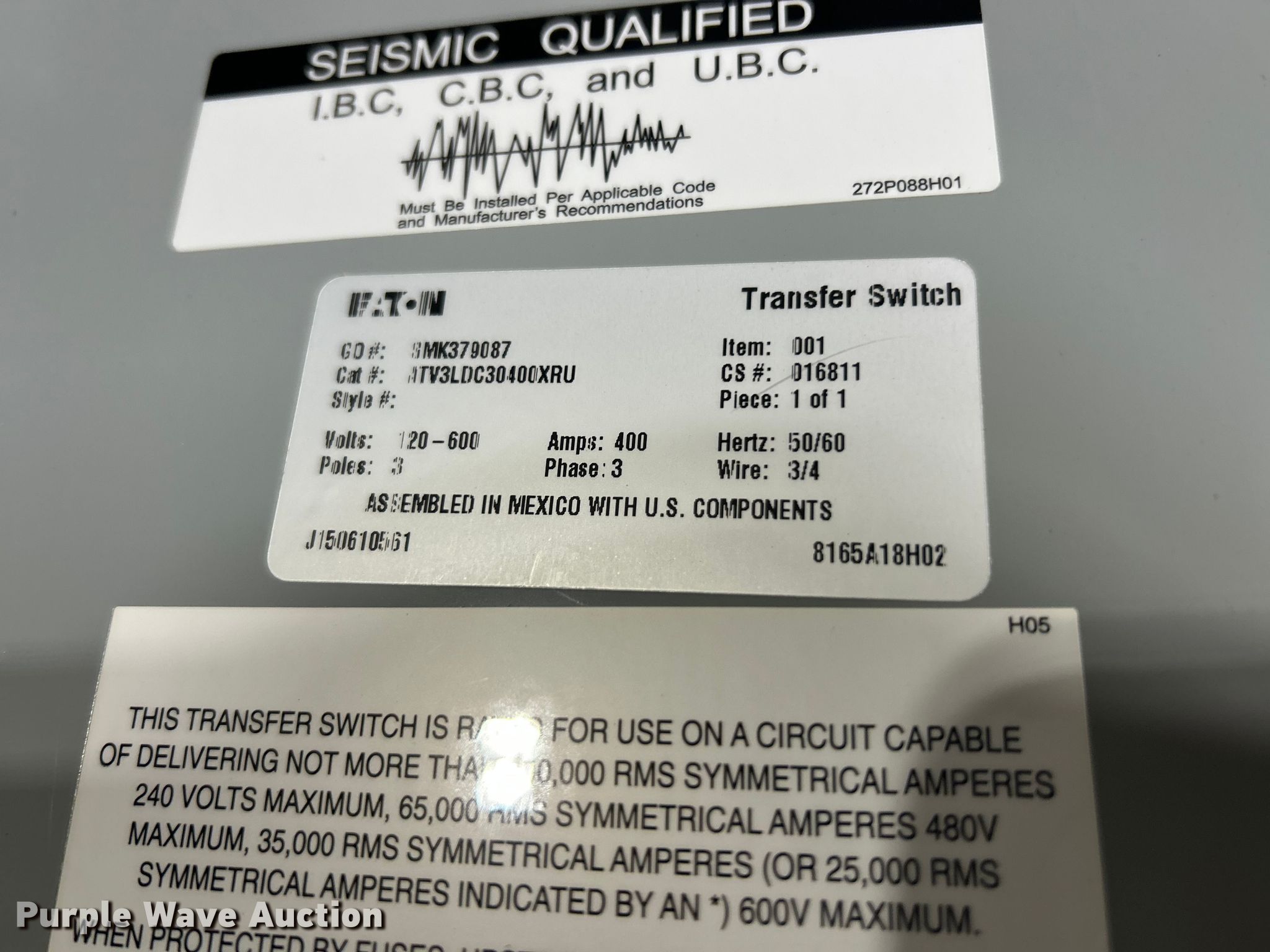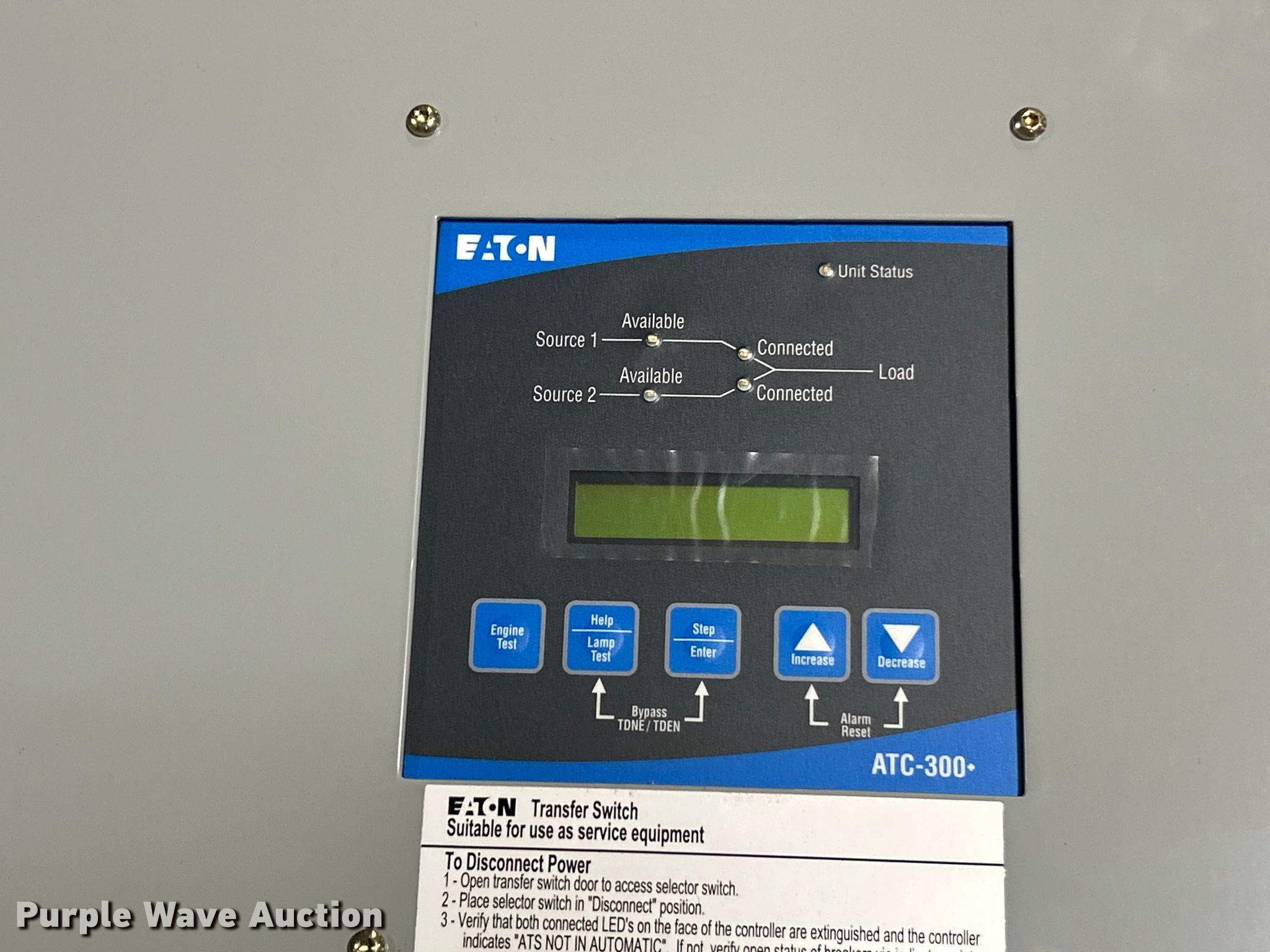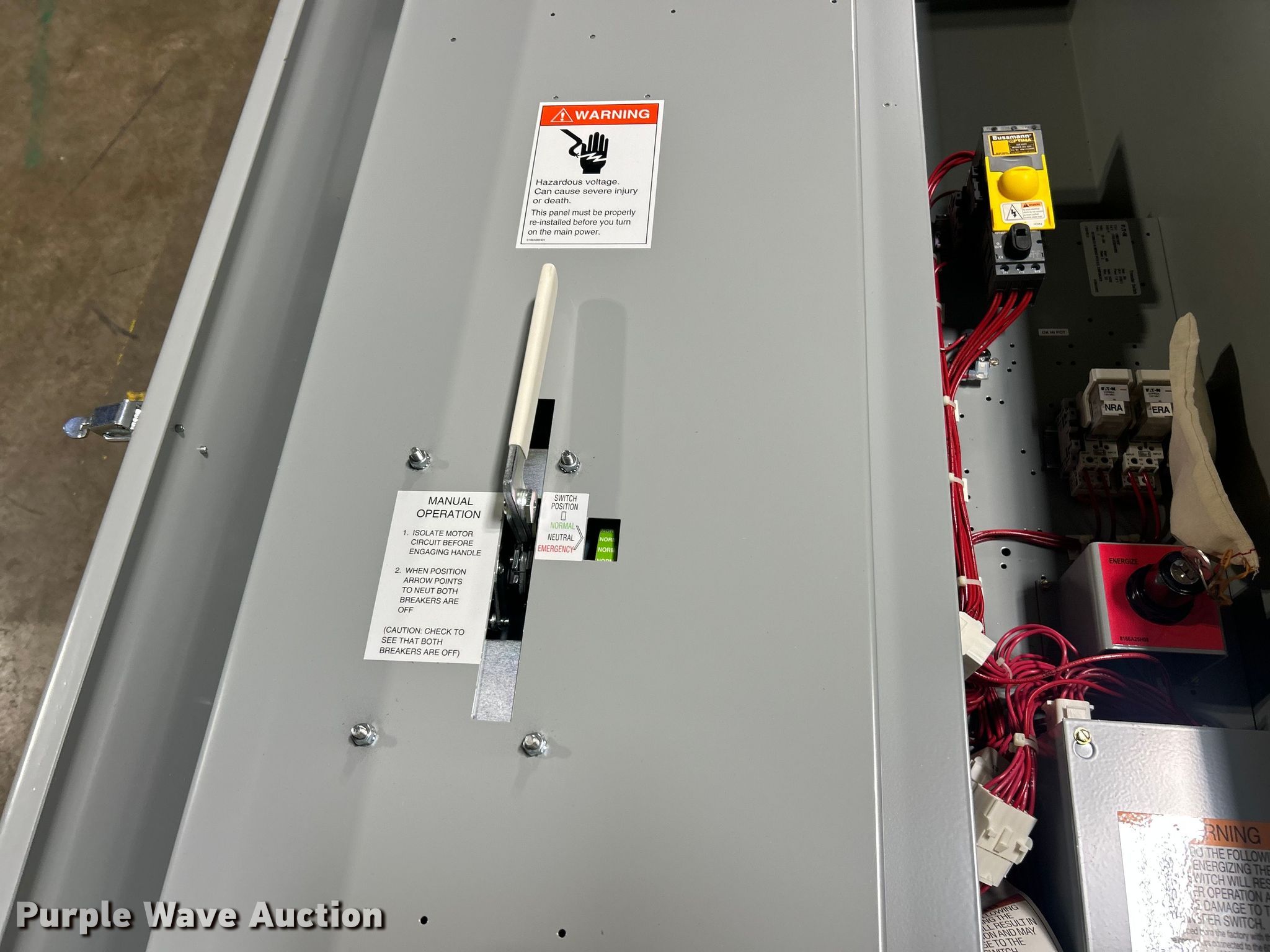 Generac Corp 91A03738-S generator. Hours: 96 on meter, Serial: 2001128. Engine Generac, Displacement: 7.4L, Cylinders: 8, Fuel type: LPG. Features Generator Generac Corp, kVA: 125, kW: 100, Phase: Three, Eaton transfer switch Phases: three, Volts: 100/600. Bridgeton, MO 63044