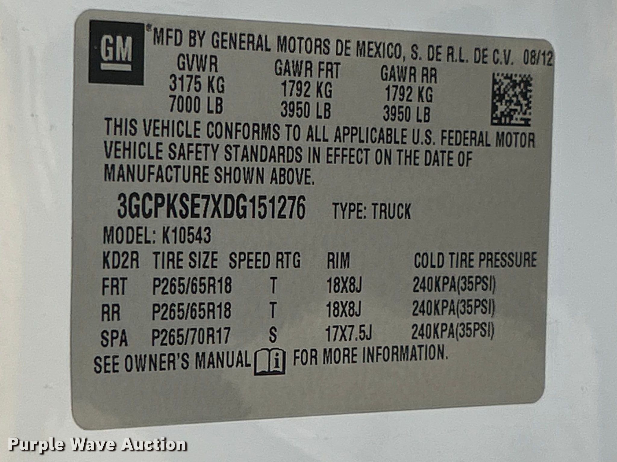 - VIN: 3GCPKSE7XDG151276