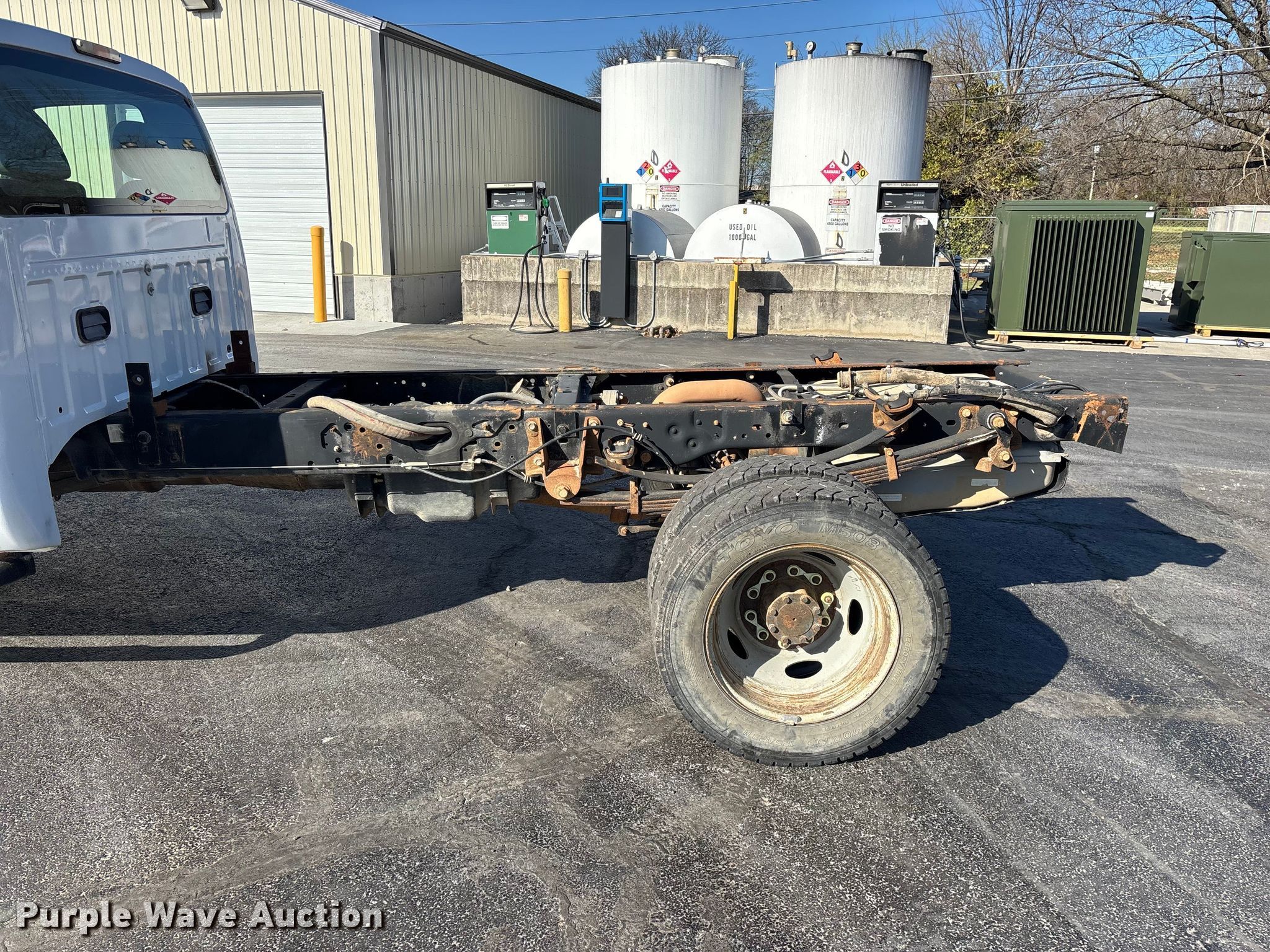 2011 Ford F550 Super Duty truck cab and chassis. Miles: 240,120 on odometer, VIN: 1FDUF5HT9BEC75394. Engine Displacement: 6.7L, Cylinders: 8, Fuel type: Diesel. Transmission Automatic. Chassis Four wheel drive, Axles: Single, Suspension: Spring, Brakes: Hydraulic, PTO, Truck chassis: 11', GVWR: 19,500 lbs, Wheelbase: 165". Interior AC, Heat, Auxiliary controls, Brake controller. Features Fuel tank: Single. Tires Size: 225/70R19.5. Notes Holes in roof, Non-operational AC, Frame weld repairs, Taillights missing. Missouri title. Title distribution may be delayed up to 14 days from verification of funds. Southwest Electric Cooperative, Inc. Bolivar, MO 65613