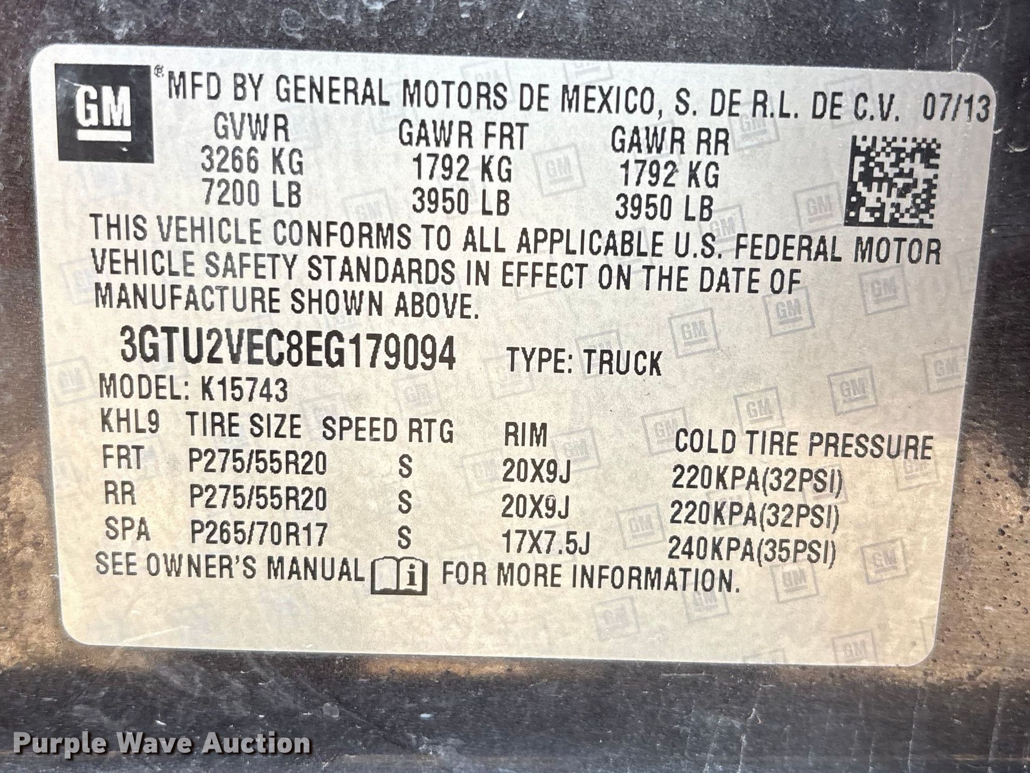 - VIN: 3GTU2VEC8EG179094