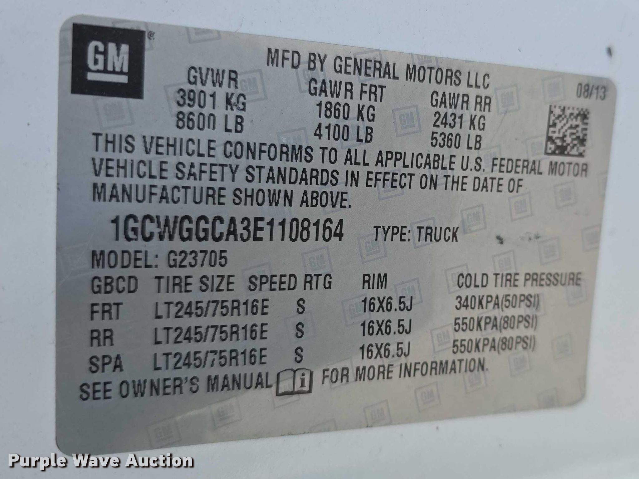 - VIN: 1GCWGGCA3E1108164