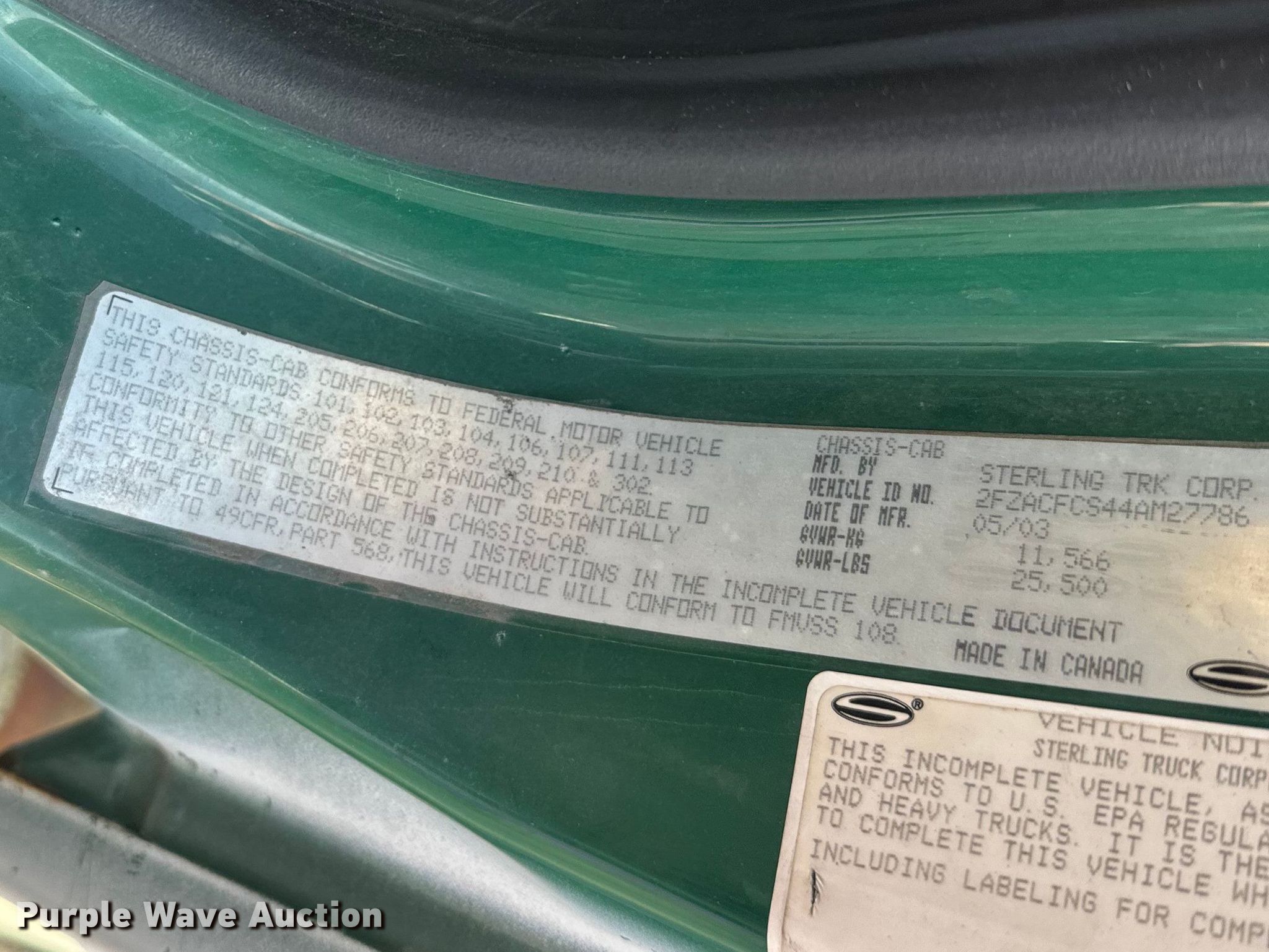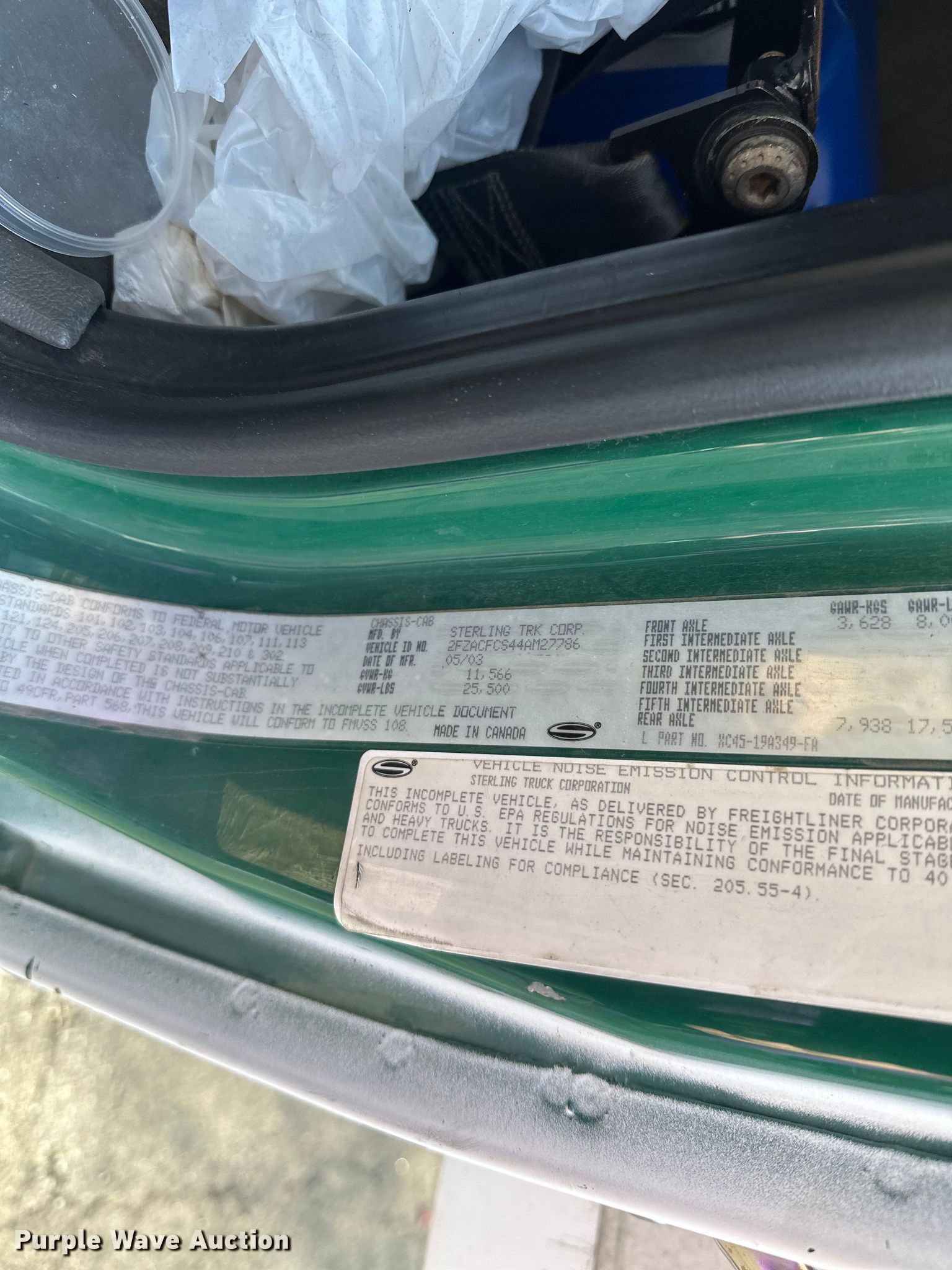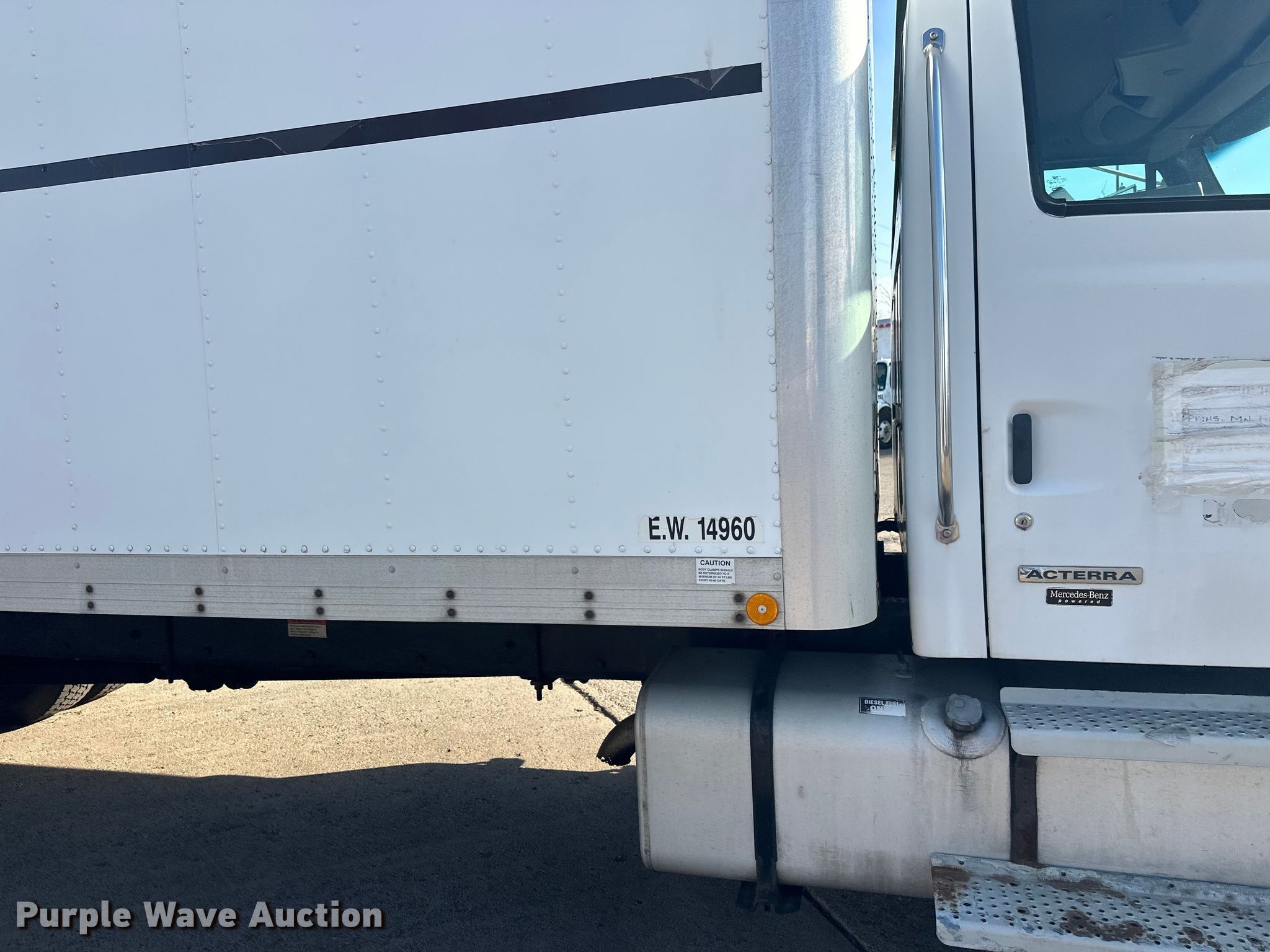 2004 Sterling Acterra box truck. Miles: 520,624 on odometer, Hours: 14,542 on meter, VIN: 2FZACFCS44AM27786. Engine Mercedes-Benz MBE-900, Displacement: 6.4L, Cylinders: 6, Fuel type: Diesel. Transmission Automatic. Chassis Axles: Single, Suspension: Spring, Brakes: Air, GVWR: 25,500 lbs. Interior AC, Heat, Heated mirrors, Power windows, Power locks, Cruise control. Features Bed Box bed, Length: 24' 6", Width: 8' 6", Height: 103", E-track rail system, Floor: Wood, End gate lift. Tires Size: 11R22.5. Notes Contents not included. Minnesota title. Title distribution may be delayed up to 14 days from verification of funds. Roseville, MN 55113