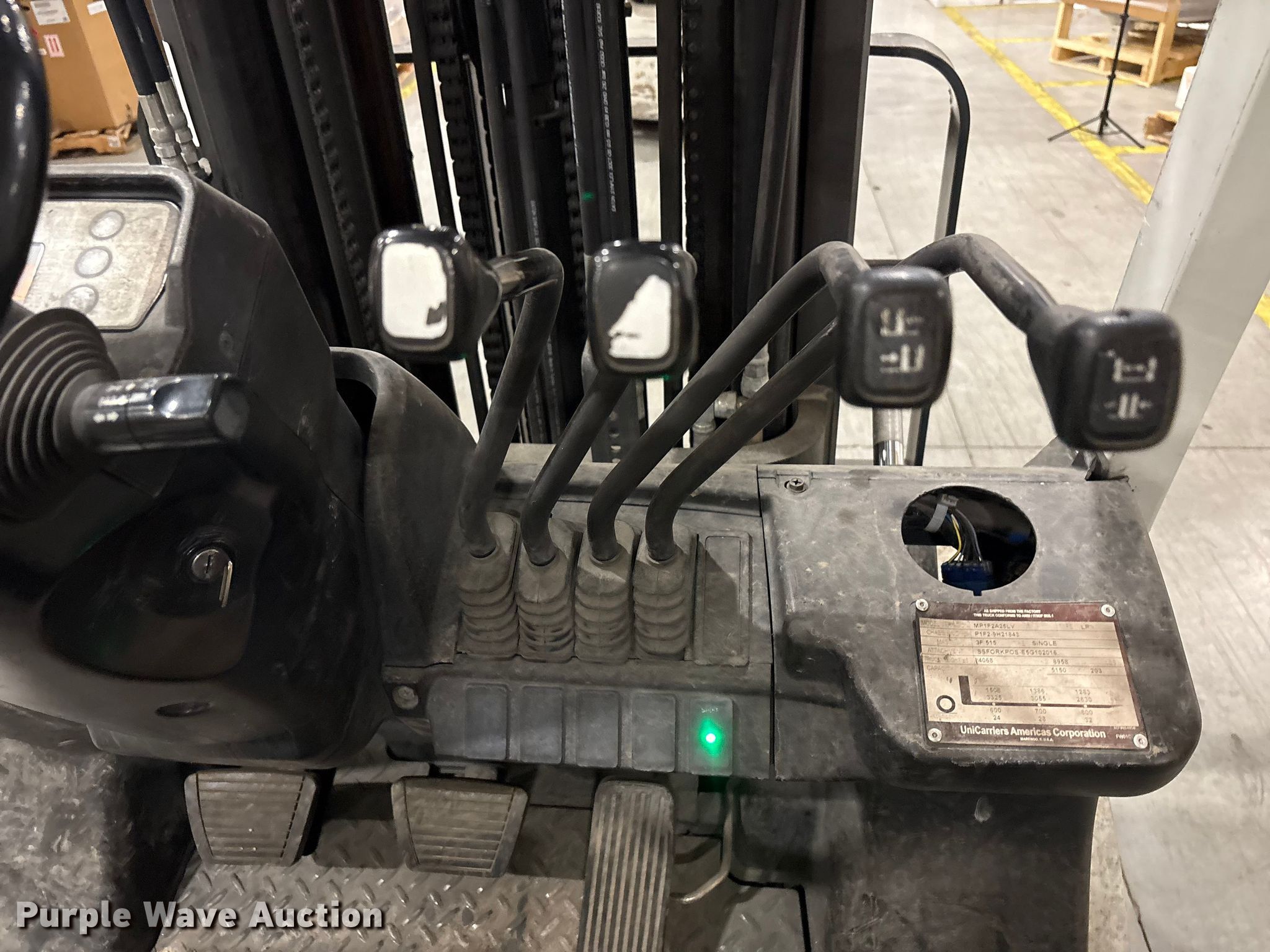 Purple Wave is selling a used Cushion Tire or Pneumatic Forklift in Indiana. This item is a 2016 UniCarriers PF50 forklift with the following: Hours: 4,049 on meter, Serial: P1F2-9H21843, Unit #: SFS3057