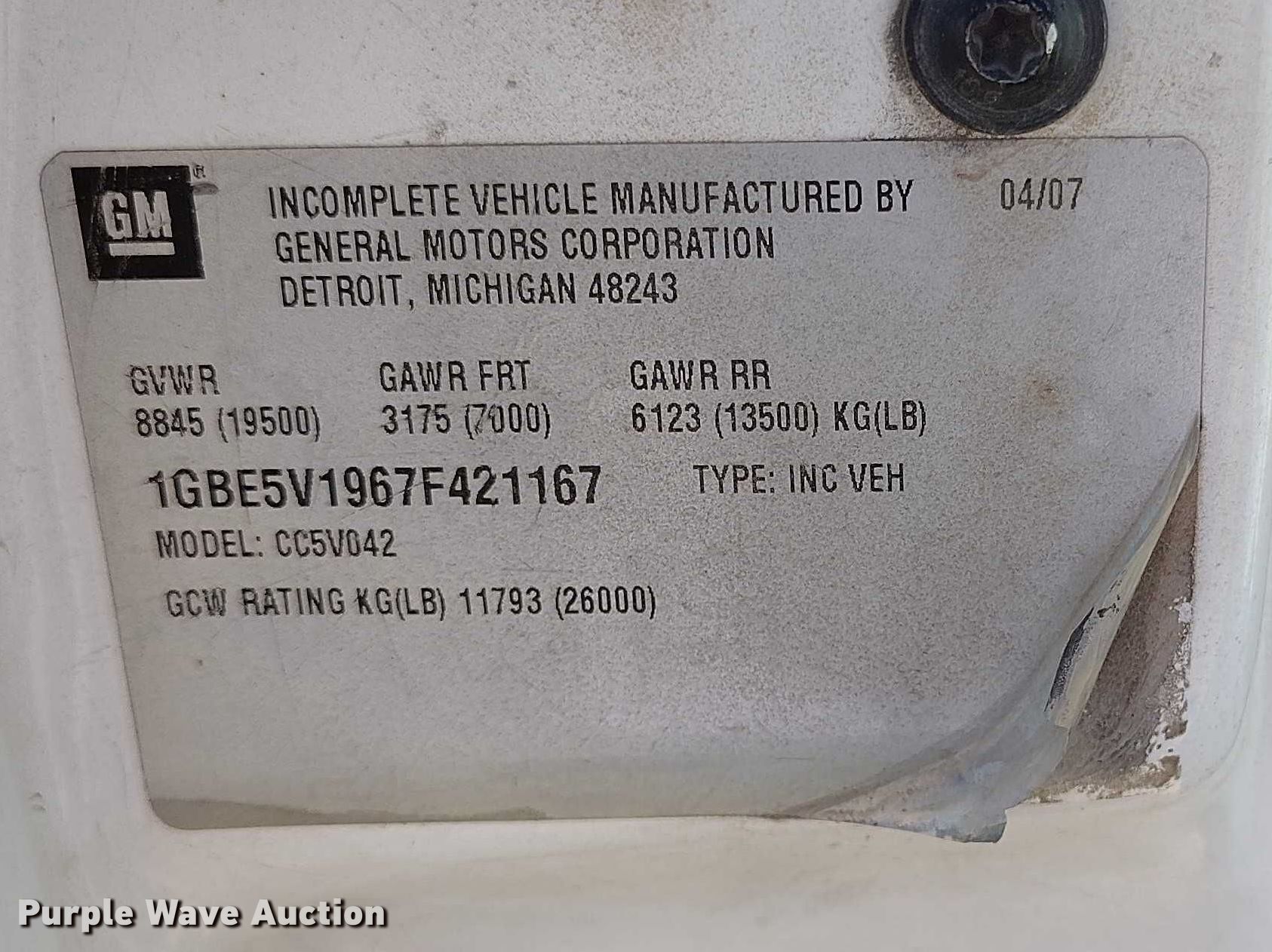 - VIN: 1GBE5V1967F421167