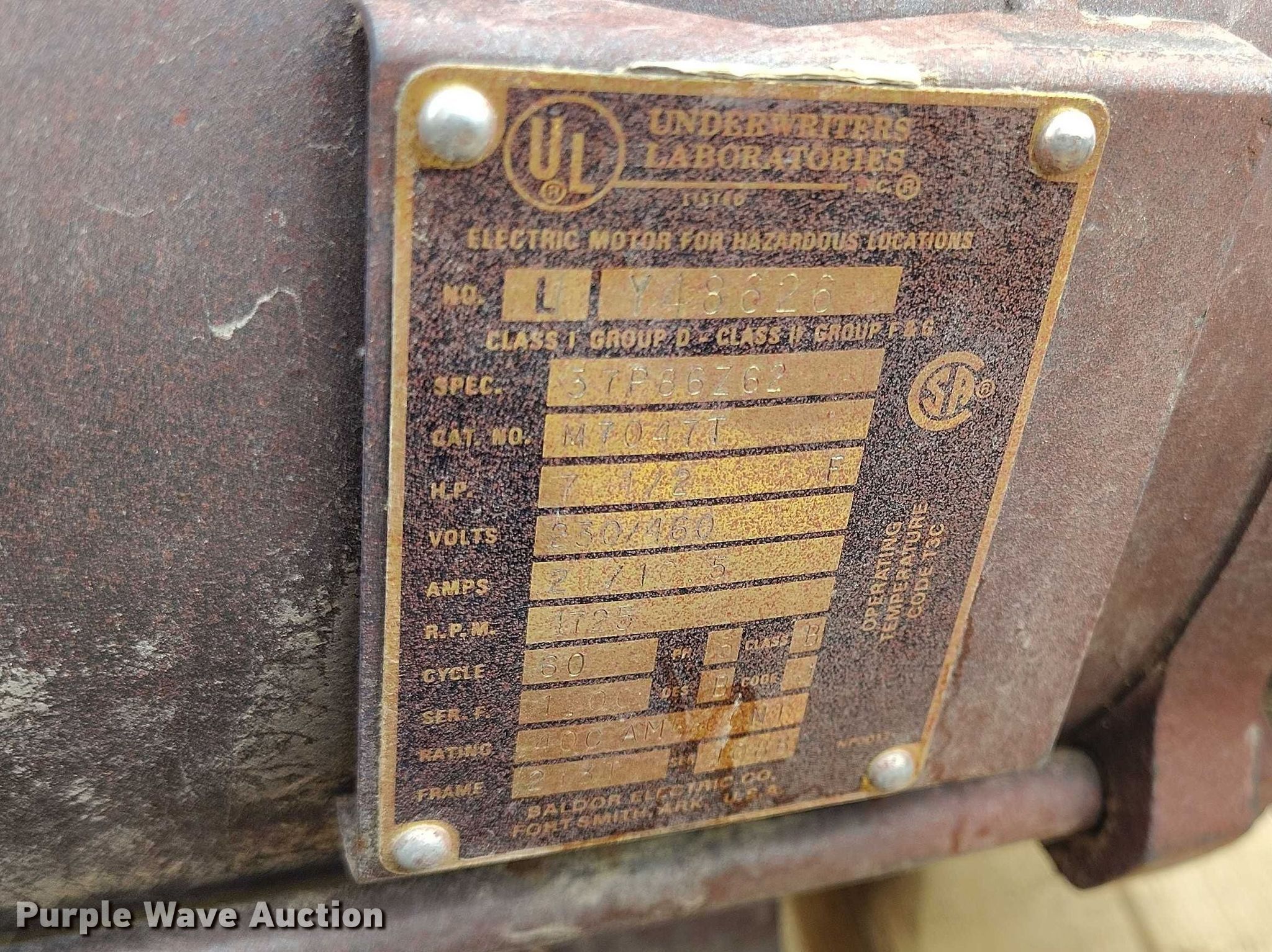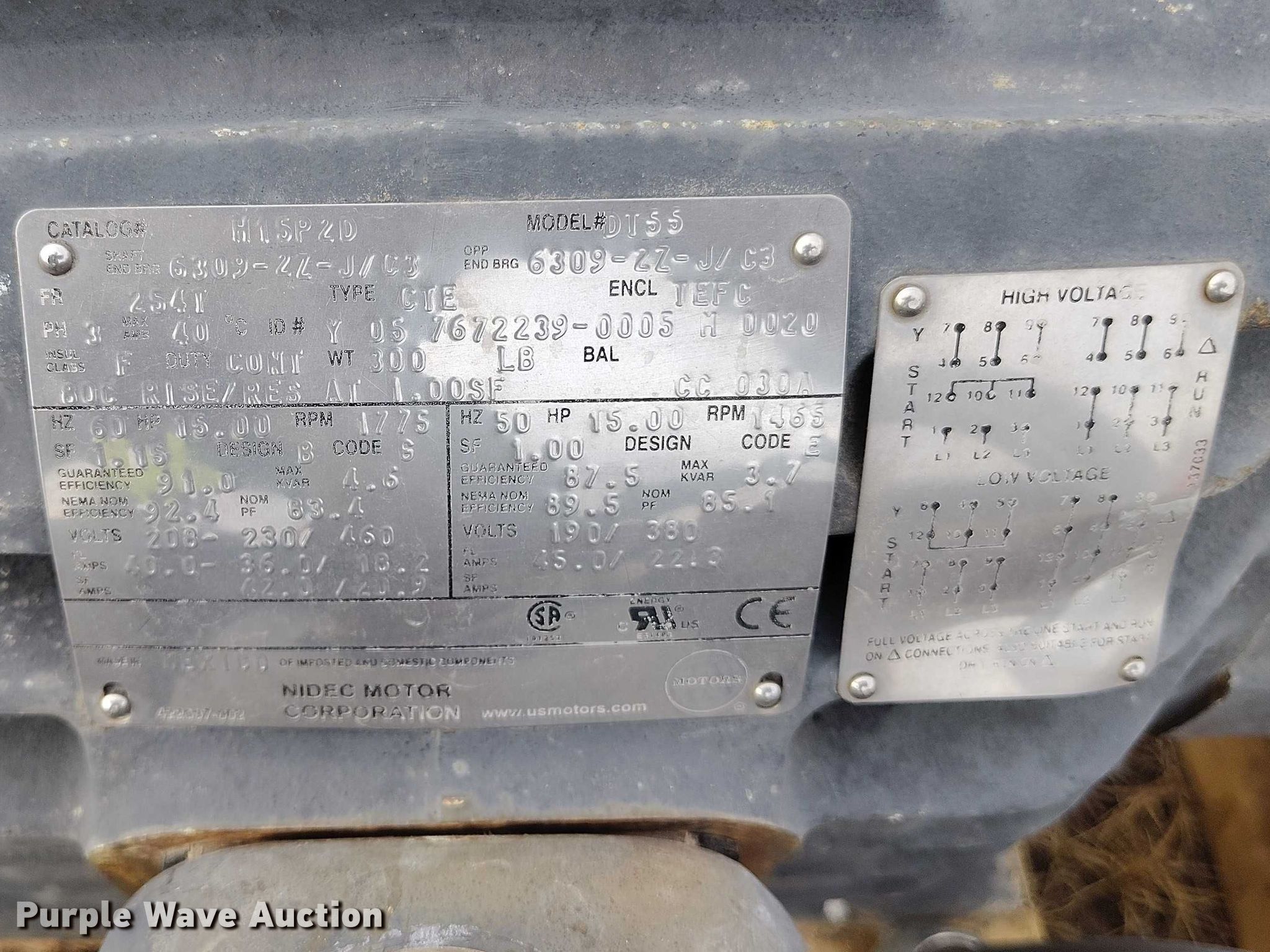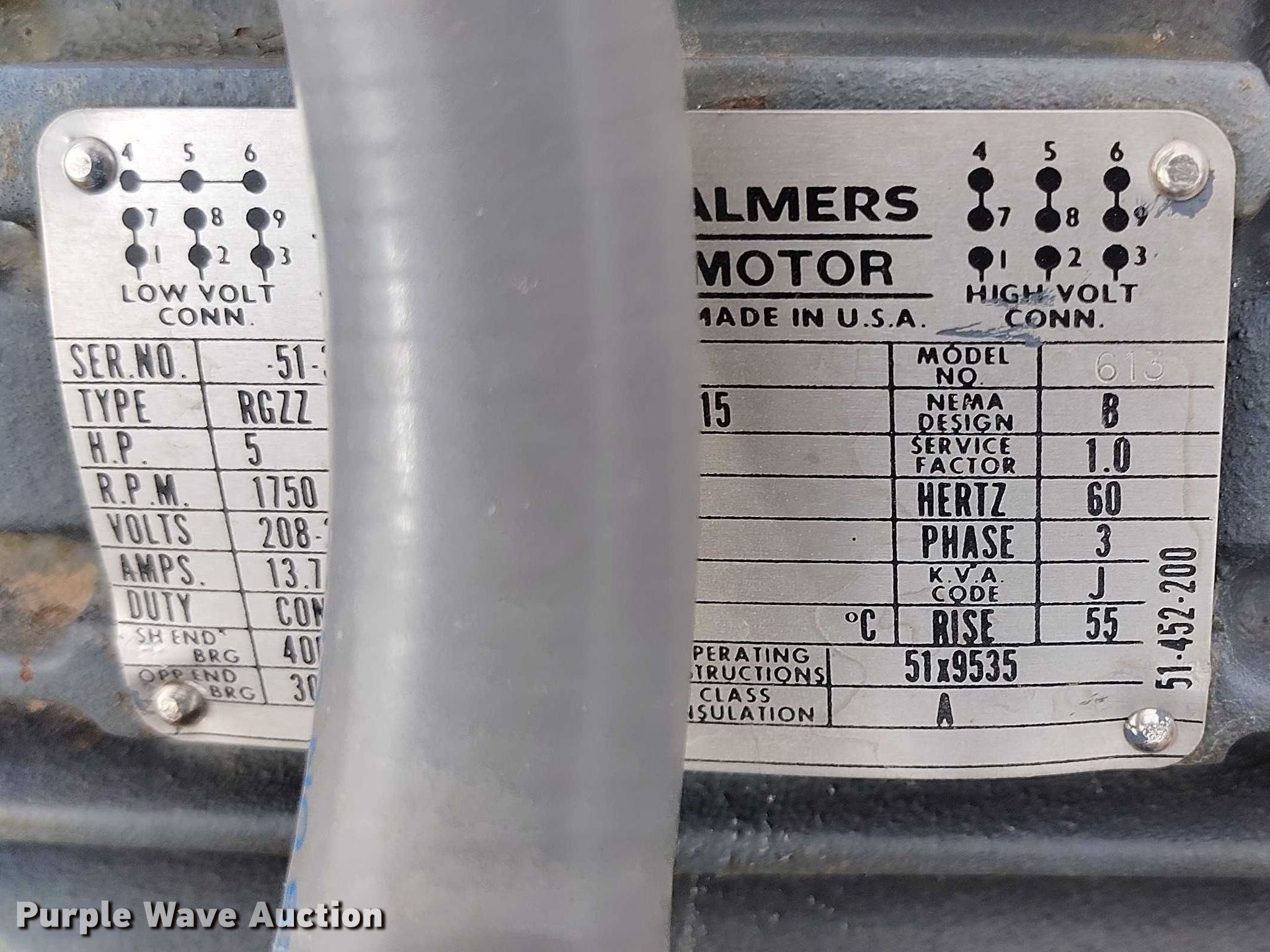 Purple Wave is selling a used Electric Motor in Wyoming. This item is a (5) electric motors with the following: (3) UL, HP: 7.5, PH: 3, Volts: 230/460, Allis Chalmers, Serial: 51328059, HP: 5, PH: 3, Volts: 220/440, Nidec, HP: 15, PH: 3, Volts: 230/460