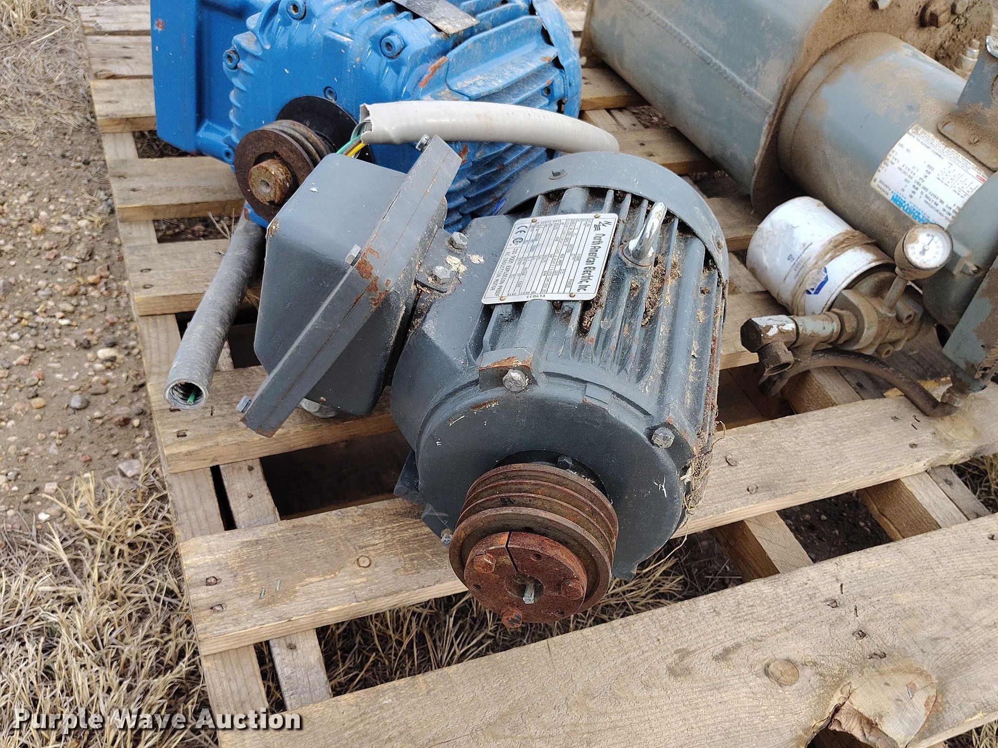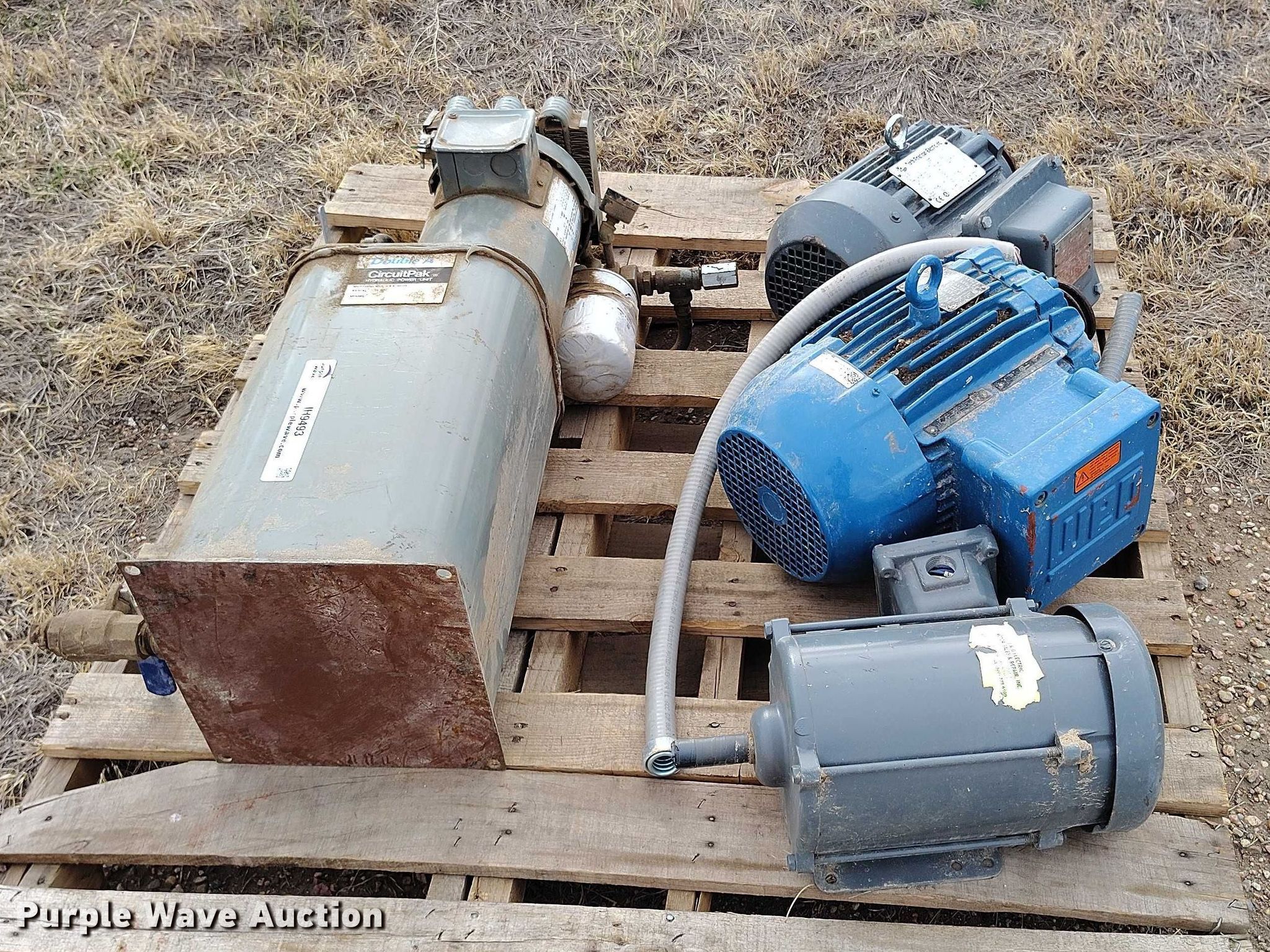 Purple Wave is selling a used Electric Motor in Wyoming. This item is a (3) electric motors with the following: North American Electric, HP:1, PH: 3, Volts: 190/380, Weg, HP: 3, PH: 3, Volts: 230/460, UL, HP: 1.5, PH: 3, Volts: 230/460, Double A CircuitPak hydraulic power unit