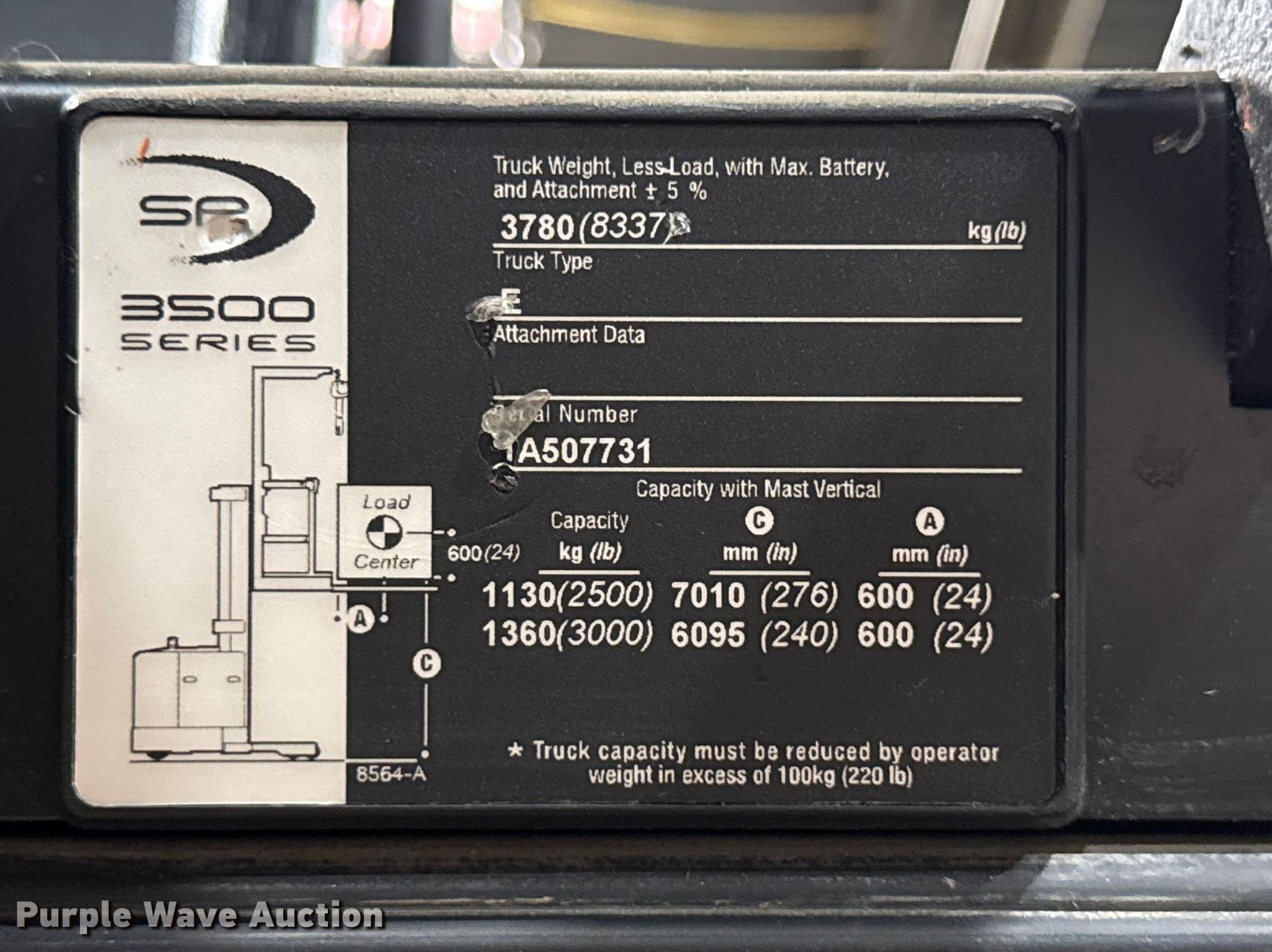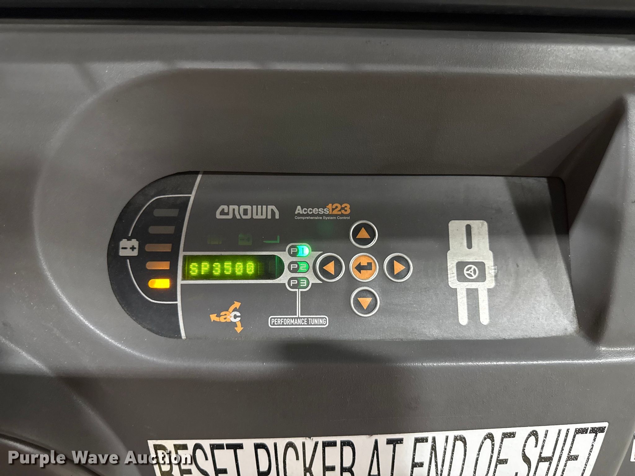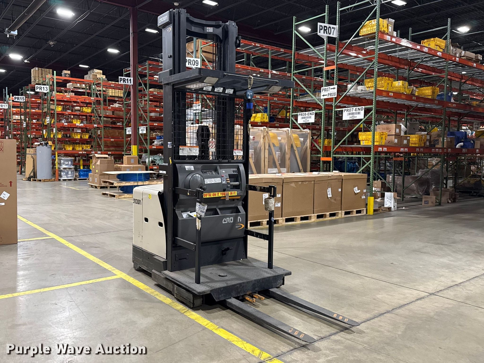 Purple Wave is selling a used Warehouse Forklift in Illinois. This item is a 2017 Crown SP3520-30 order picker with the following: Hours: 1,746 on meter, Serial: 1A507731, Unit #: SFS2902