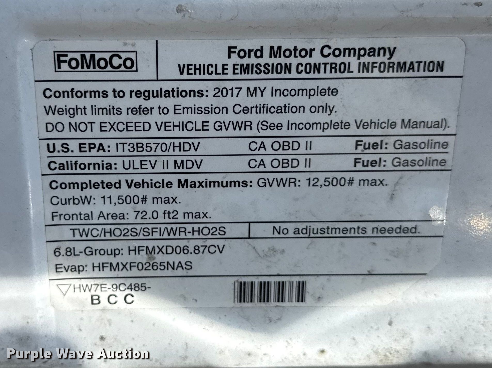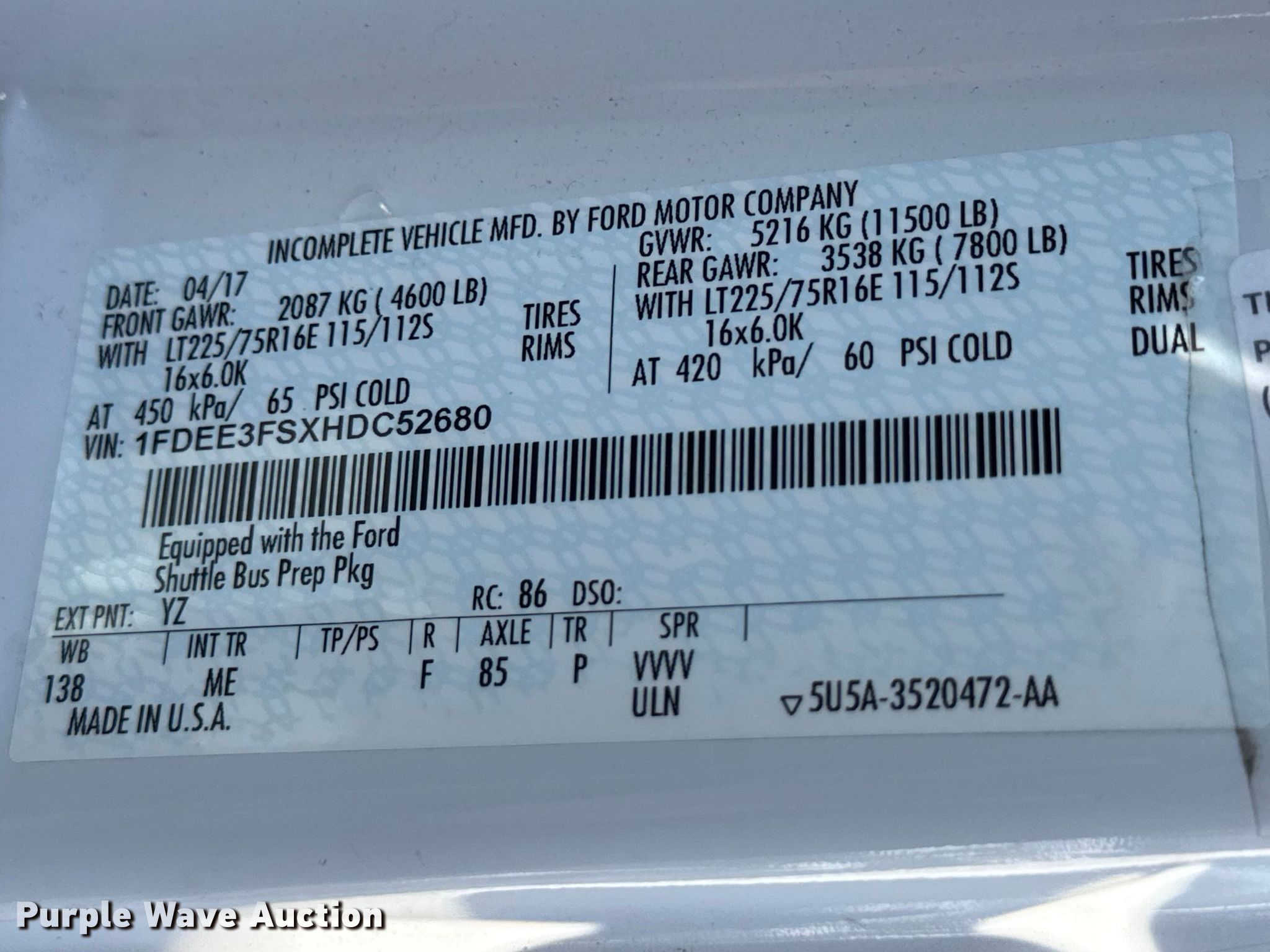 - VIN: 1FDEE3FSXHDC52680
