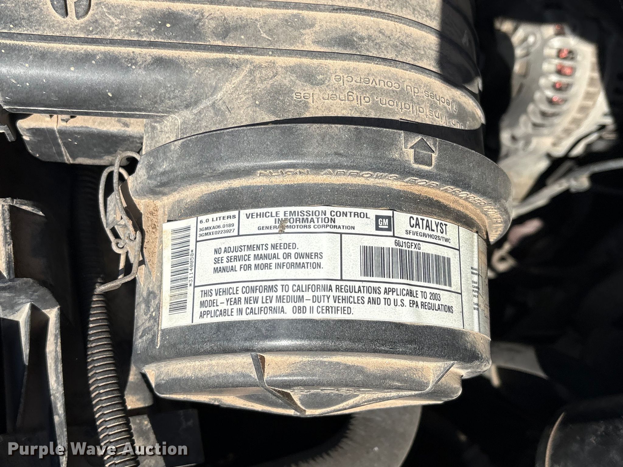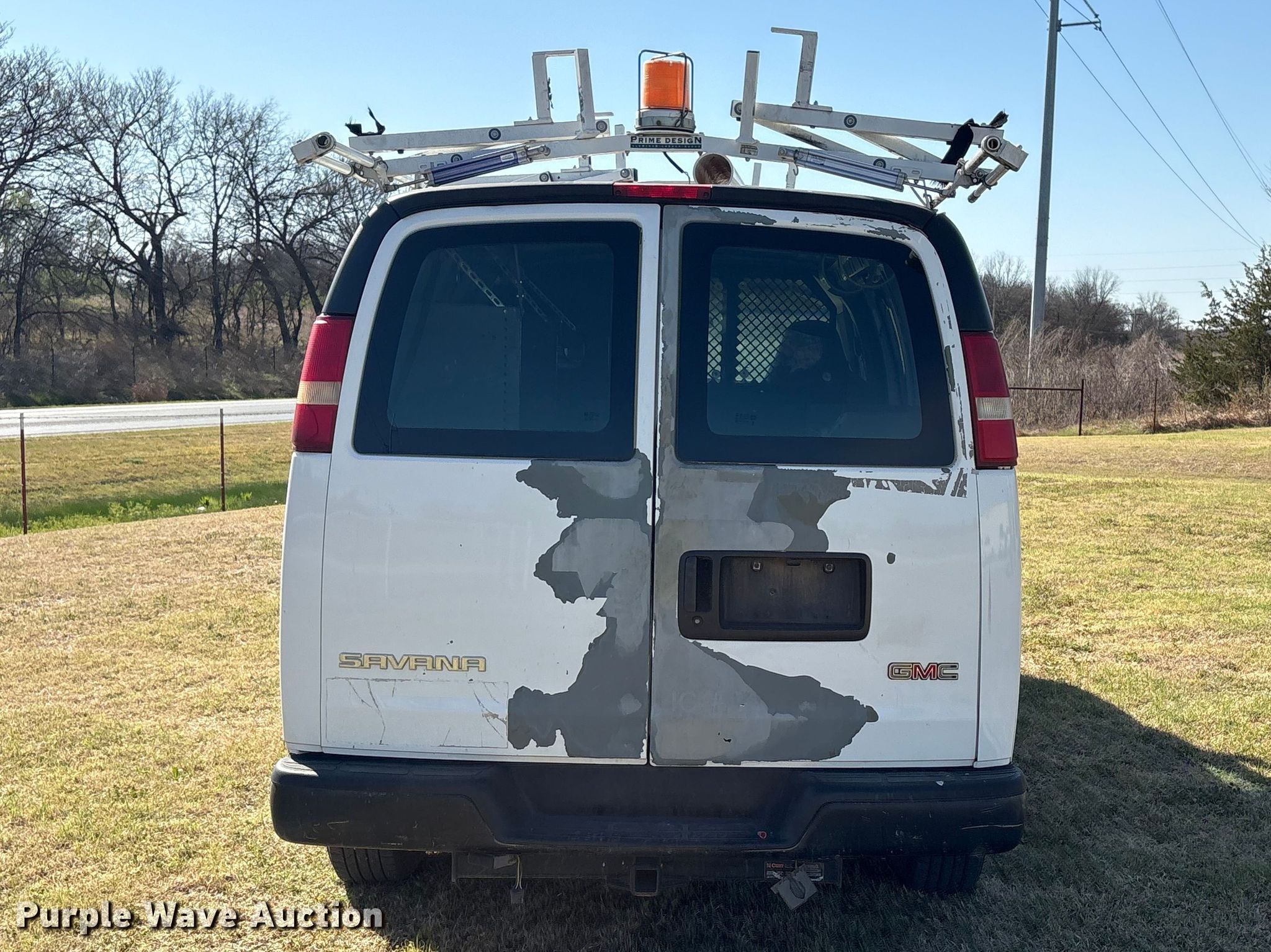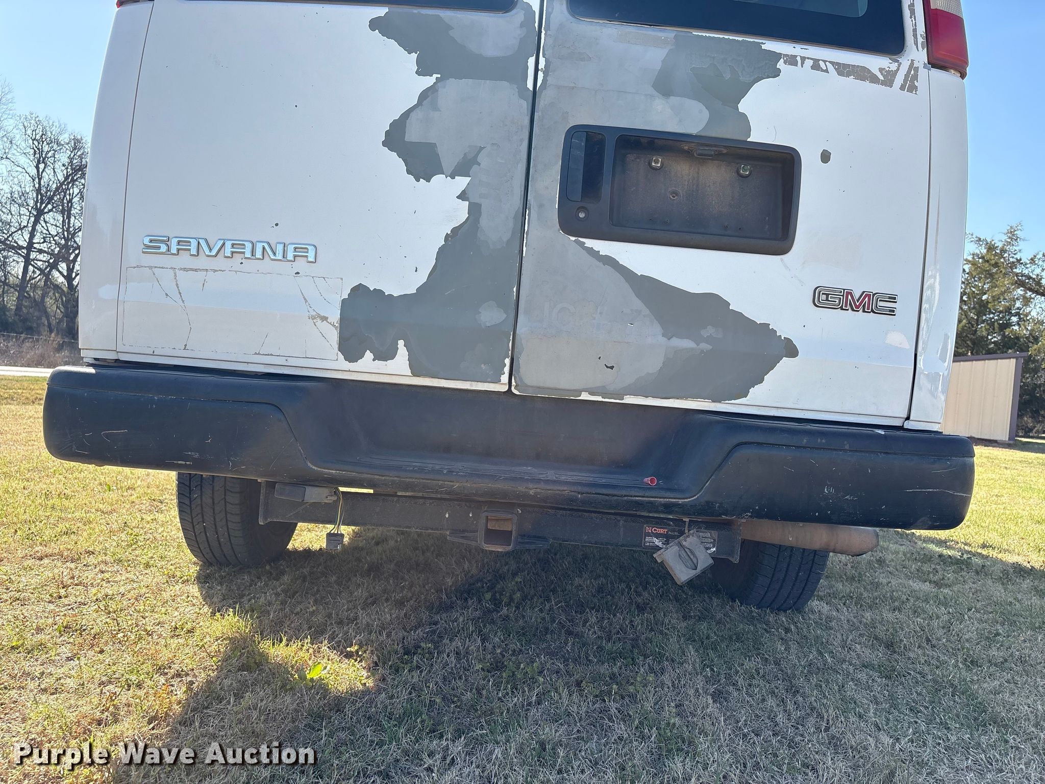 2003 GMC Savana van. Miles: 59,619 on odometer, VIN: 1GTHG35U231140058. Engine Displacement: 6.0L, Cylinders: 8, Fuel type: Gas. Transmission Automatic. Interior AC, Heat, Power windows, Power locks. Tires Size: 245/75R16. Notes Drivers window issues, difficult to roll up, Passenger cargo door latch damaged, broken. Title distribution may be delayed up to 14 days from verification of funds. J.B Runyan Plumbing. Cache, OK 73527